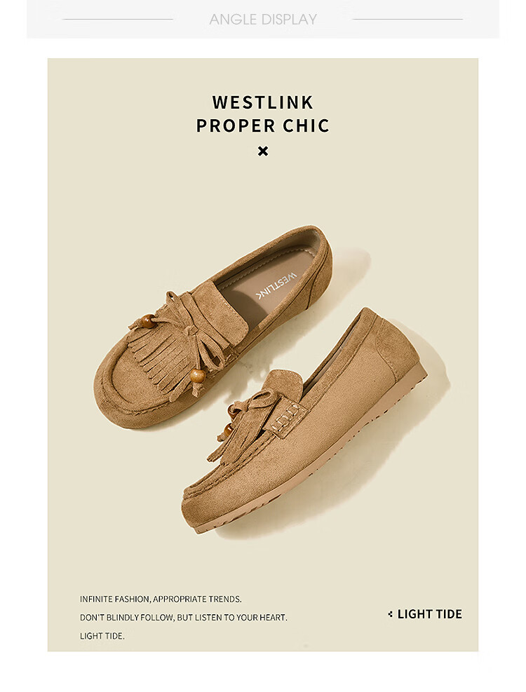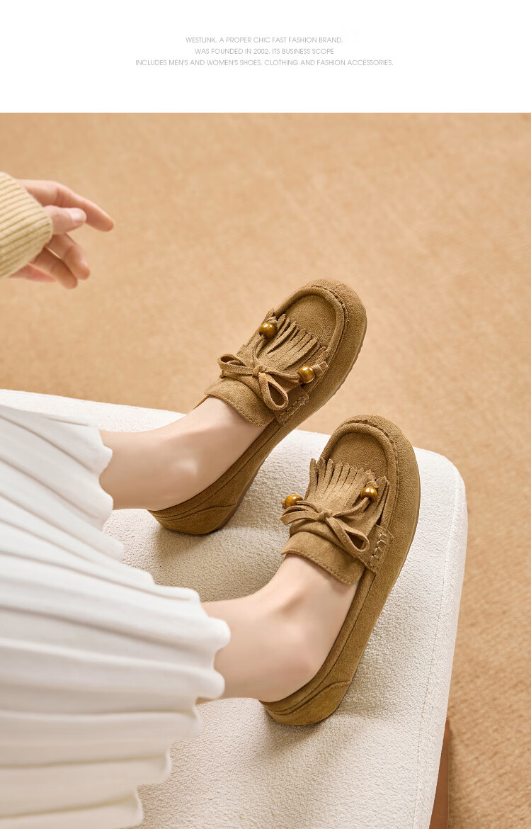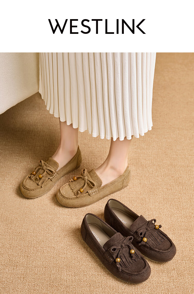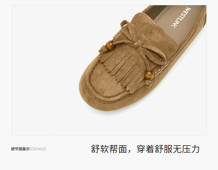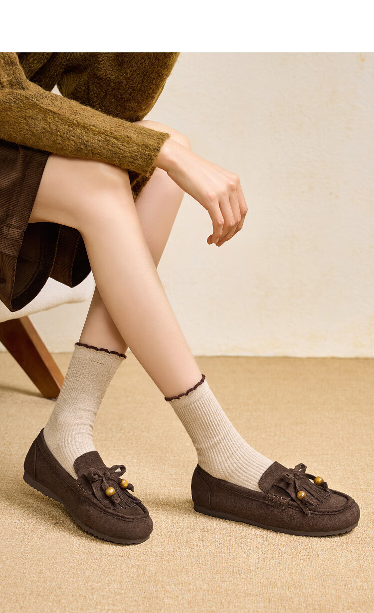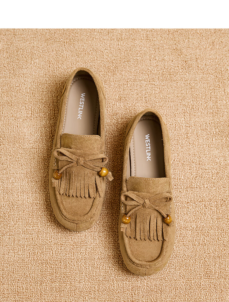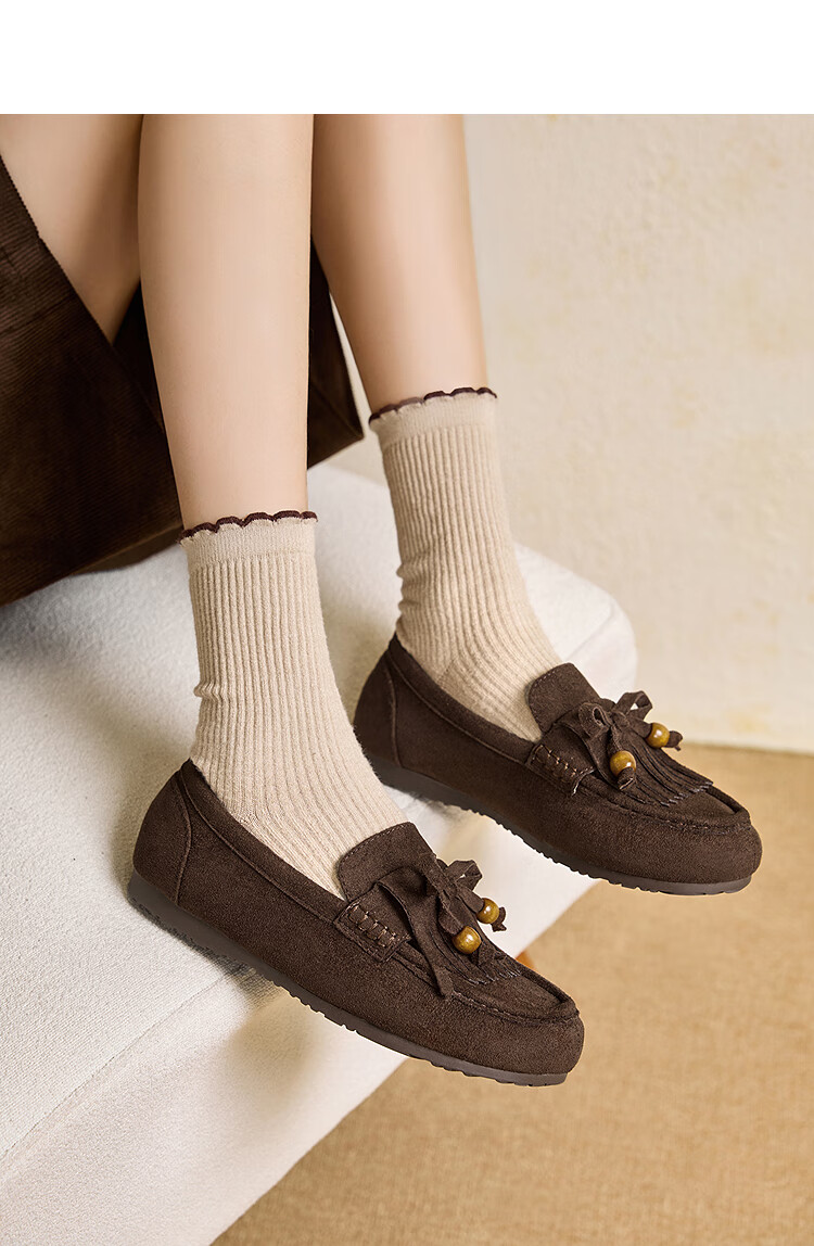 西遇流苏乐福鞋女2025新款秋季绒面美拉德袋鼠勃肯豆豆鞋平底单鞋 咖色 37 (235)