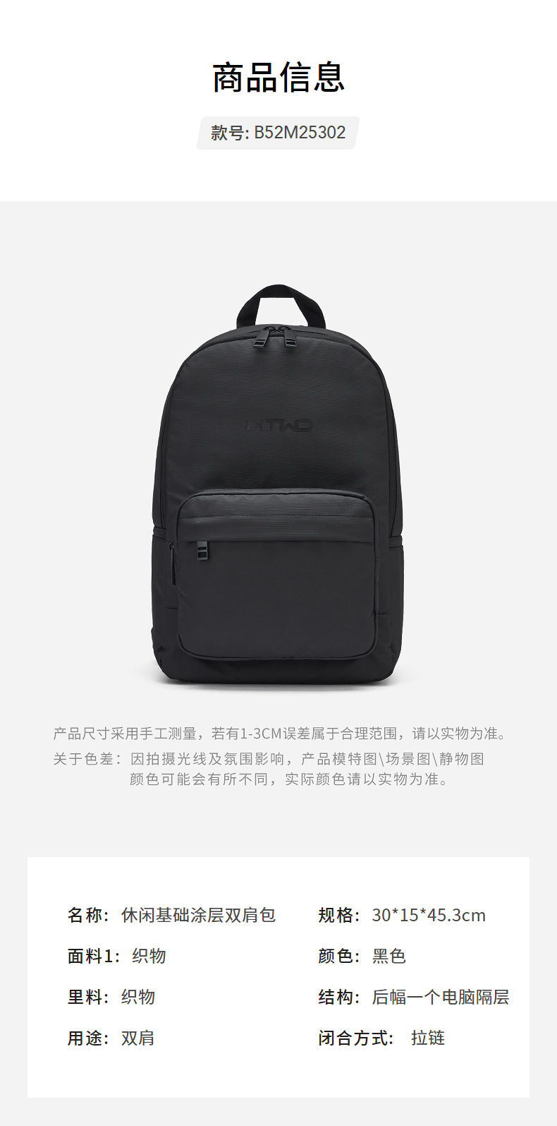 热风(Hotwind)【商场同款】男士双肩包2025年冬季新款男士折边挂扣双肩背包书包 01黑色 F