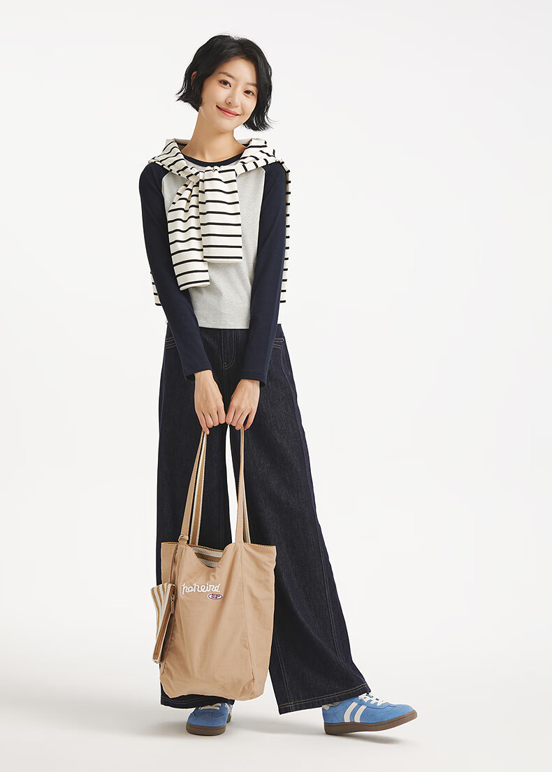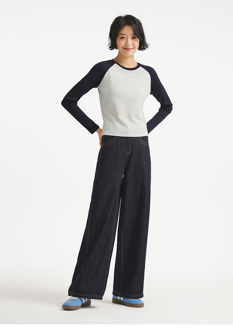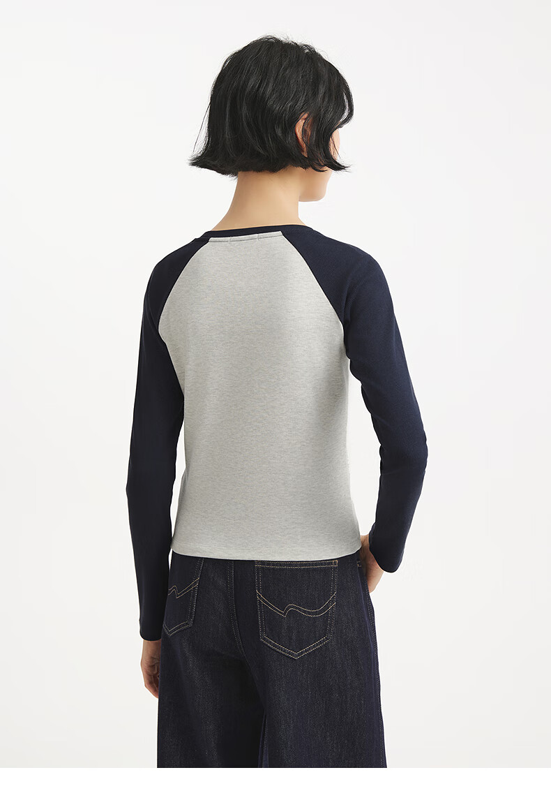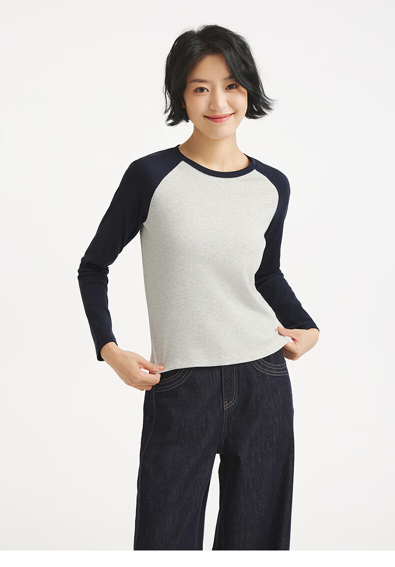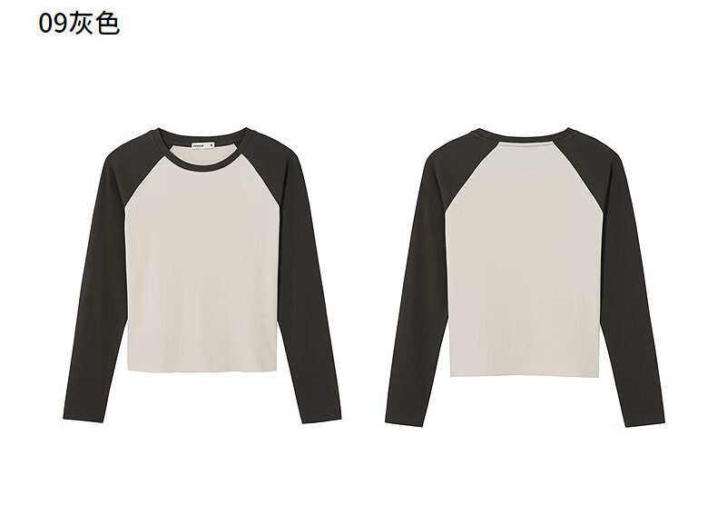 热风(Hotwind)女士长袖T恤上衣2025年秋季新款修身显瘦插肩长袖美式复古T恤 09灰色 XL