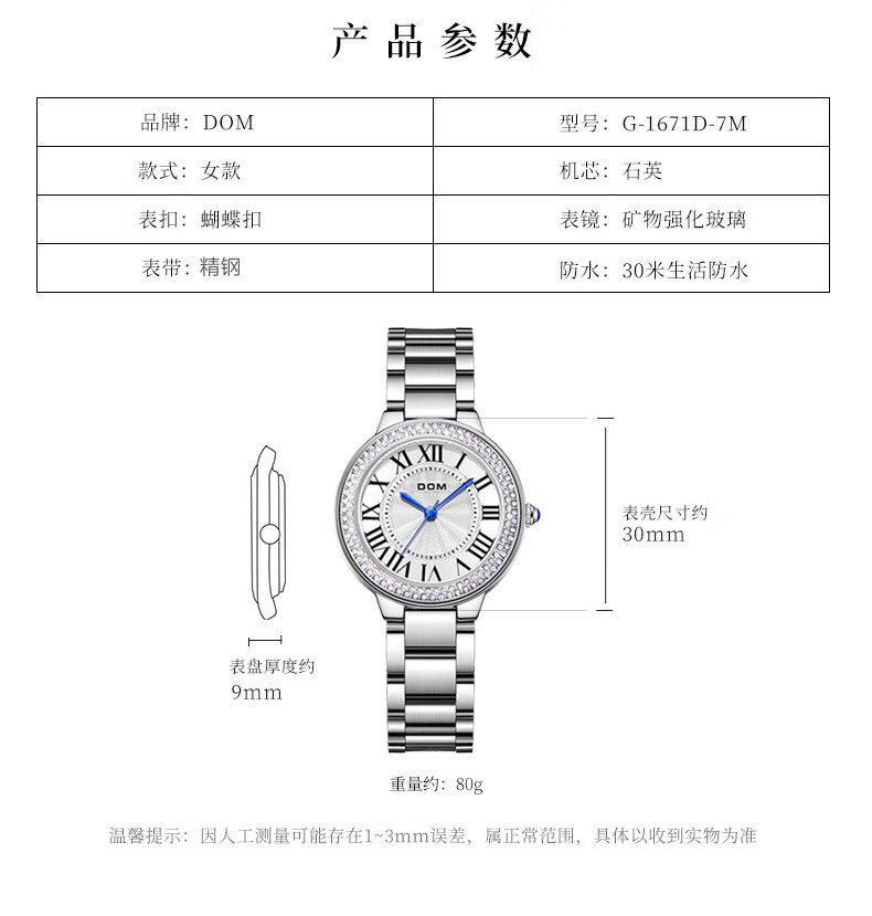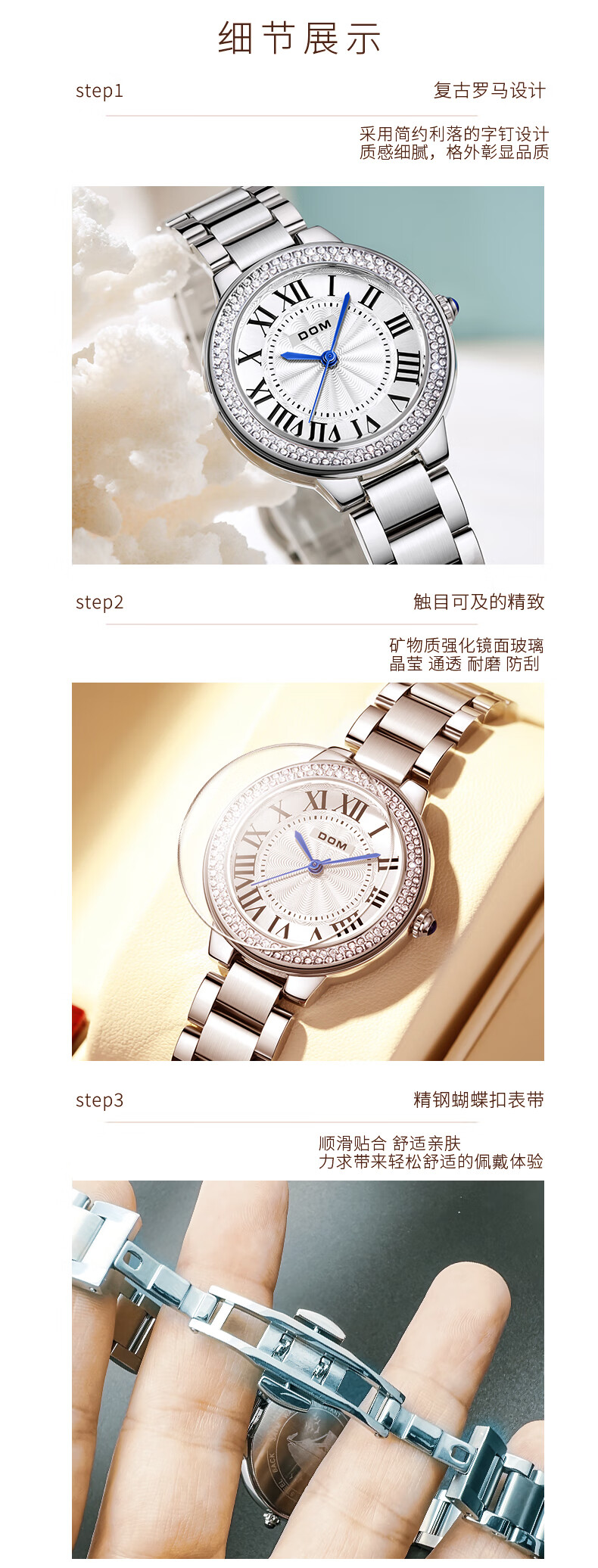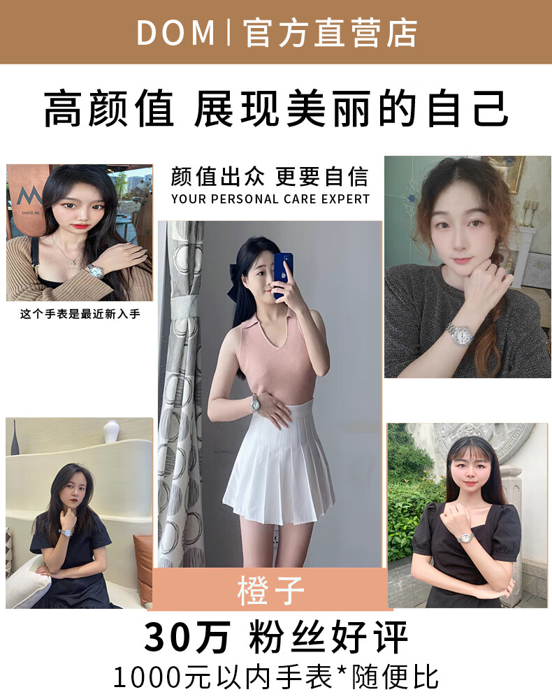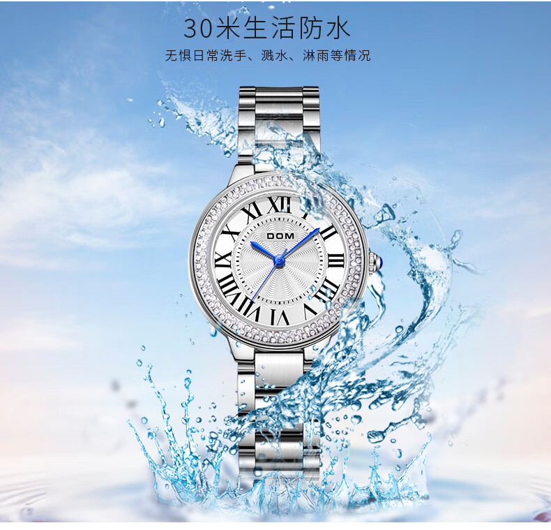 DOM 2025新款手表女士防水蓝气球机械风格石英表生日礼物送女友老婆