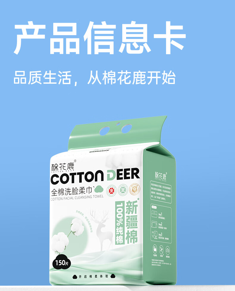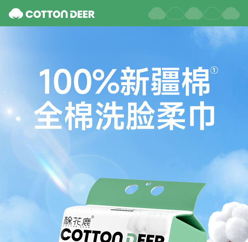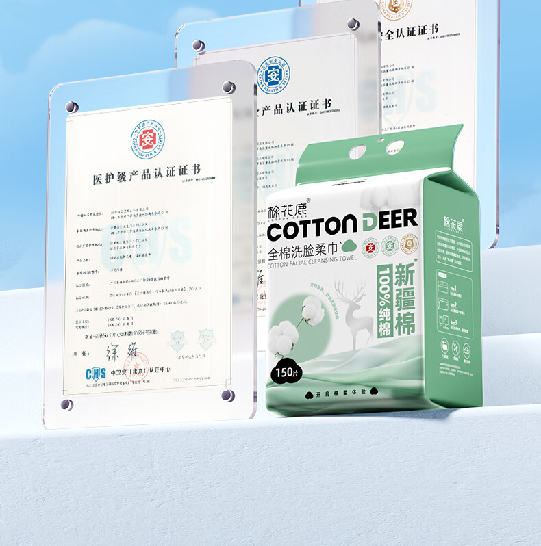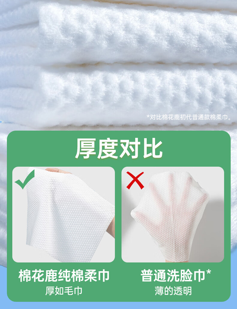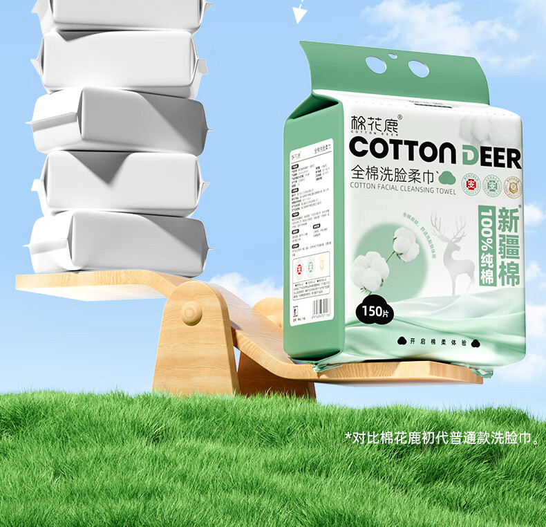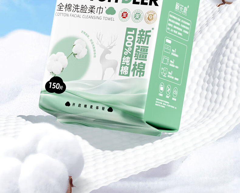 棉花鹿 COTTON DEER 洗脸巾 悬挂棉柔巾纯棉加大加厚干湿两用一次洁面巾150抽4提