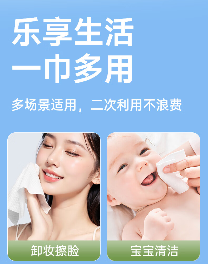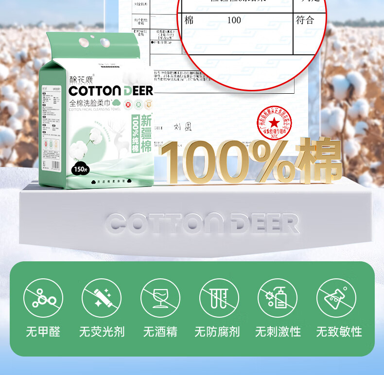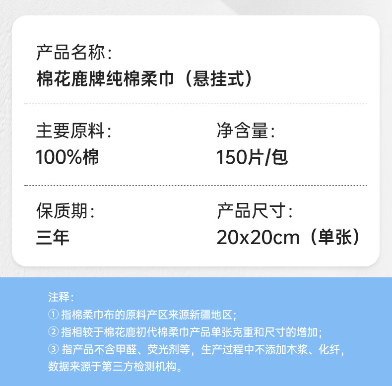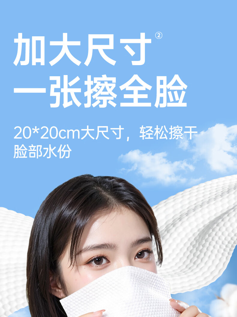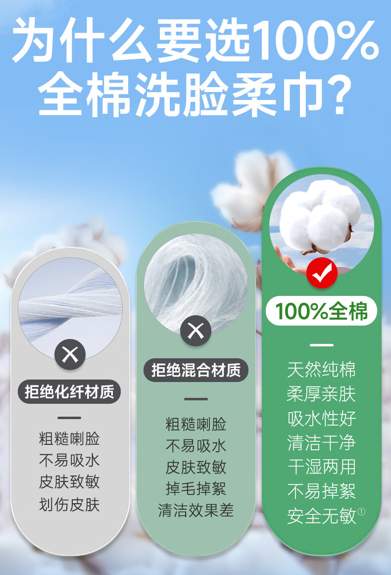 棉花鹿 COTTON DEER 洗脸巾 悬挂棉柔巾纯棉加大加厚干湿两用一次洁面巾150抽4提