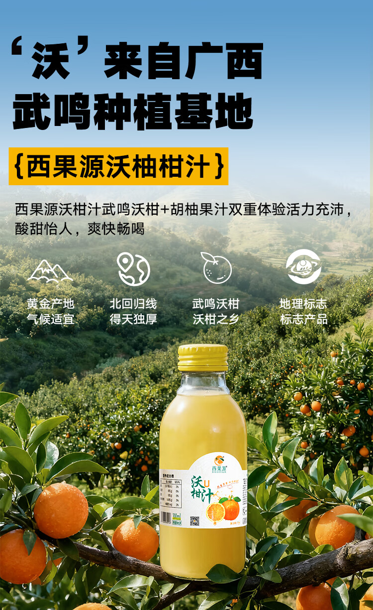 西果源沃柑汁胡柚汁鲜果萃取复合果汁饮料饮品武鸣富含VC 300ml*4瓶装