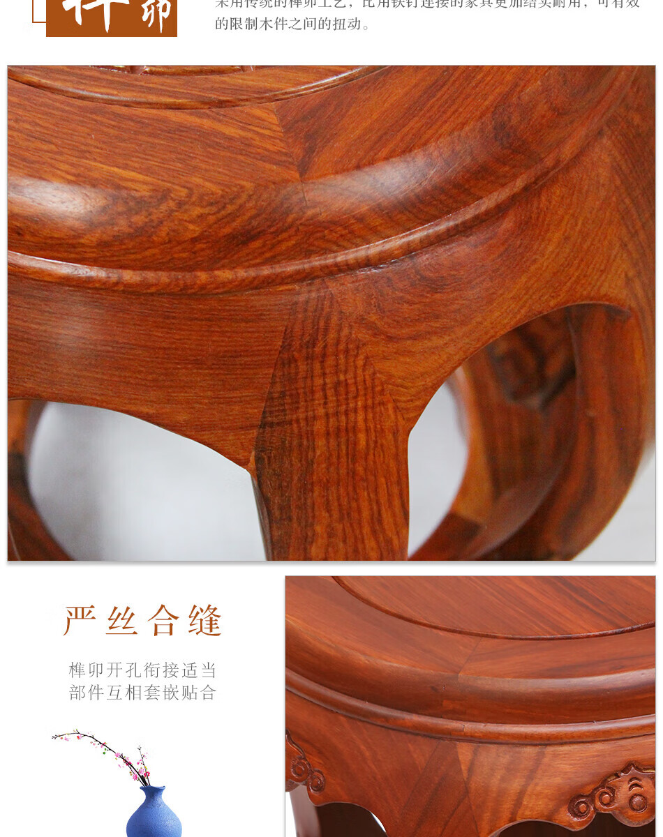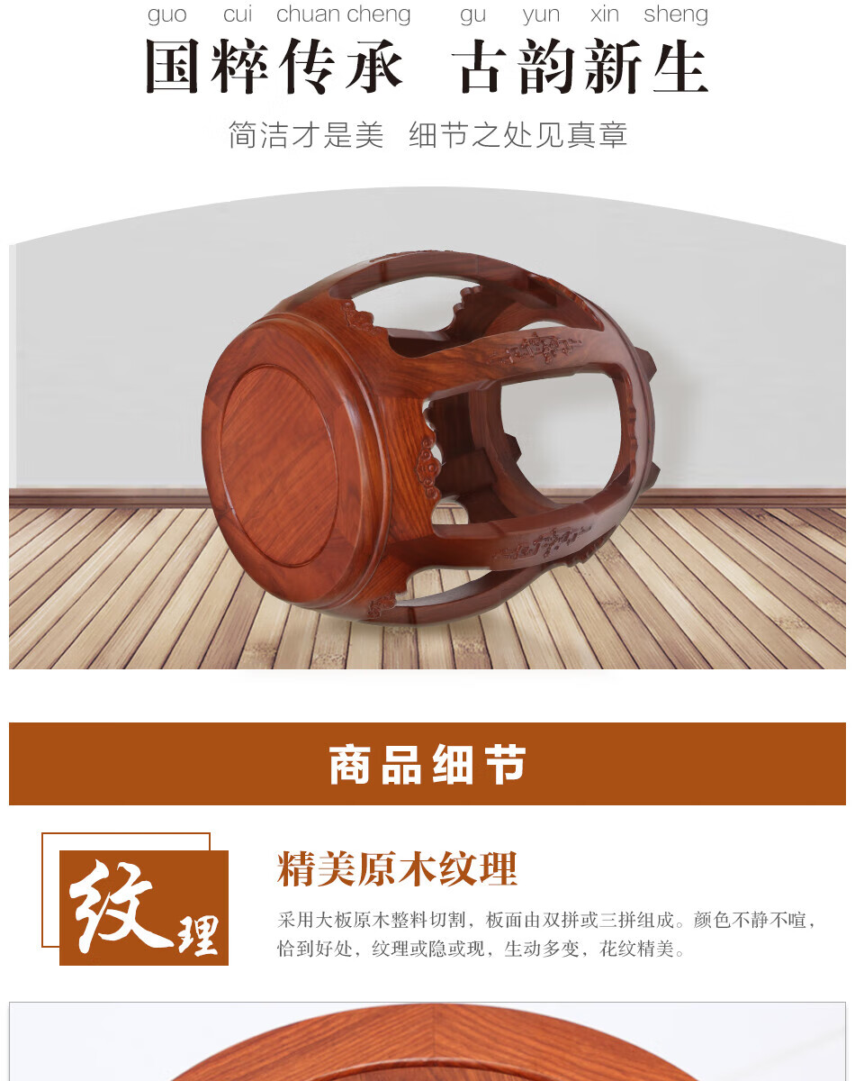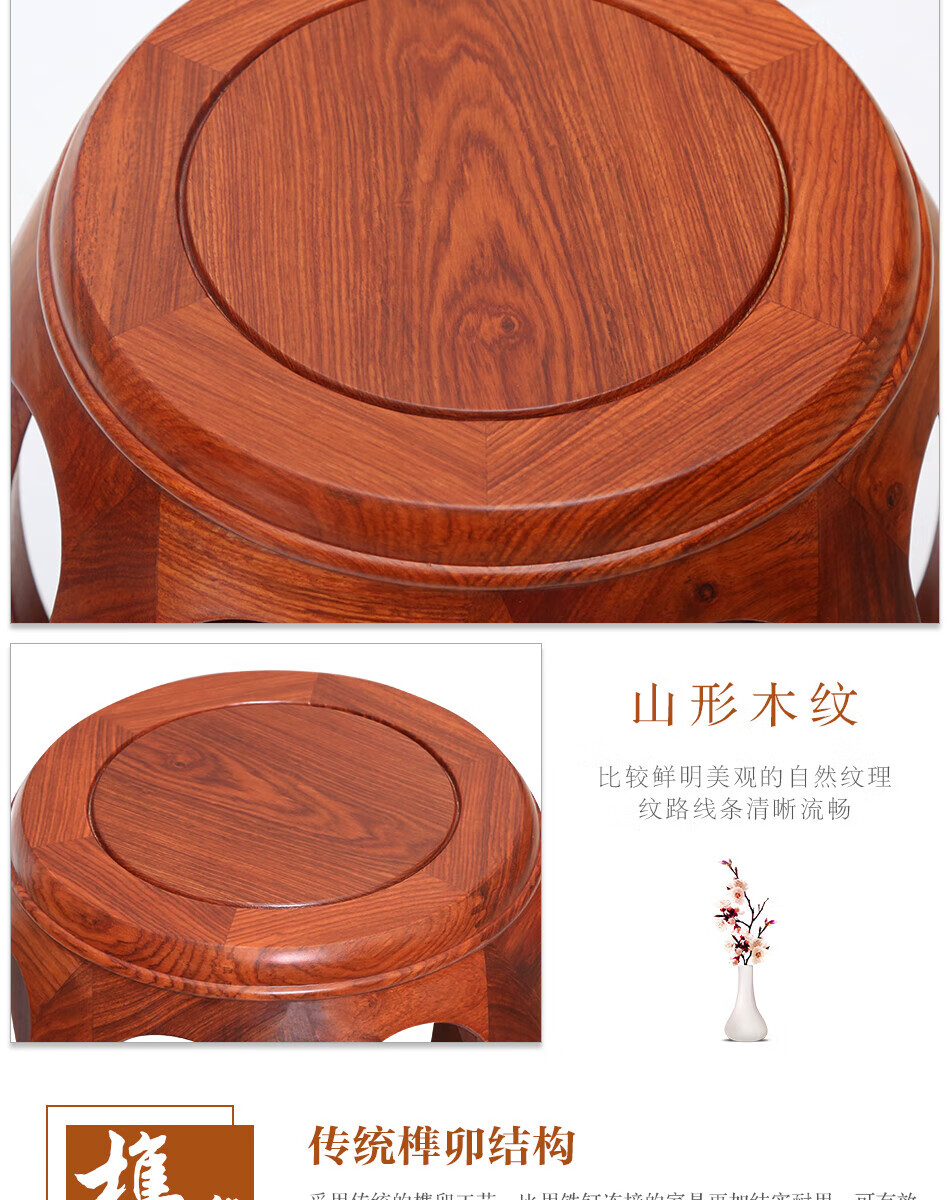 左右鼓凳花梨雕花古筝凳实木圆凳小矮凳红豆木家具坐墩绣墩红褐色 花梨木 小方凳
