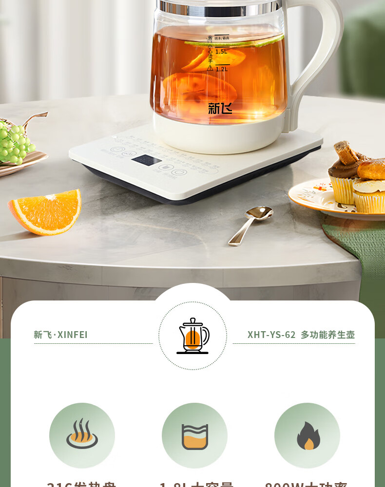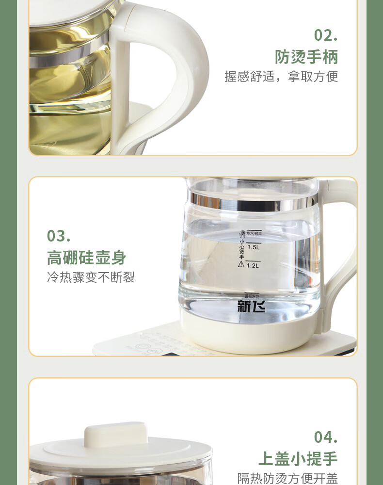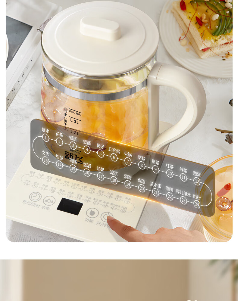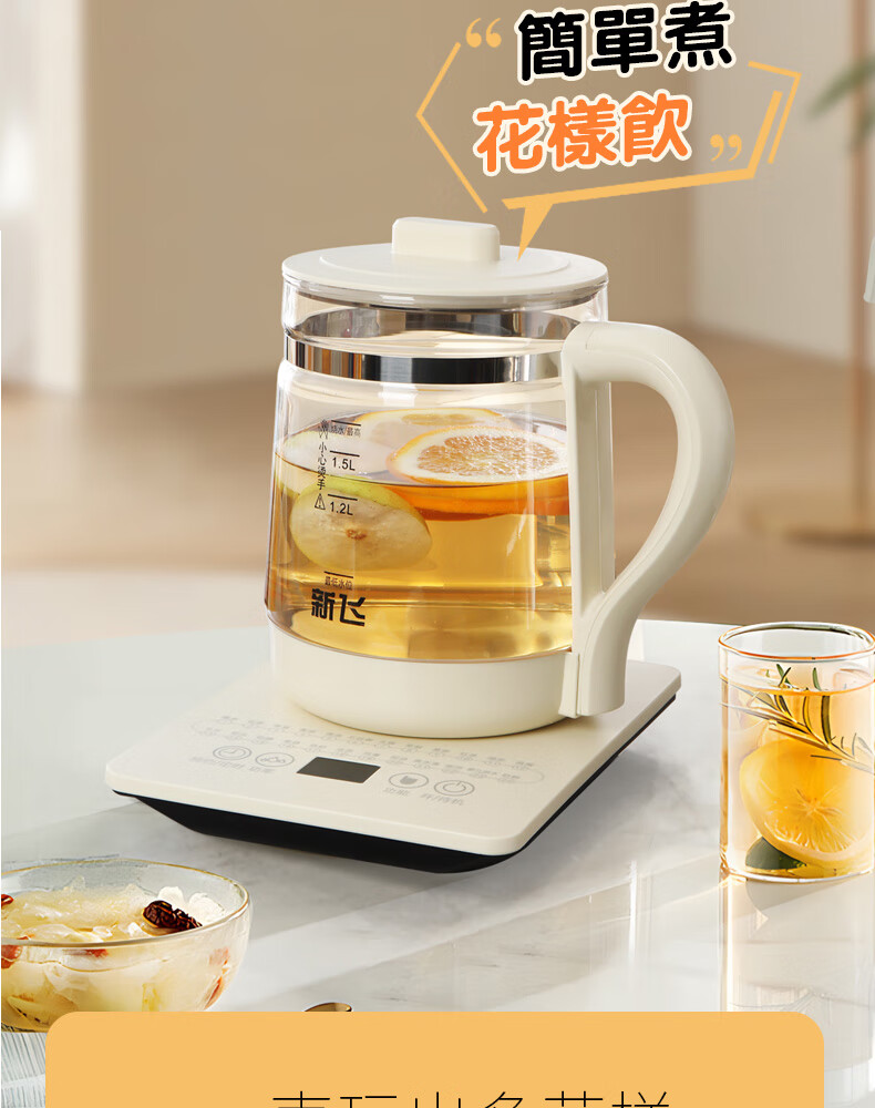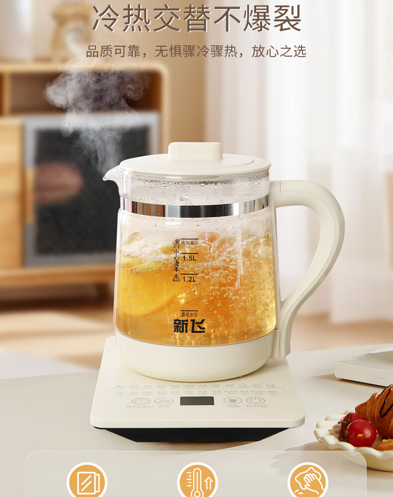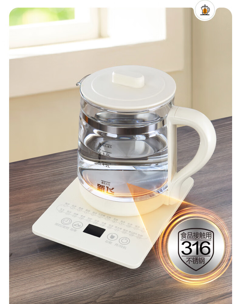 新飞养生壶烧水壶热水壶恒温壶养生烧水壶煮茶壶煮茶器泡茶壶一体机全自动玻璃保温小家用 新飞养生壶【316发热盘】 1.8L