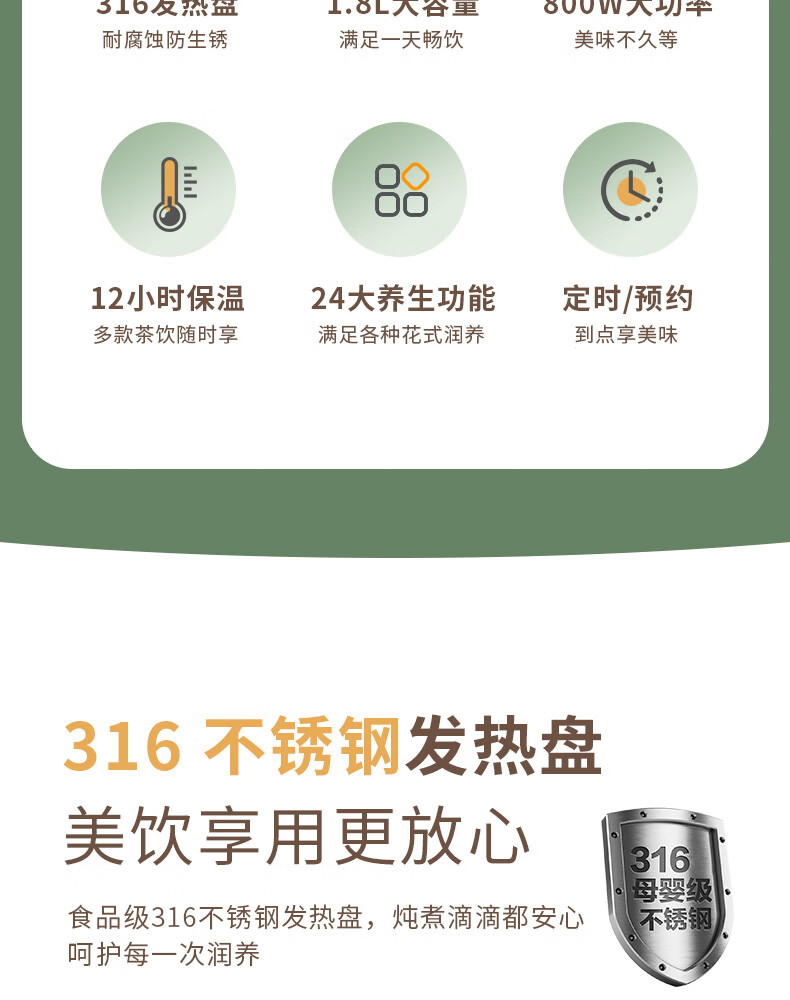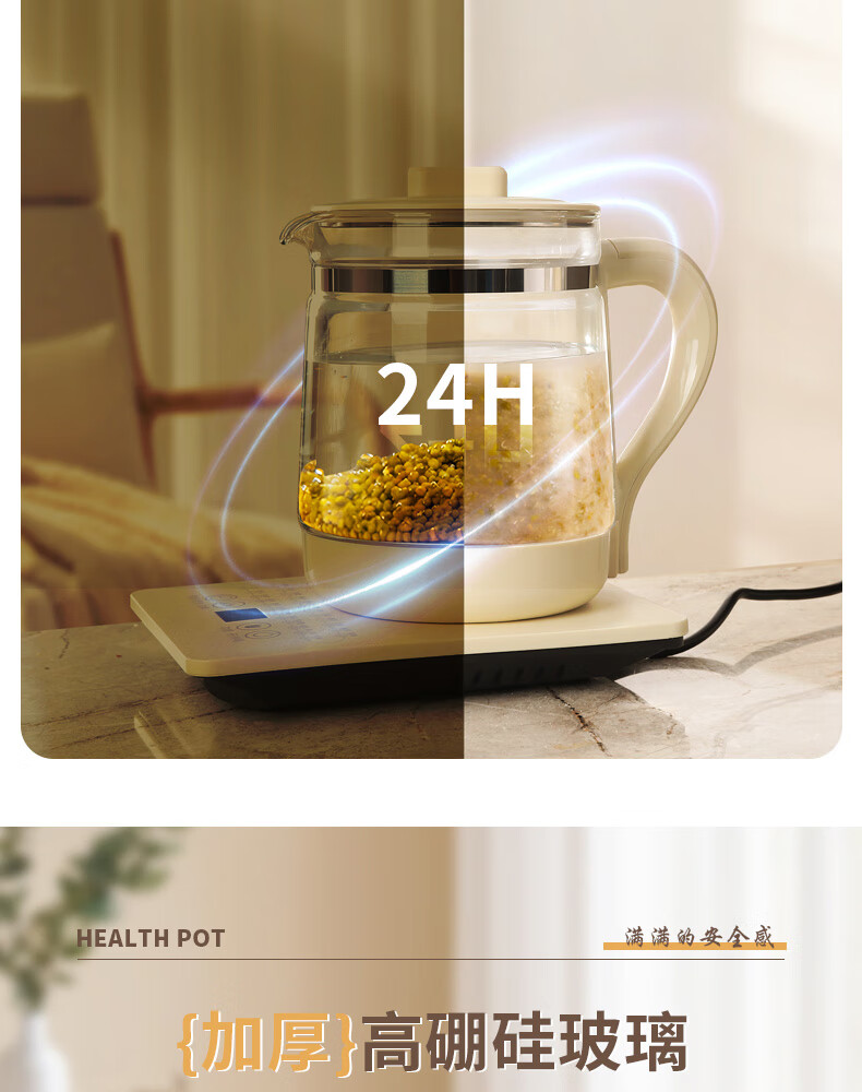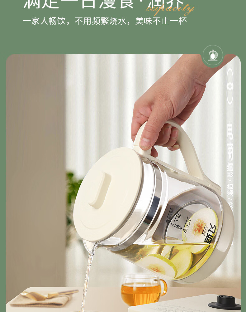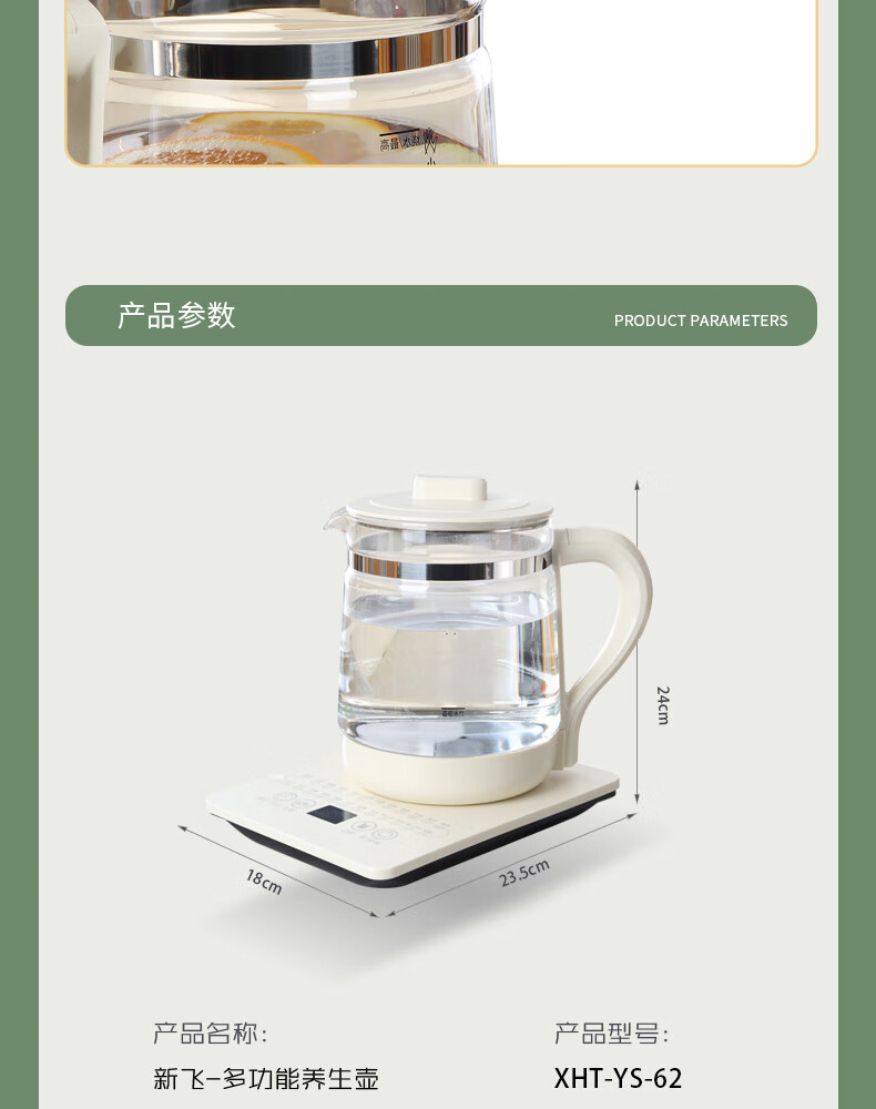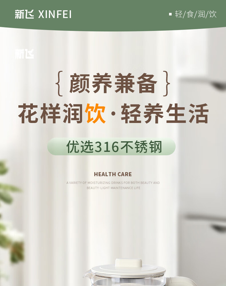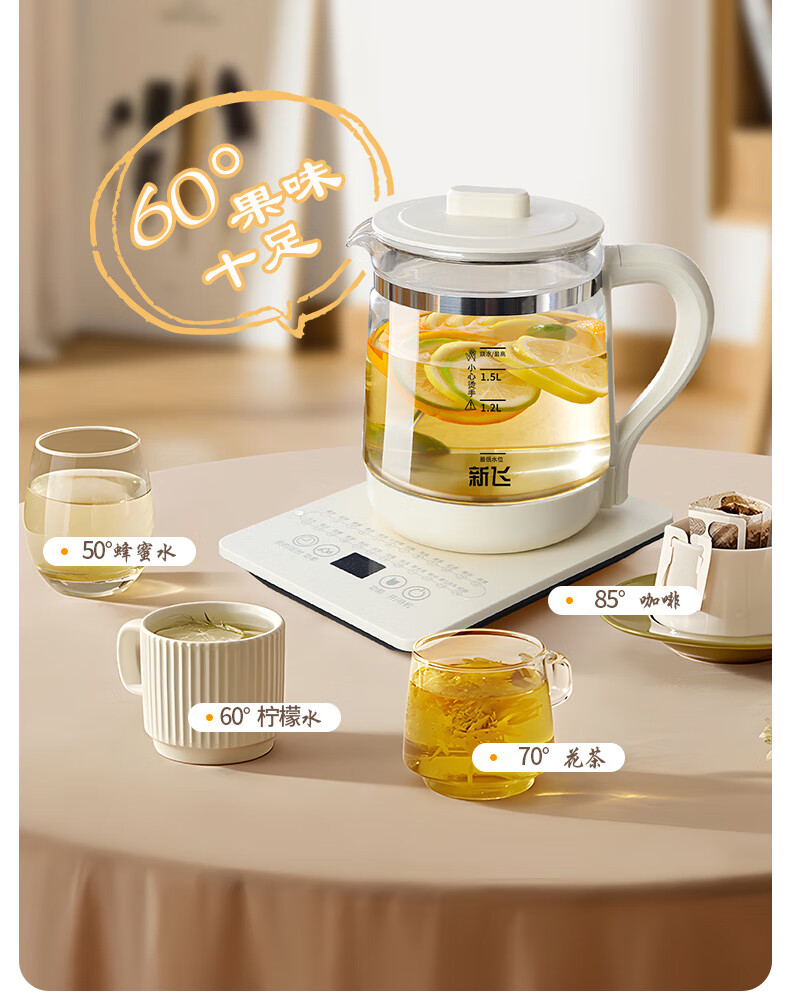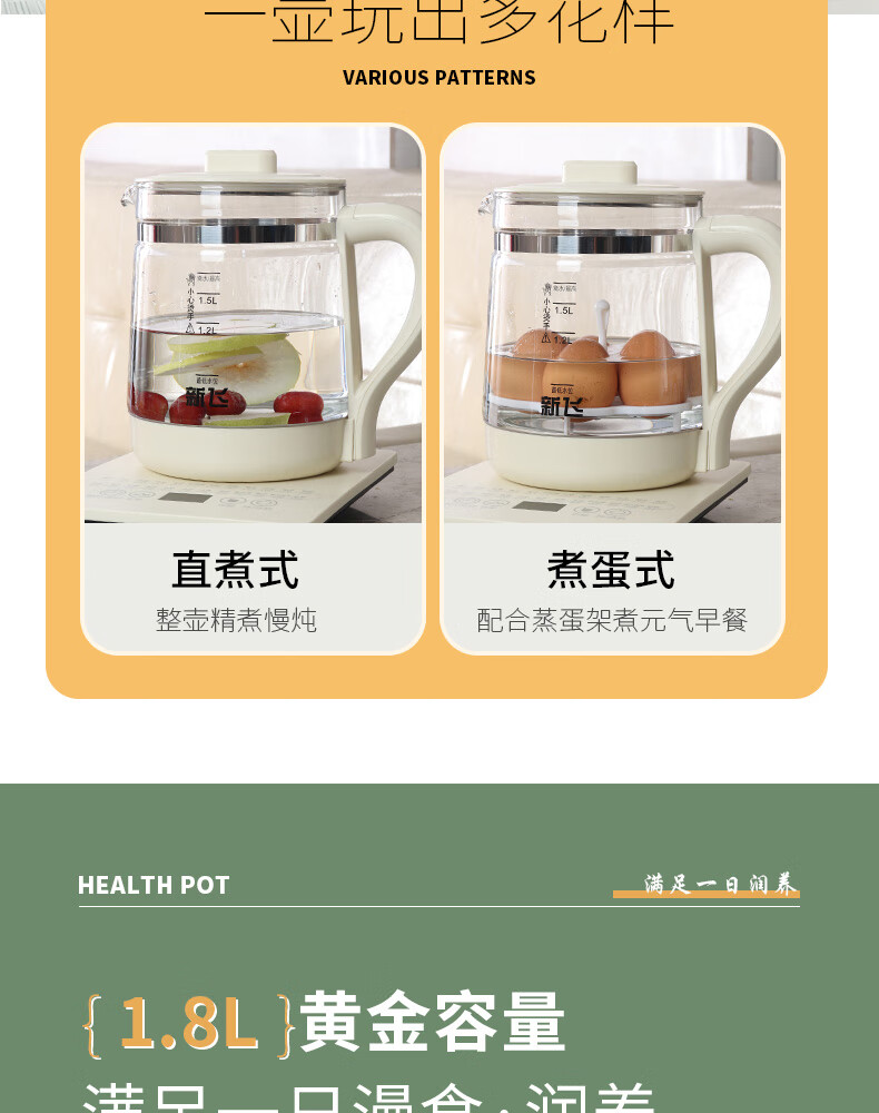 新飞养生壶烧水壶热水壶恒温壶养生烧水壶煮茶壶煮茶器泡茶壶一体机全自动玻璃保温小家用 新飞养生壶【316发热盘】 1.8L