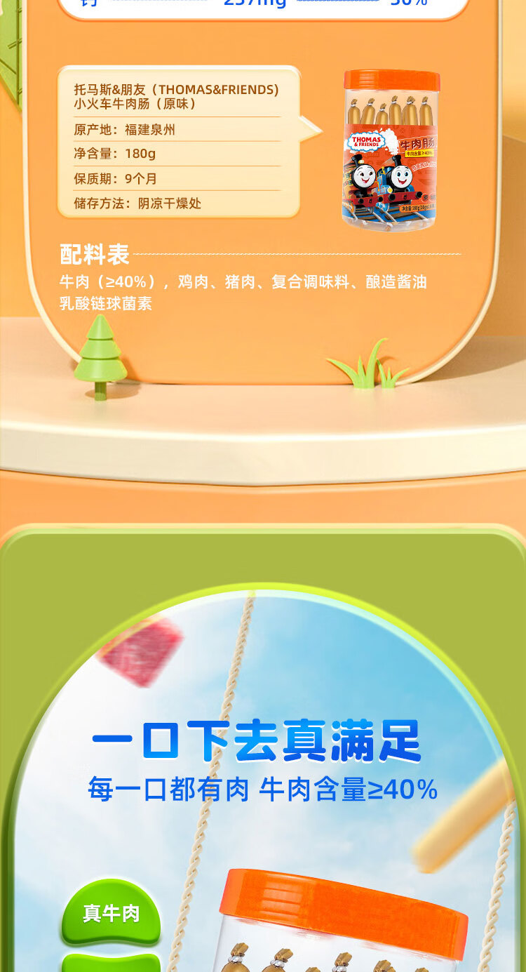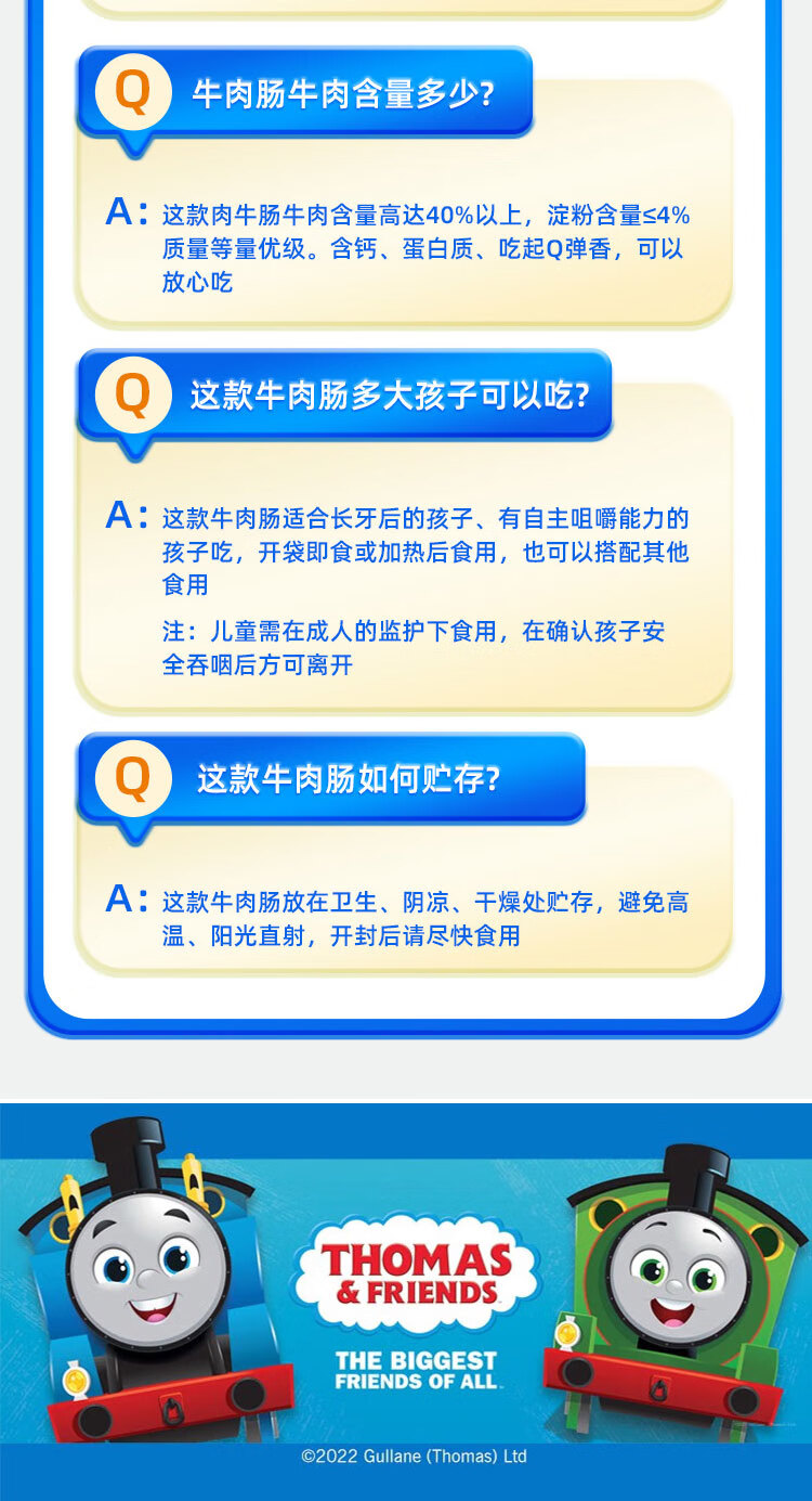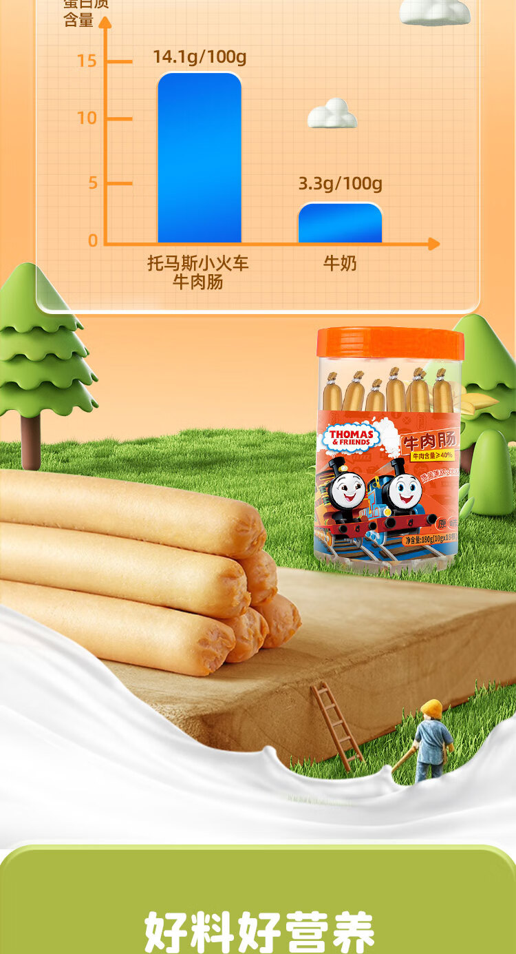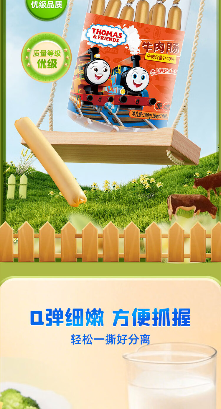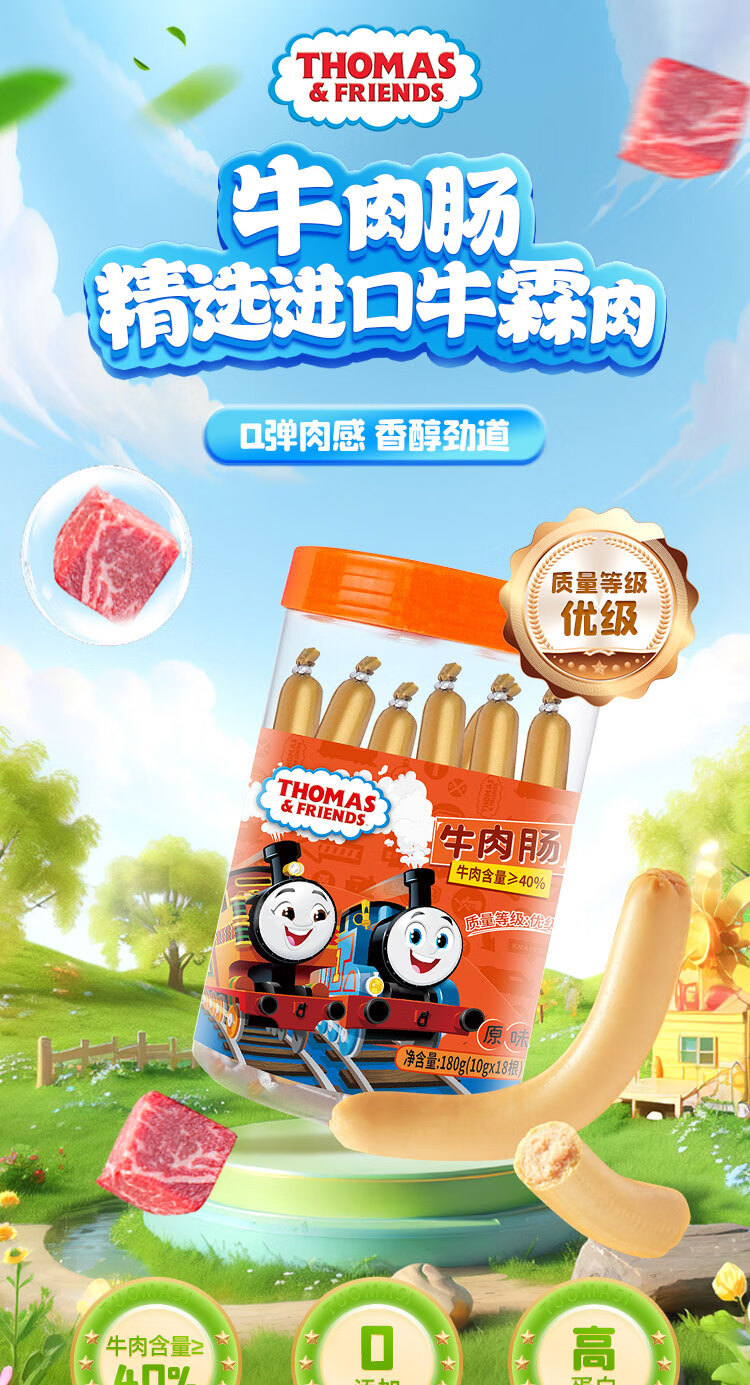 小火车(THOMAS & FRIENDS)托马斯进口牛霖肉牛肉肠开袋即食儿童早餐宝宝零食火腿肠桶装180g