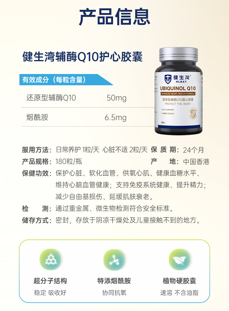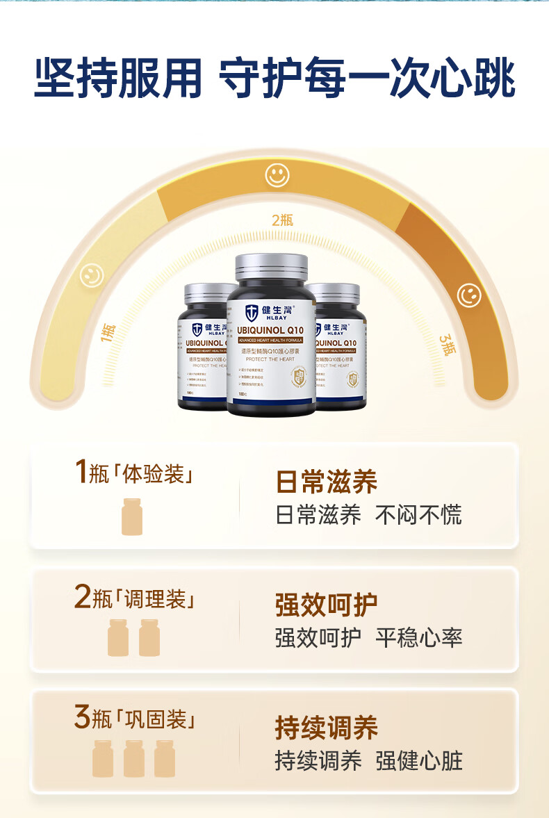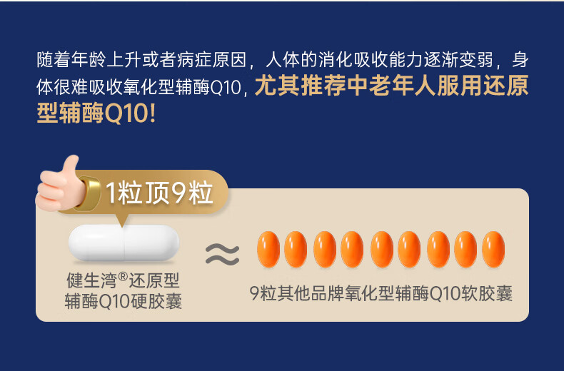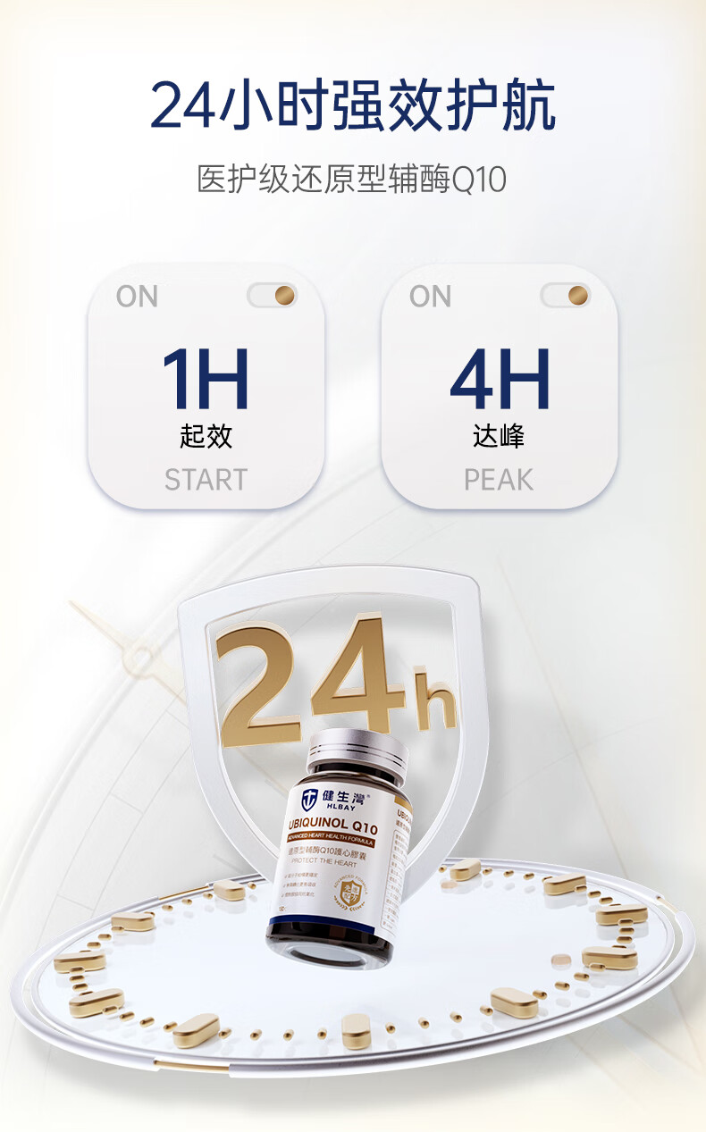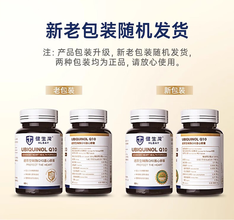 健生湾Hlbay泛醇还原型辅酶Q10胶囊 老人护心丸中老年保护心脏保健品 【强效护心】100mg*60粒