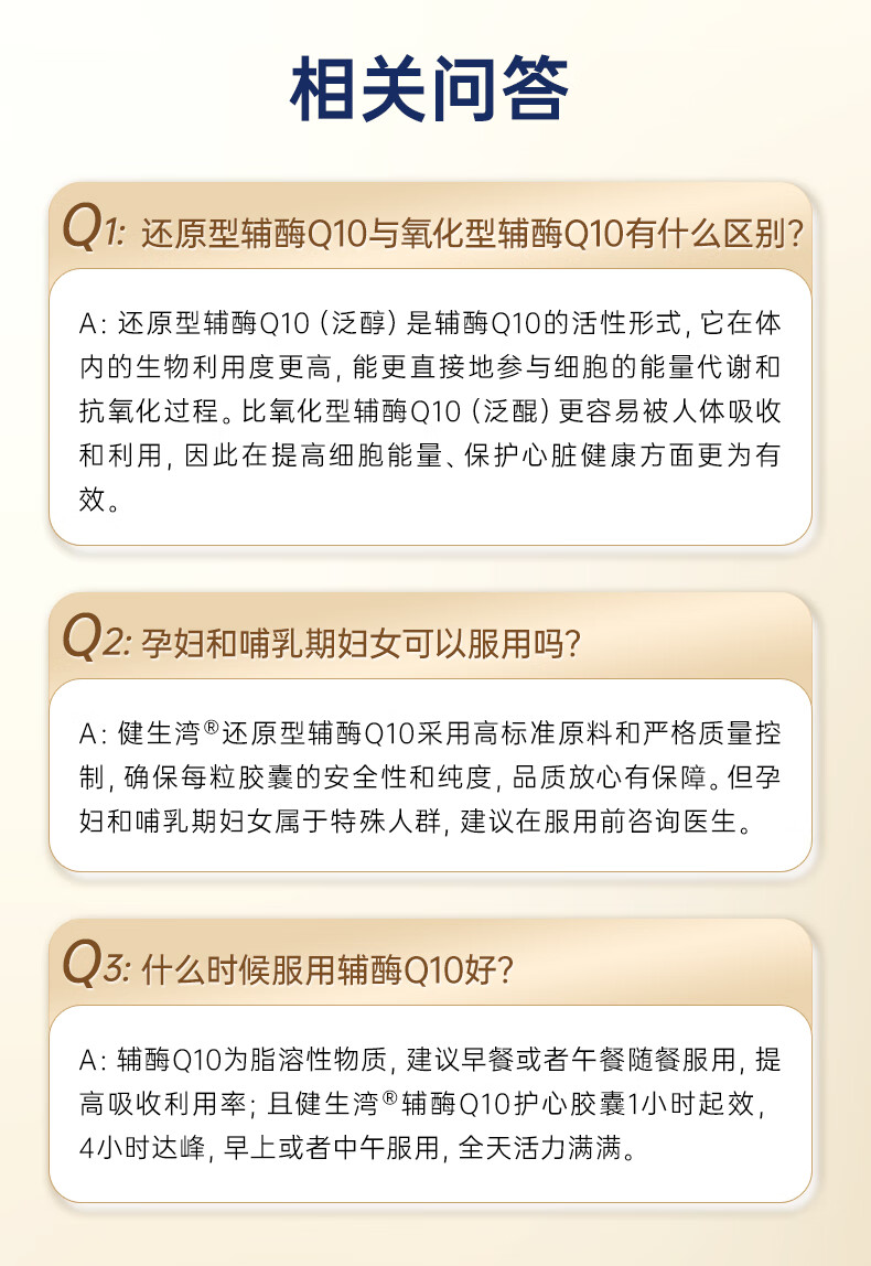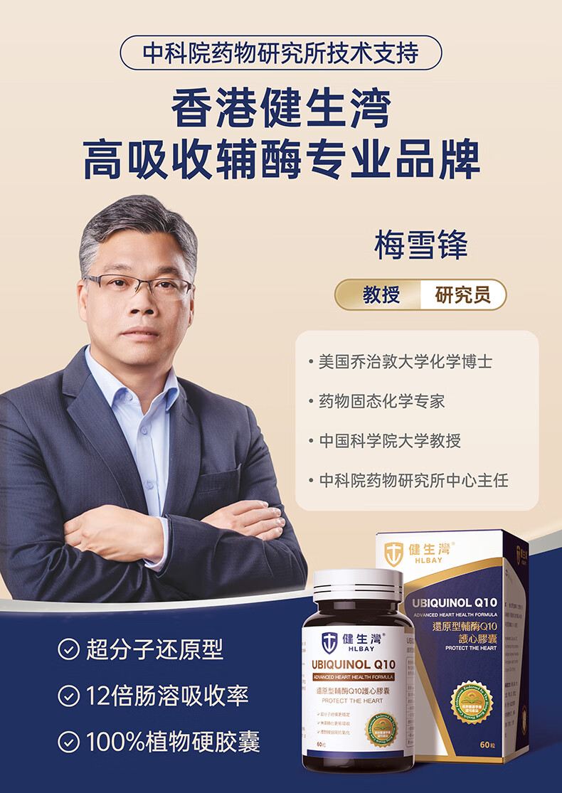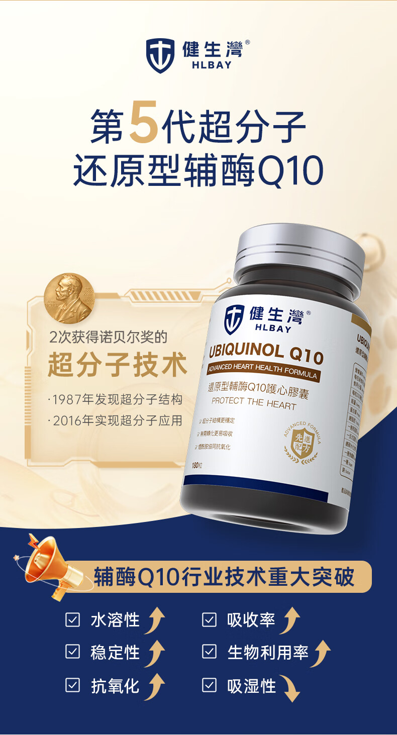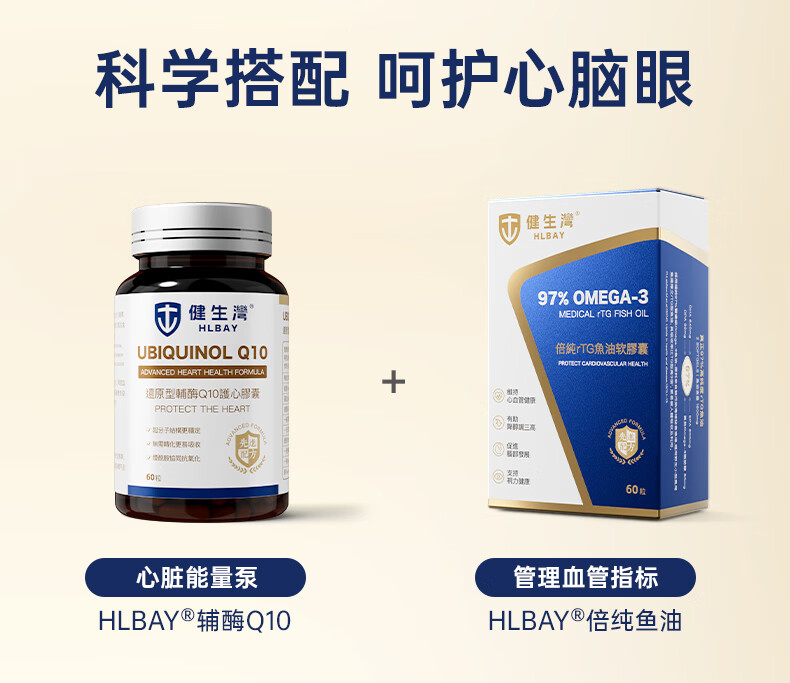 健生湾Hlbay泛醇还原型辅酶Q10胶囊 老人护心丸中老年保护心脏保健品 【强效护心】100mg*60粒