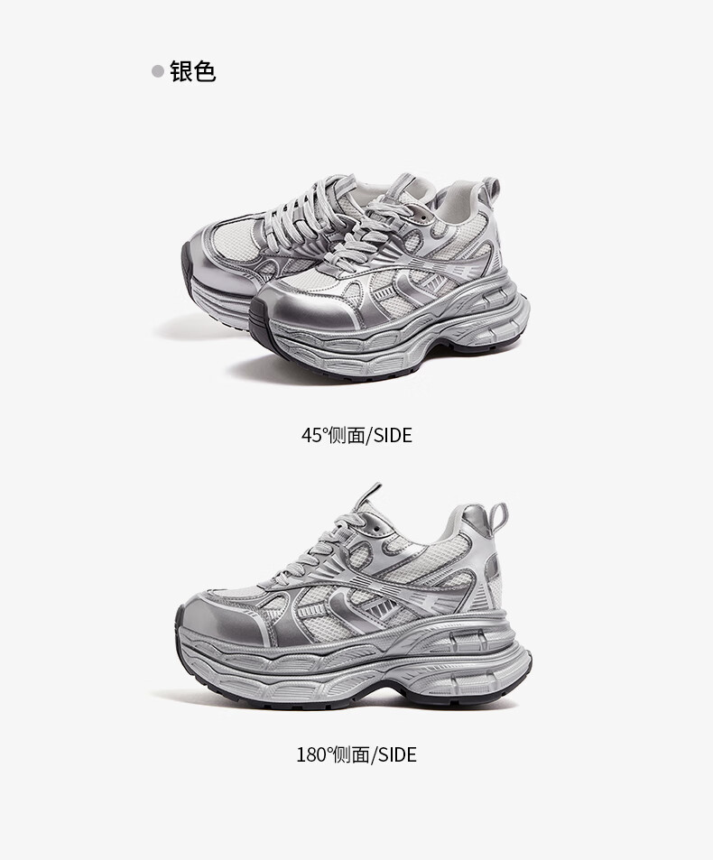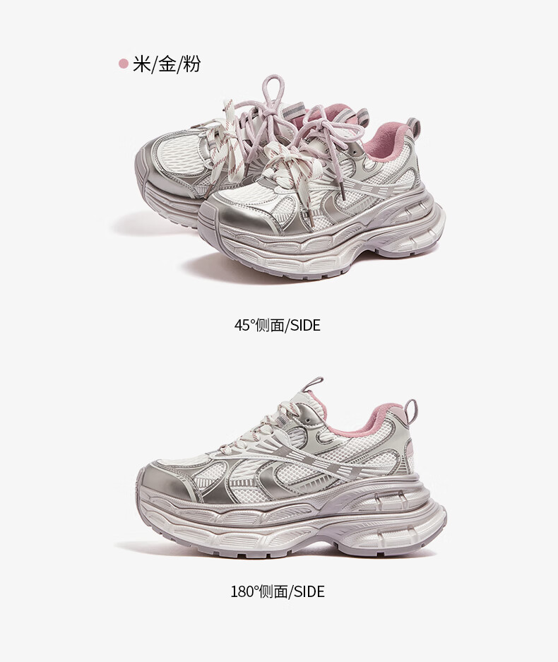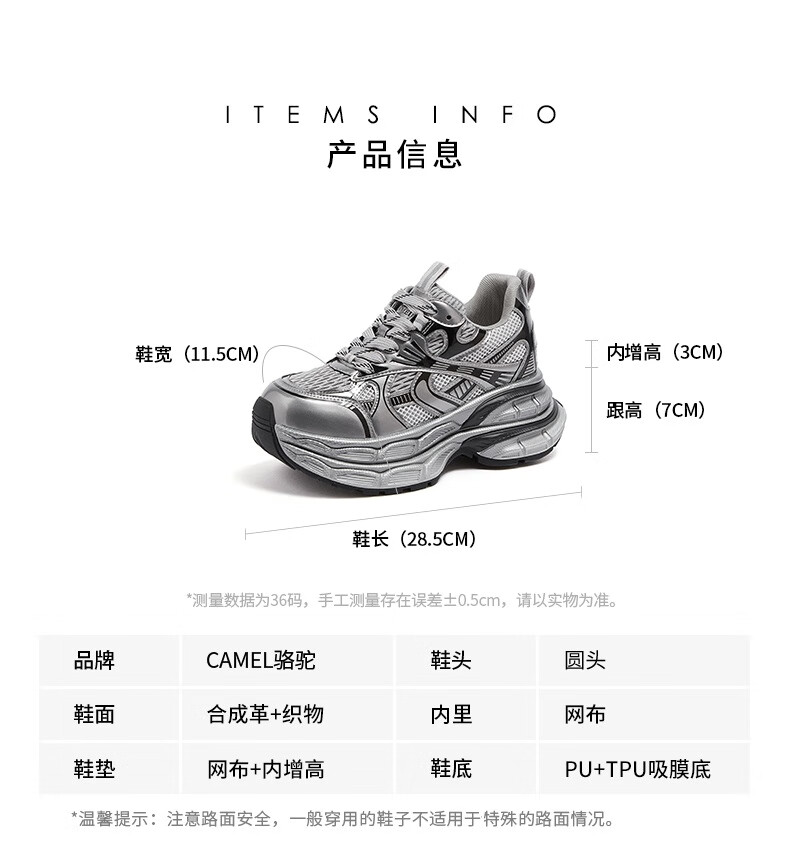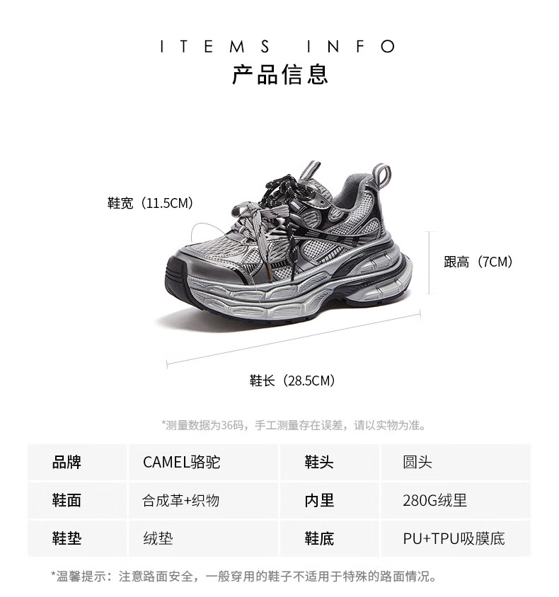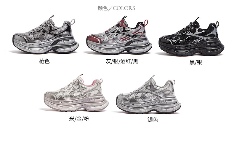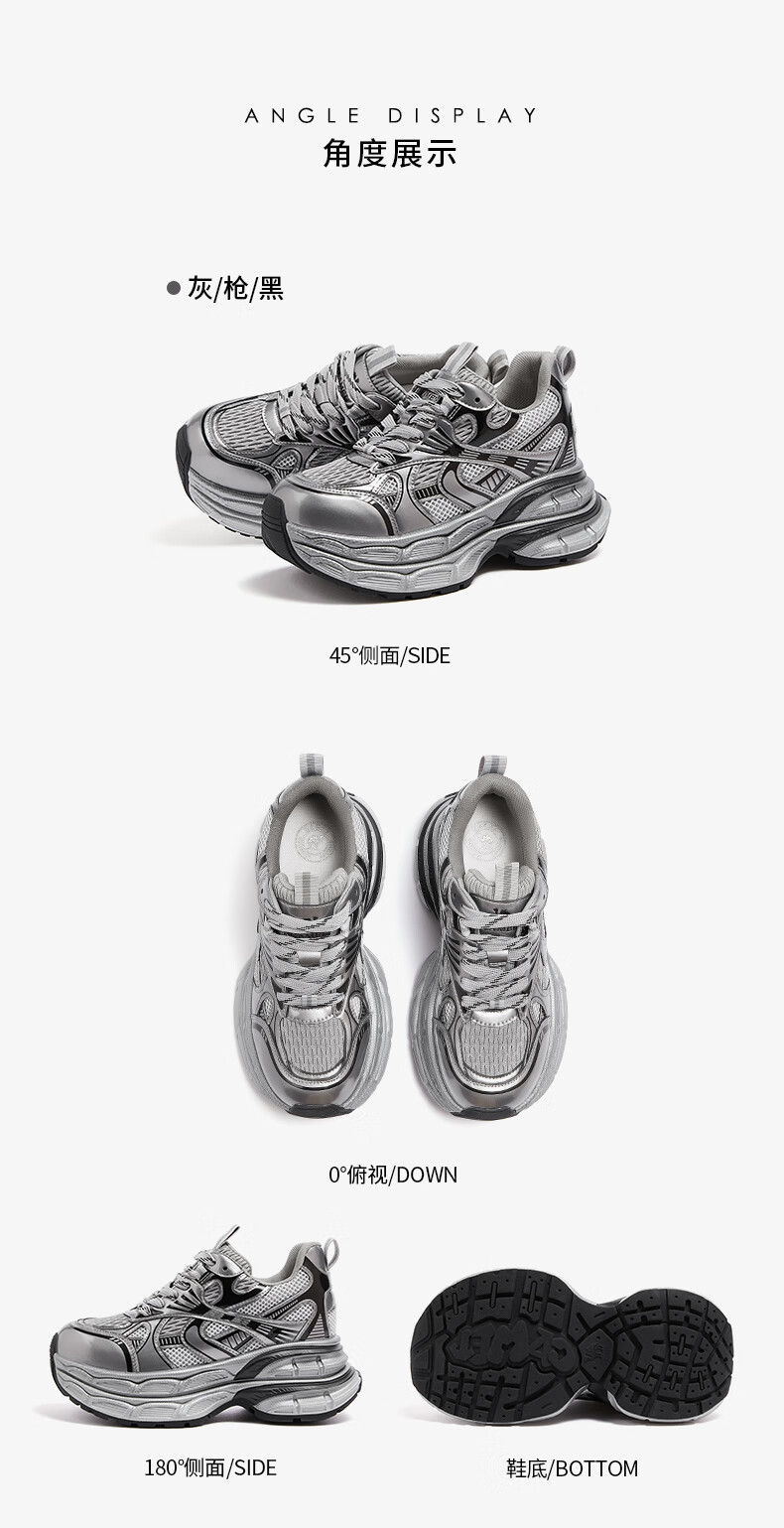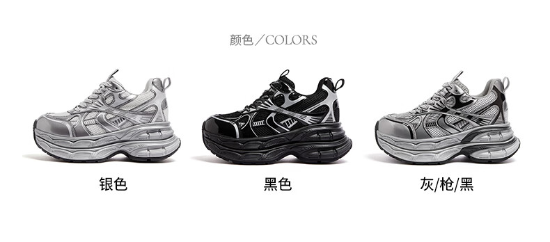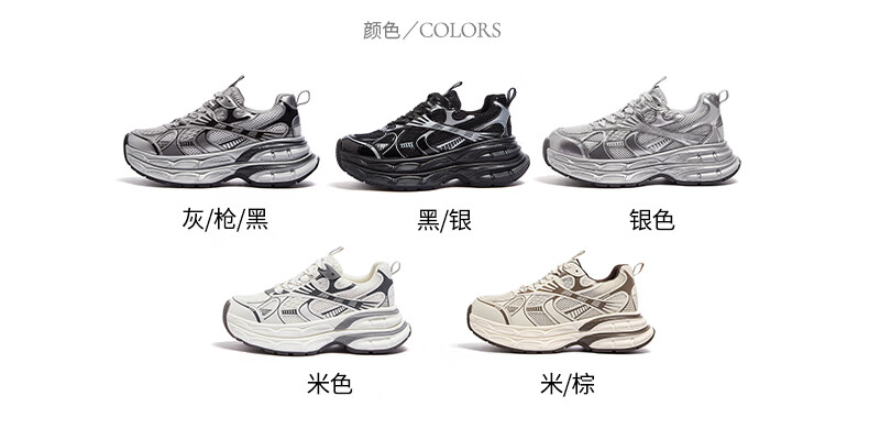 骆驼(CAMEL)老爹鞋男款银月舒适厚底增高休闲鞋 L24A283742AM 灰/枪/黑 41