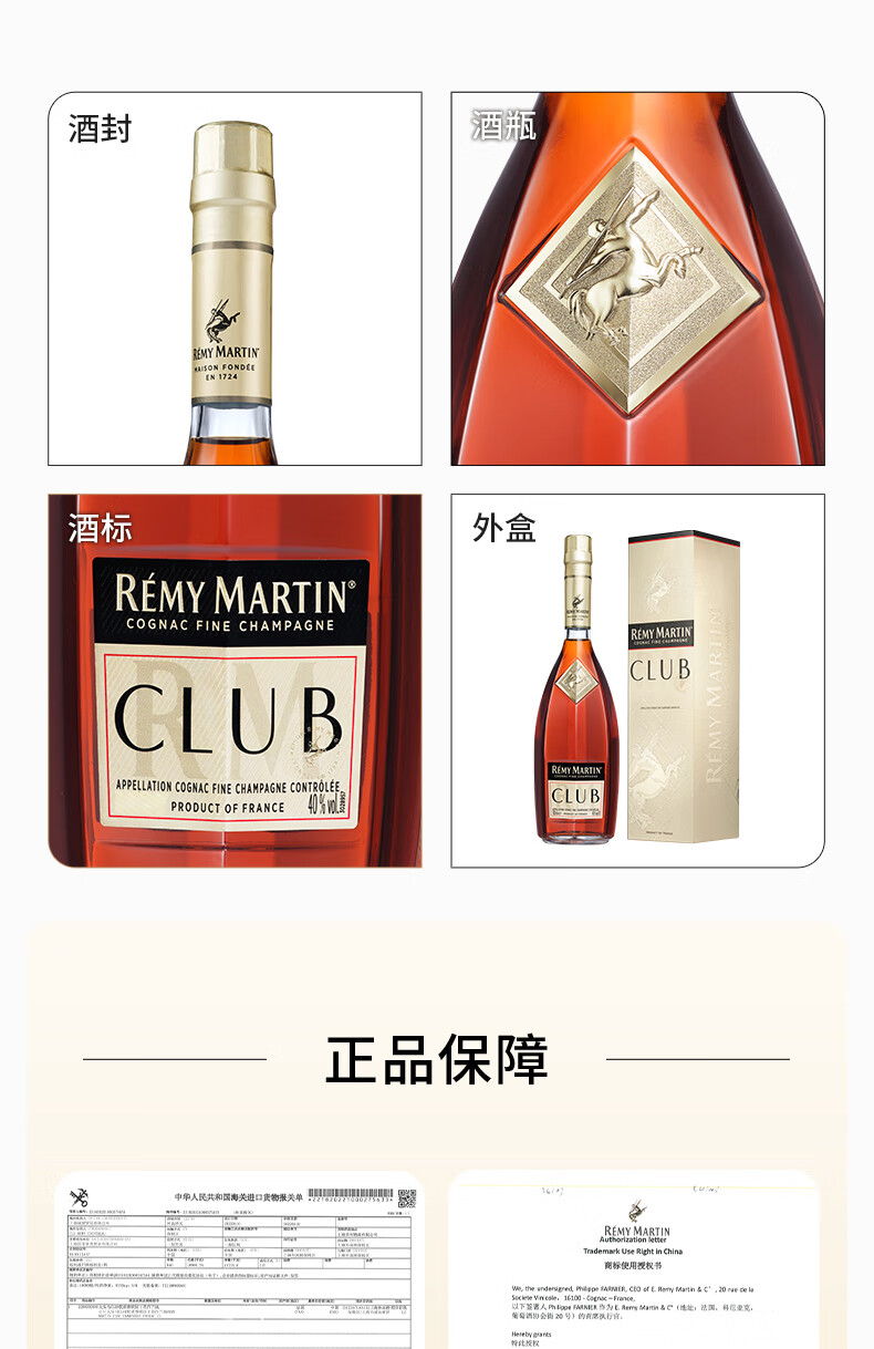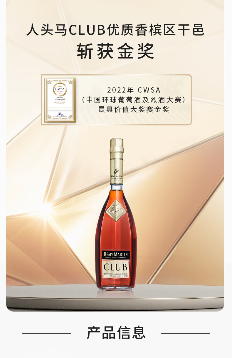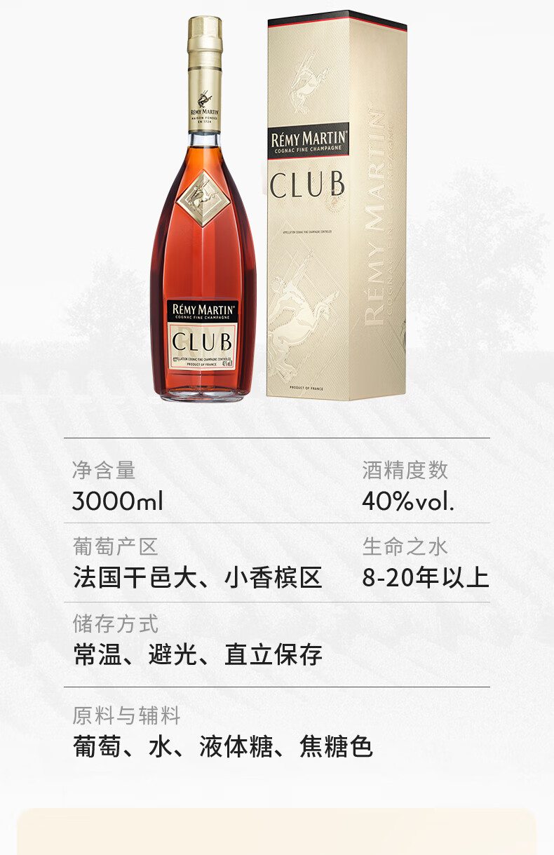 人头马(Remy Martin)洋酒 CLUB优质香槟区干邑白兰地 3000ml