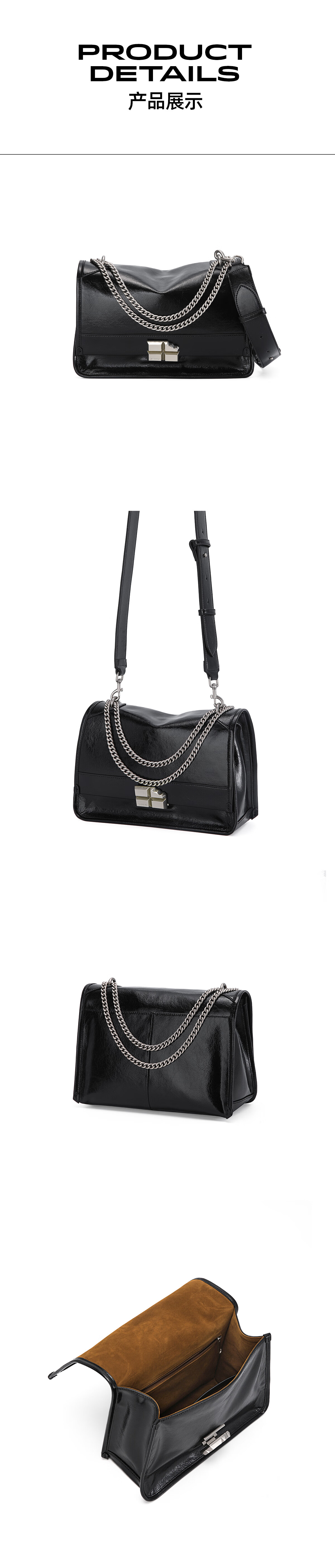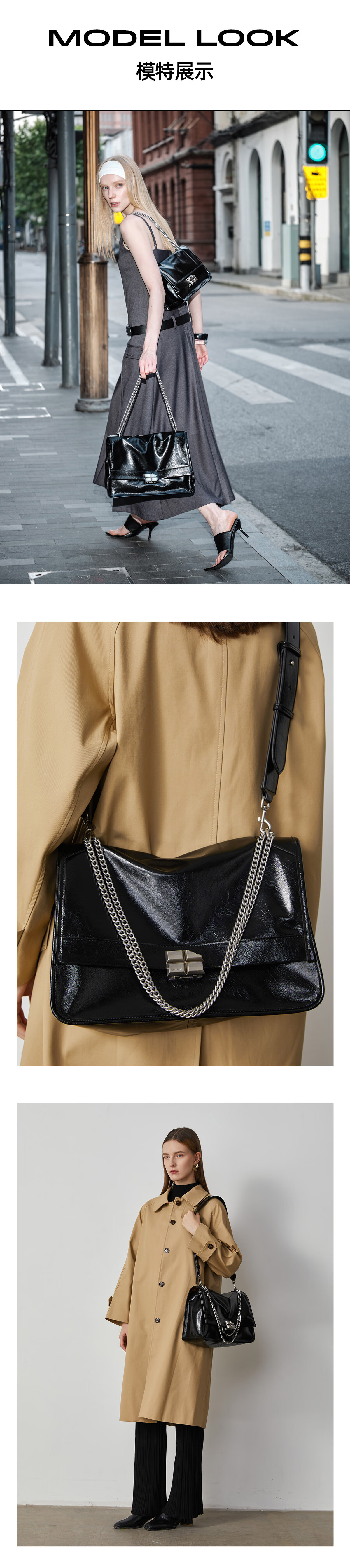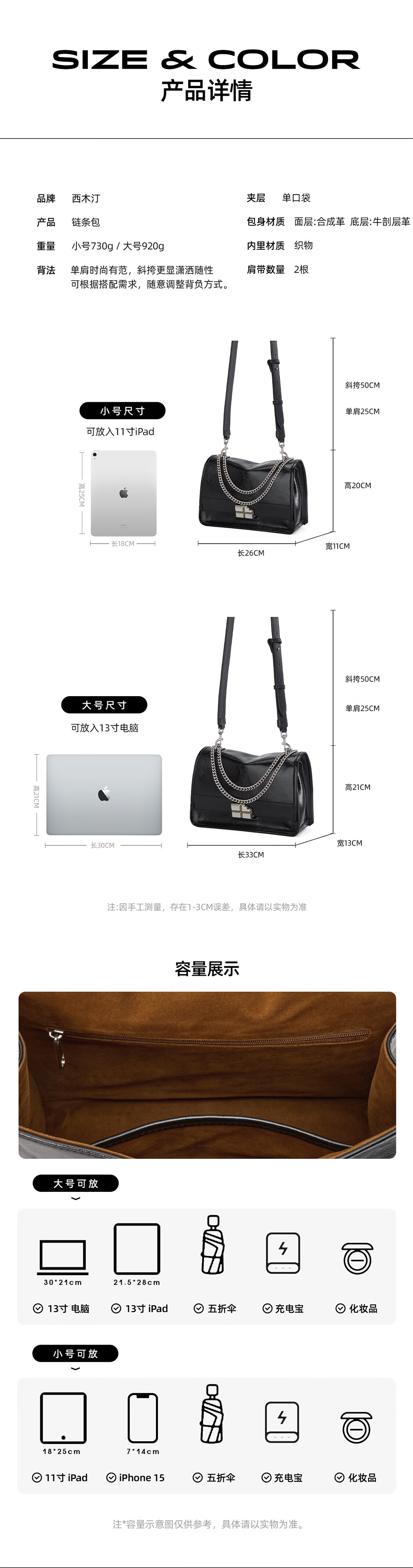 西木汀 少年派 牛皮链条托特包女大容量单肩斜挎包女友礼物 深邃黑小号