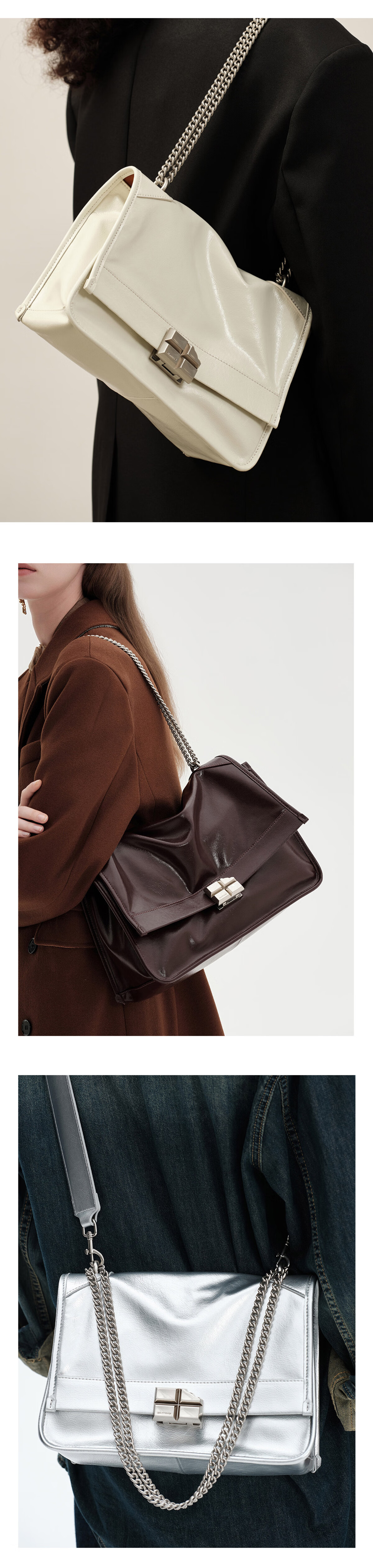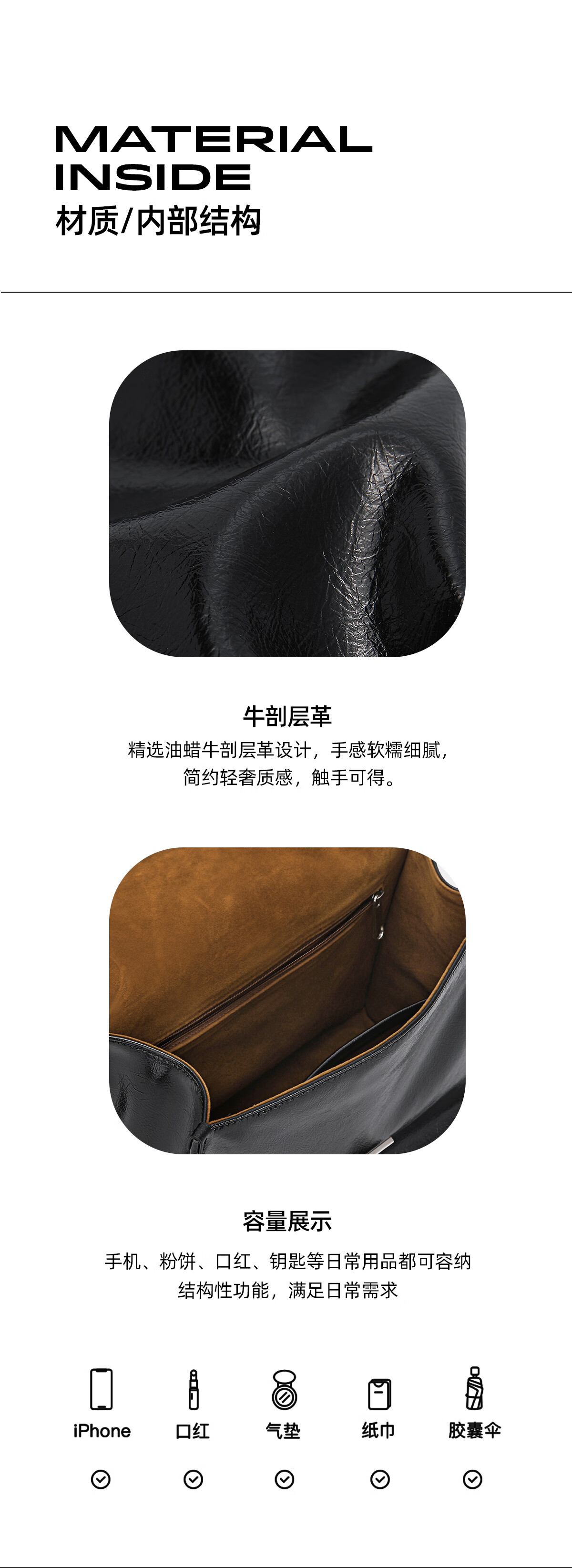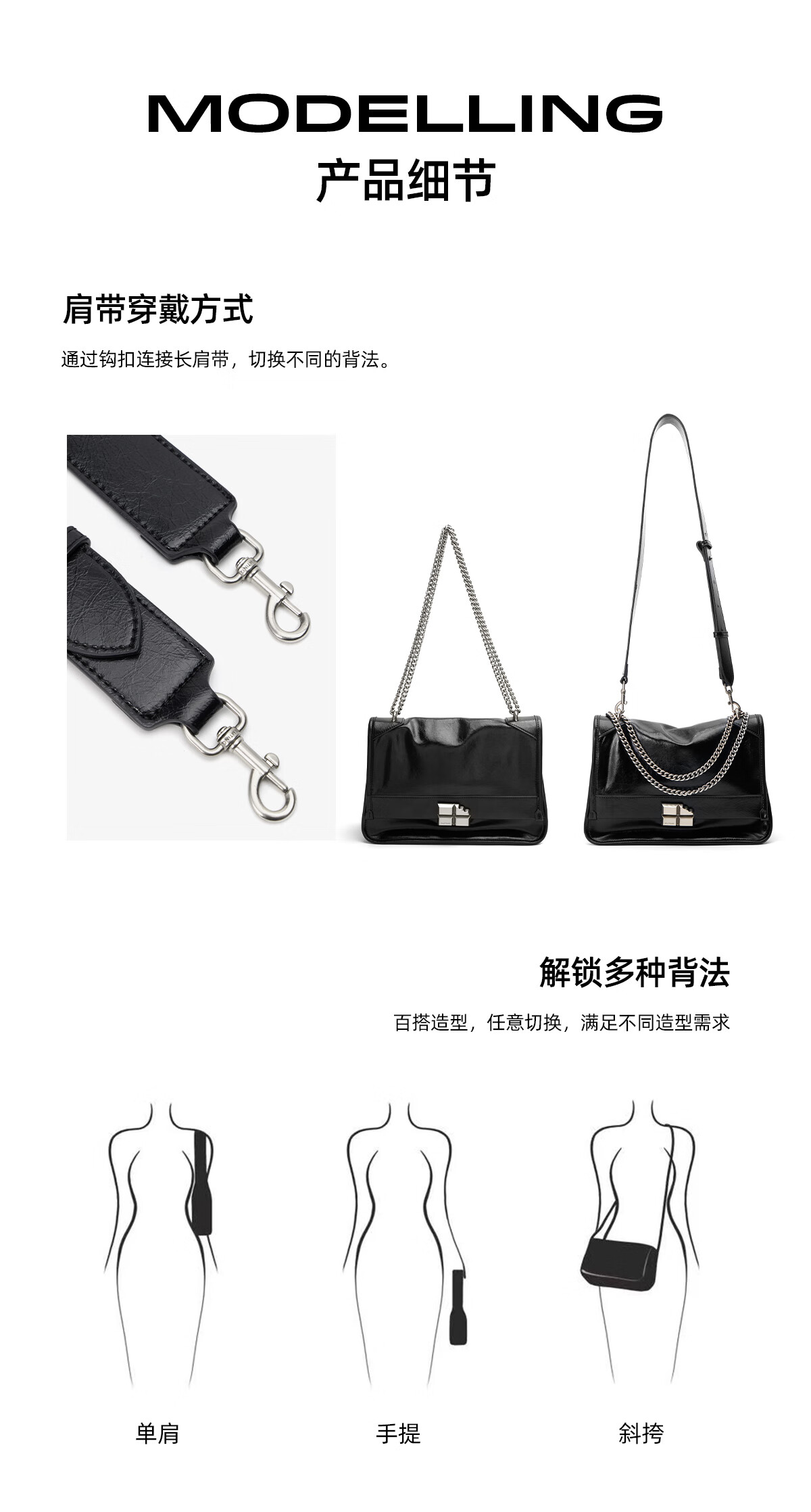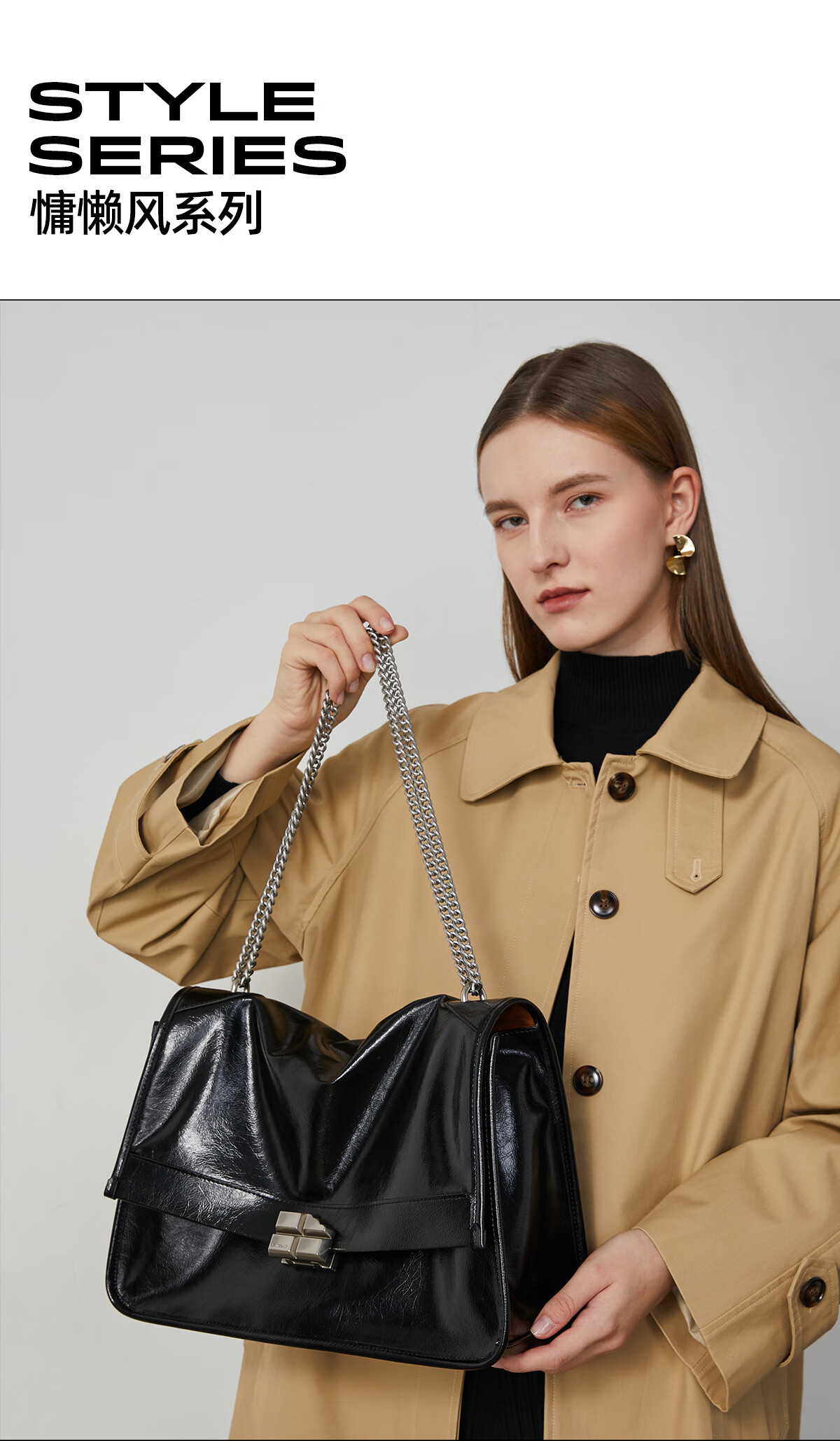 西木汀 少年派 牛皮链条托特包女大容量单肩斜挎包女友礼物 深邃黑小号