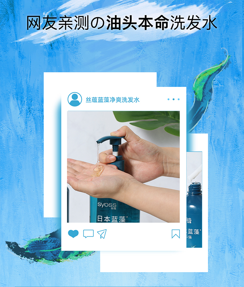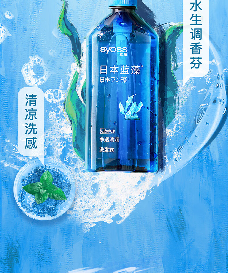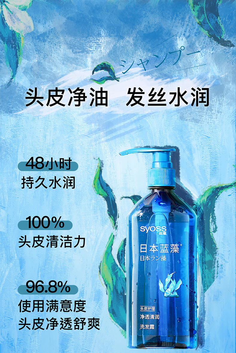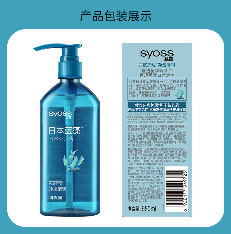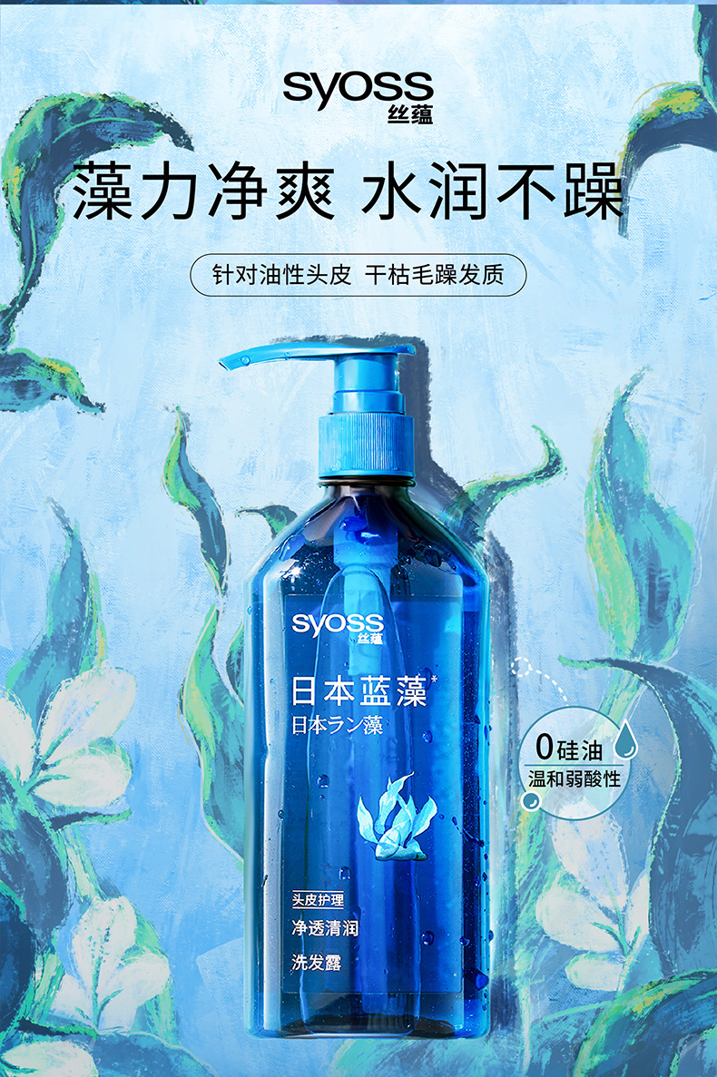 丝蕴(syoss)洗发水蓝藻控油水润洗发露680ml净爽柔顺无硅油洗头膏