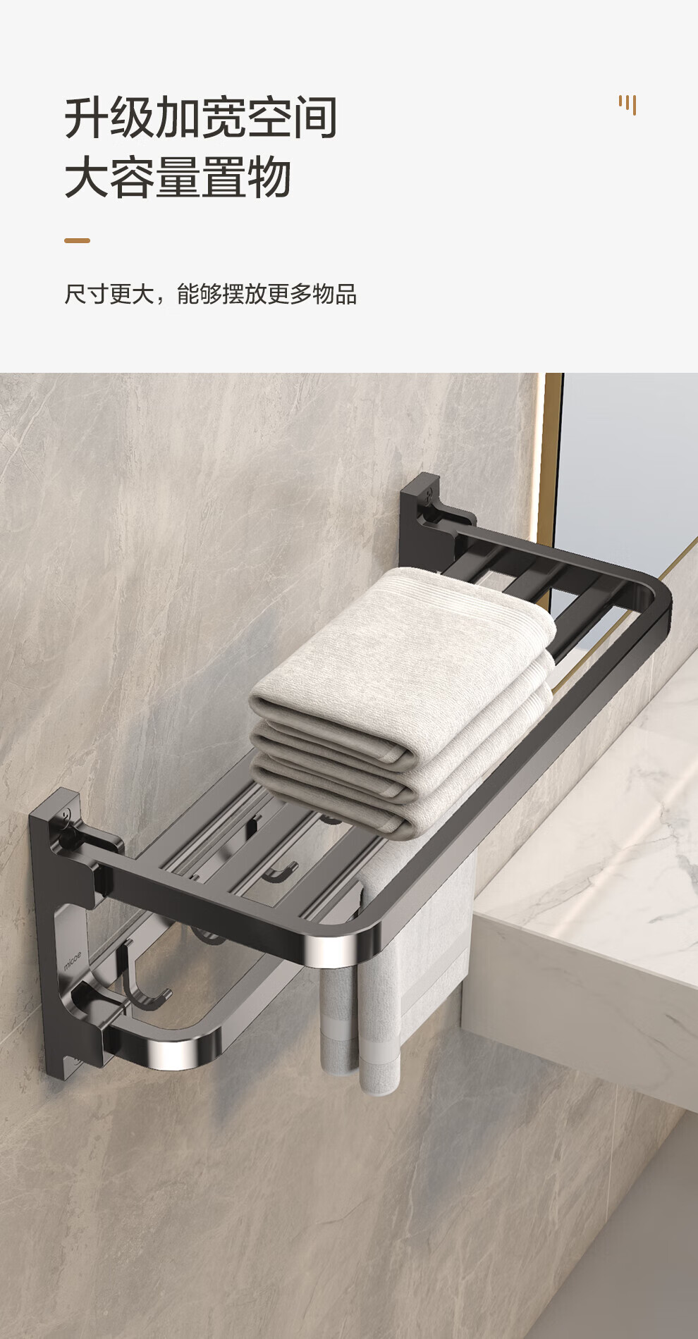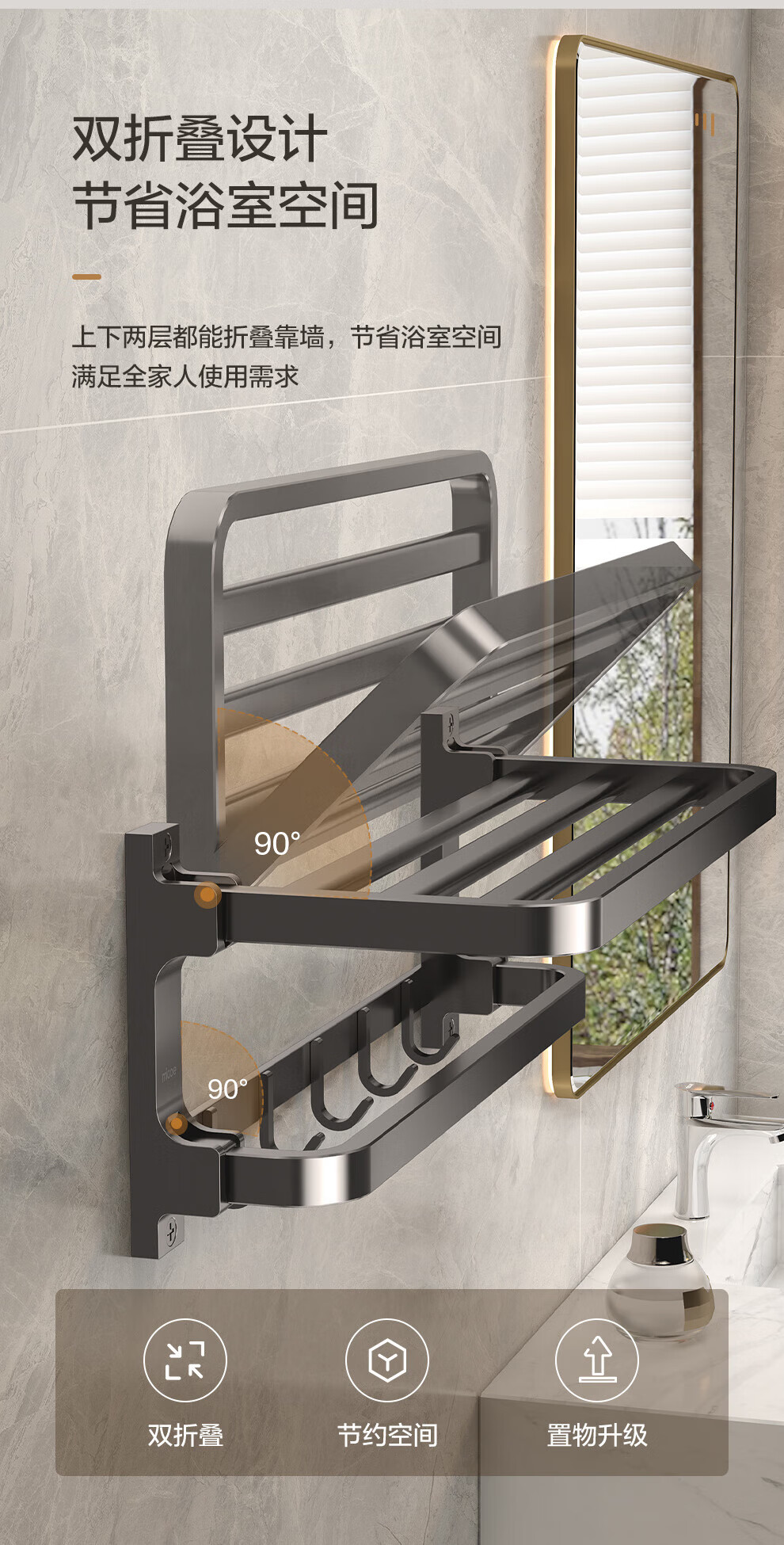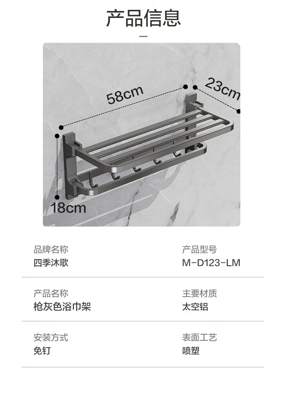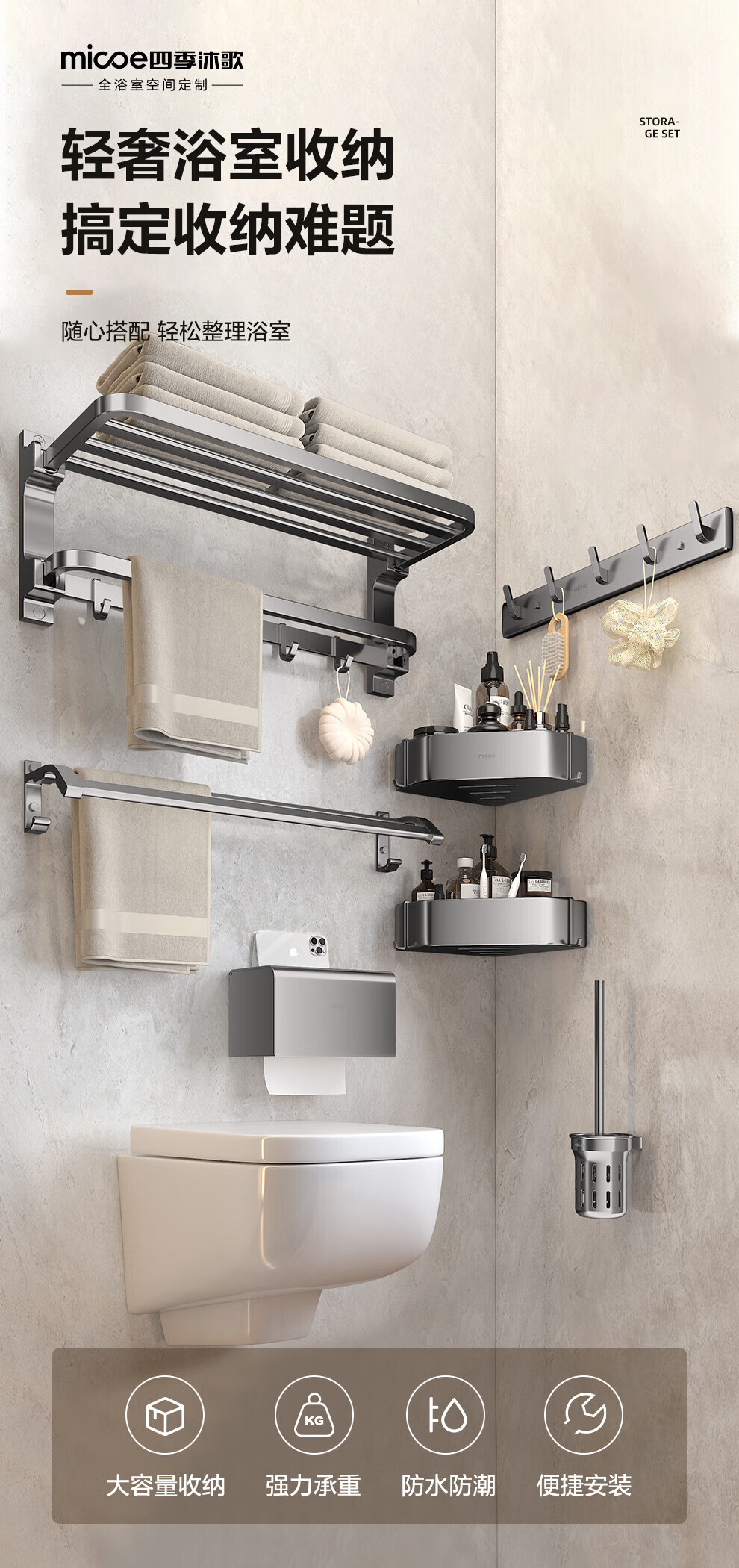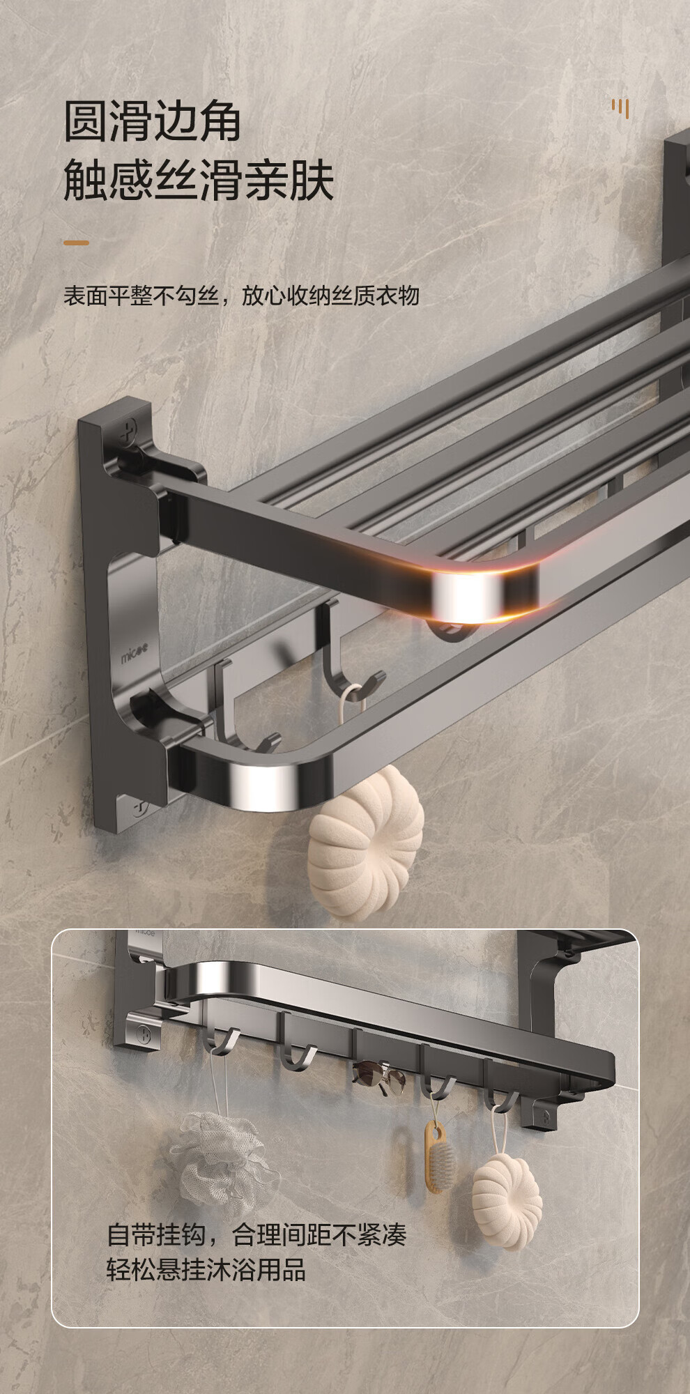 四季沐歌(MICOE)卫生间置物架毛巾架太空铝折叠浴巾架免打孔枪灰色浴室挂件