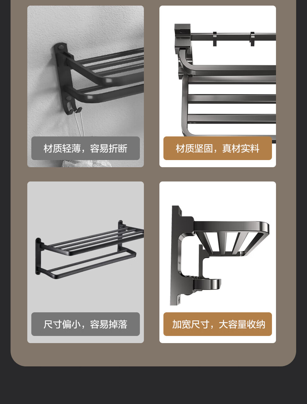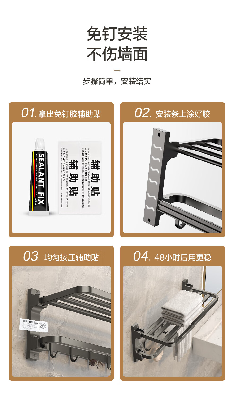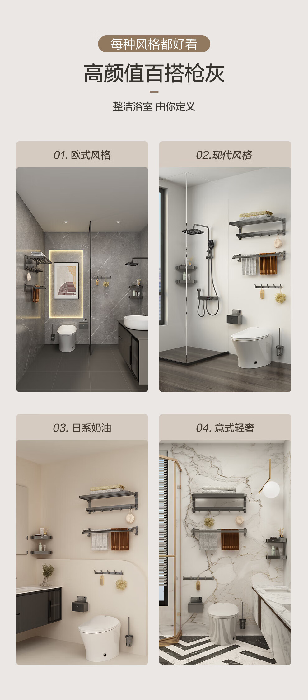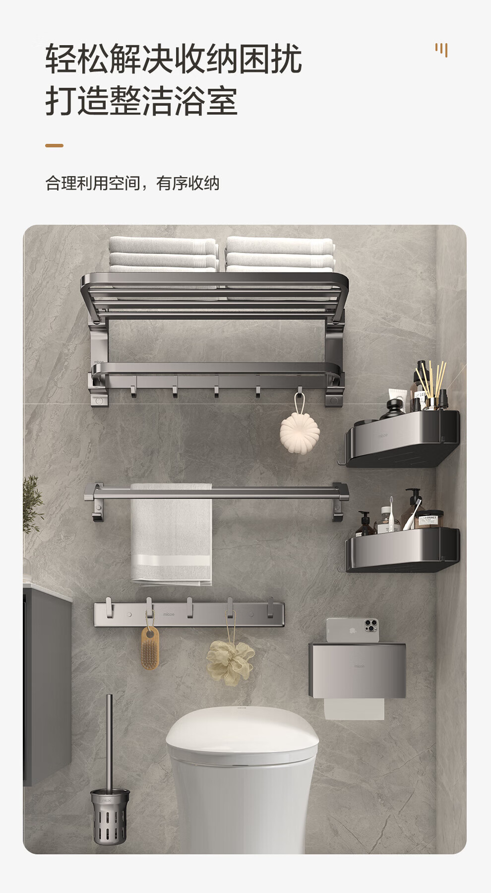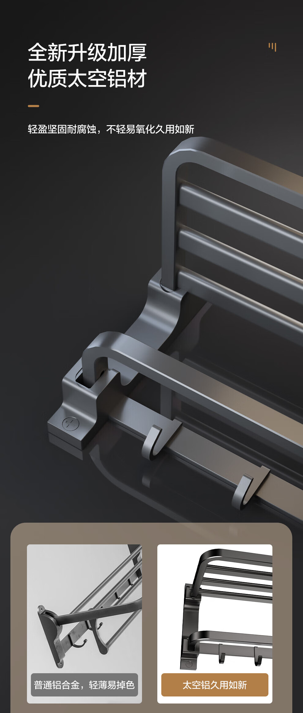四季沐歌(MICOE)卫生间置物架毛巾架太空铝折叠浴巾架免打孔枪灰色浴室挂件