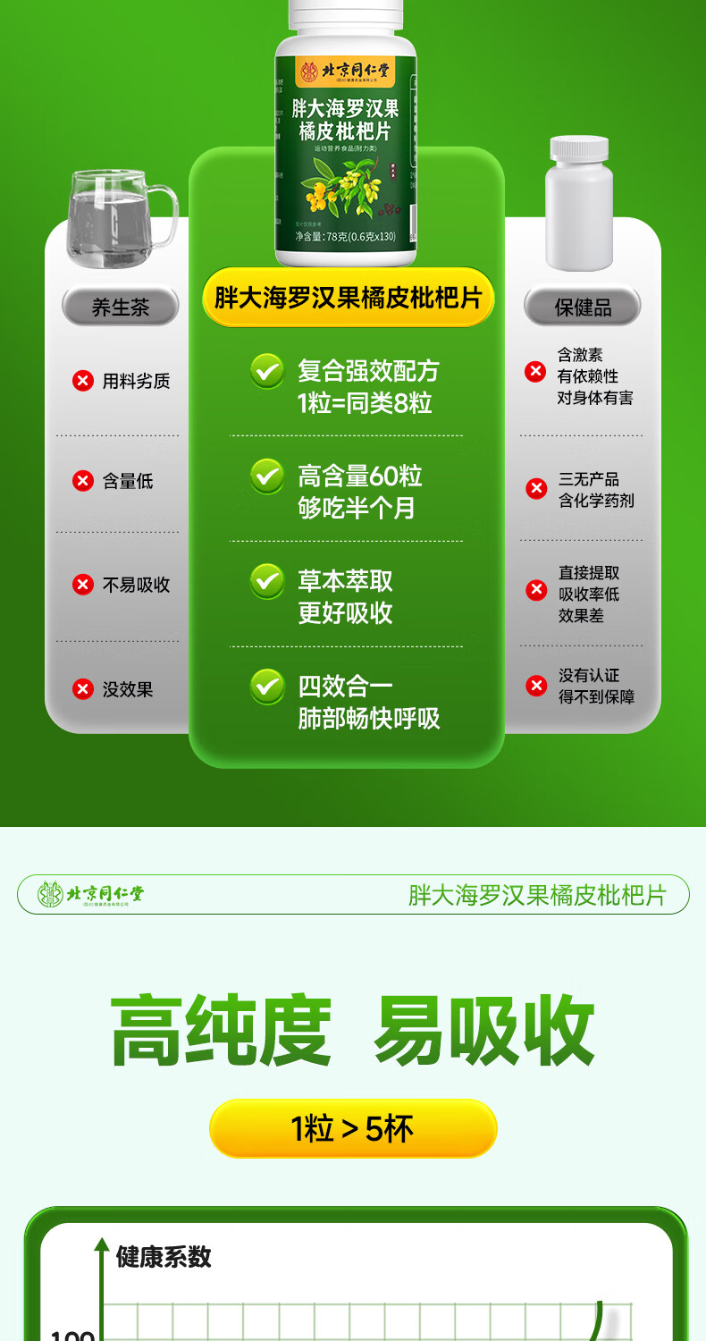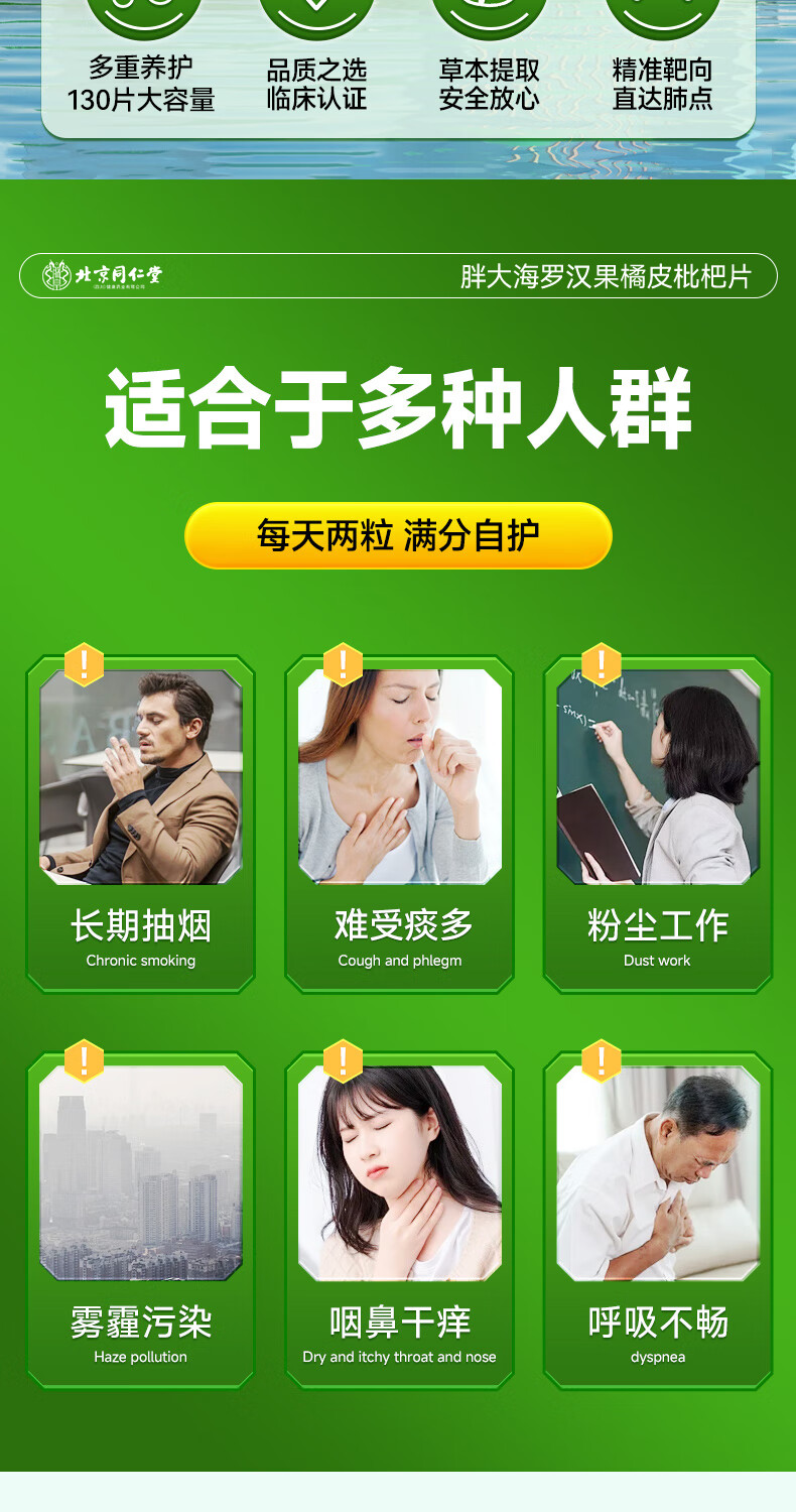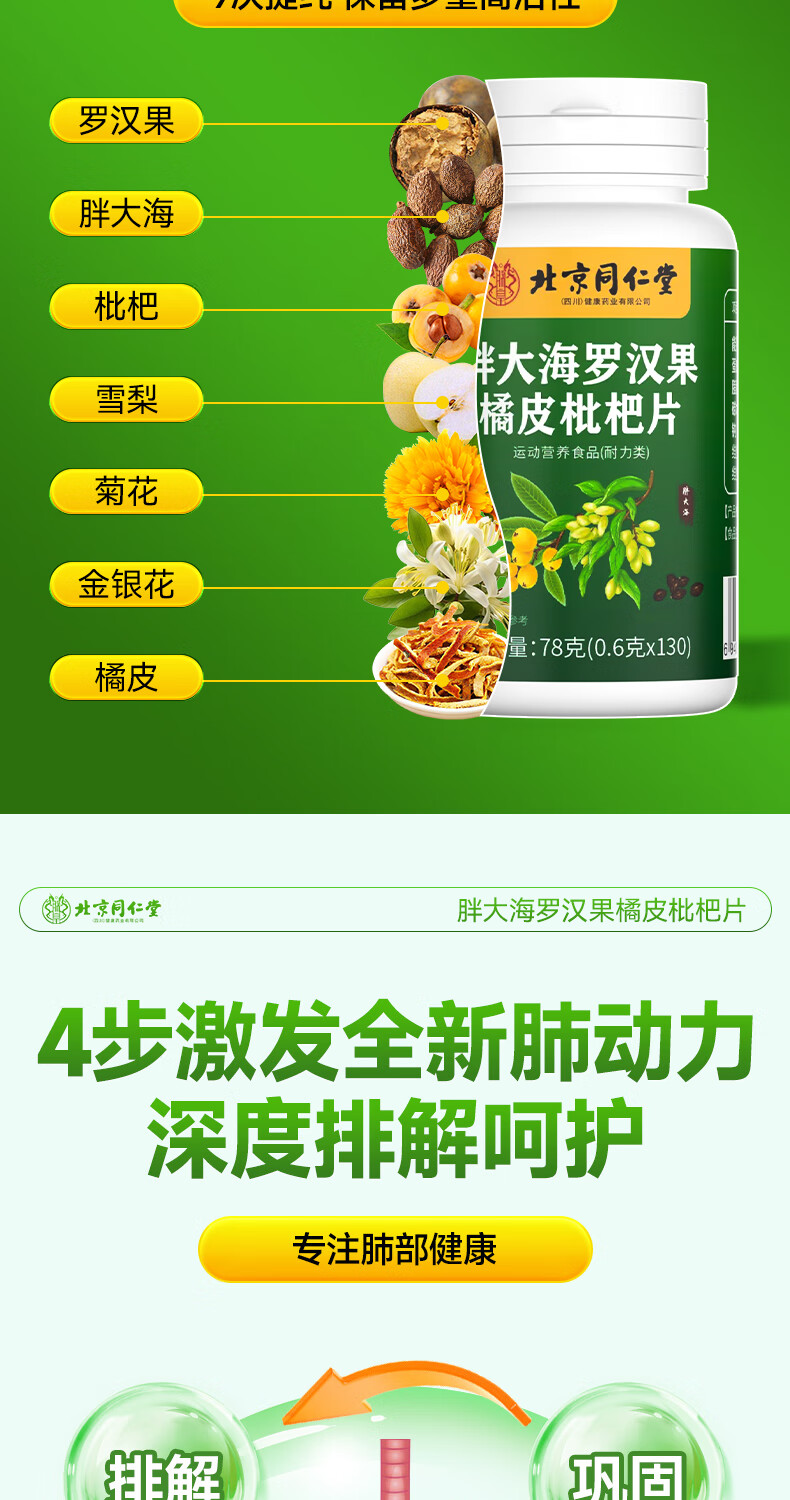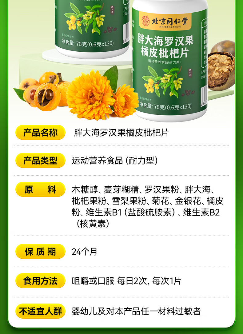 朕皇北京同仁堂胖大海罗汉果橘皮陈皮枇杷祛清润护嗓喉含片肺痰非糖 【1盒体验装】130片/盒