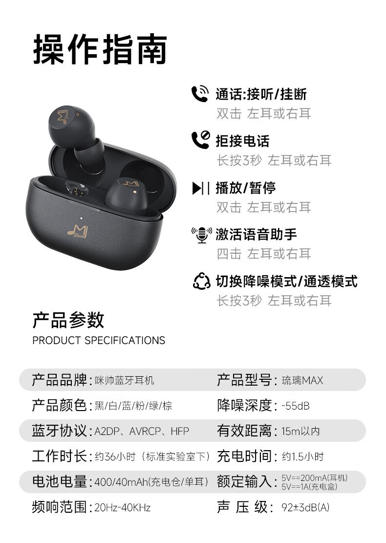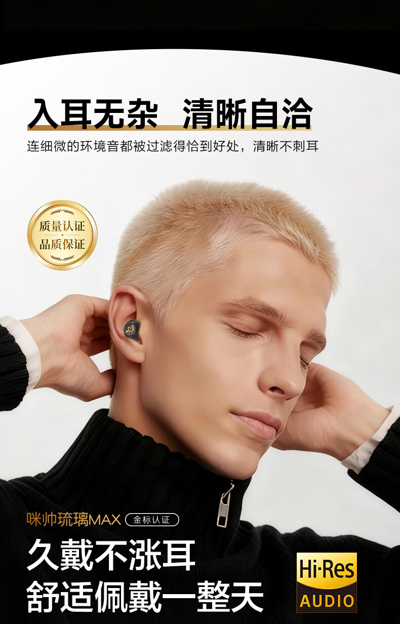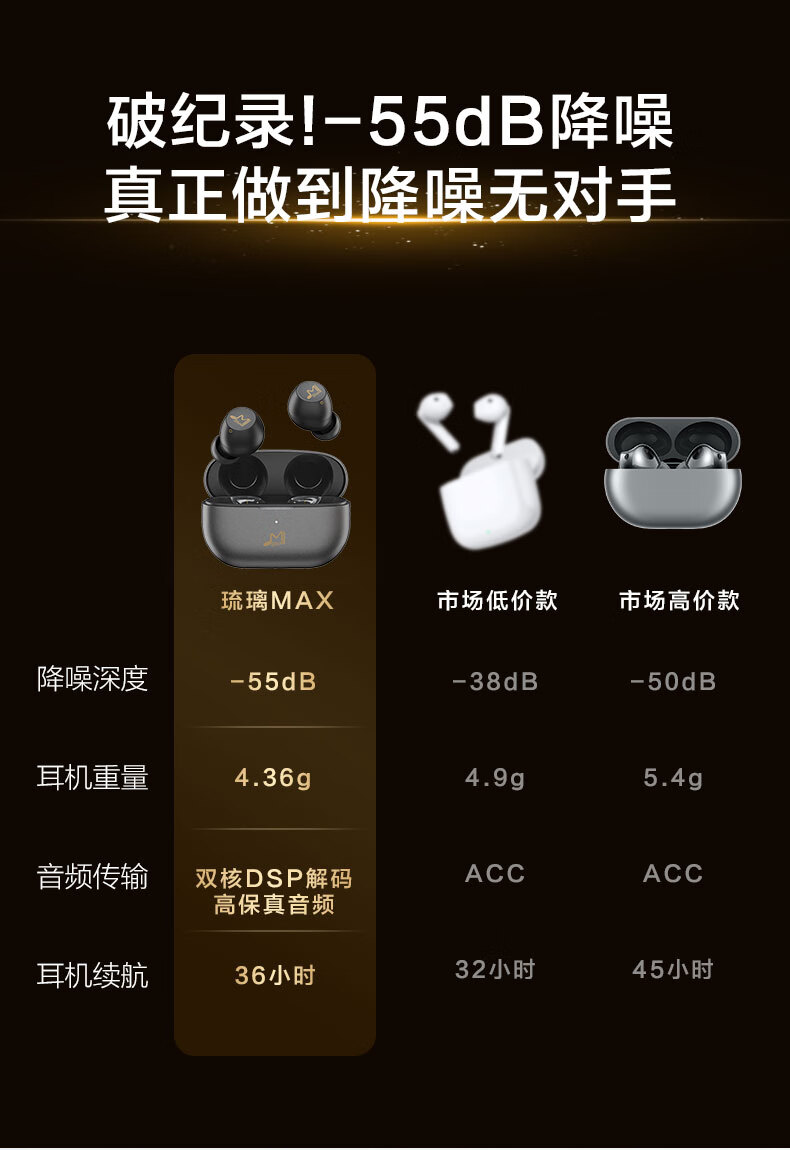 咪帅琉璃MAX无线蓝牙耳机2025新款高颜值主动降噪入耳式游戏音乐运动耳机高音质HiFi音质长续航学生 琉璃MAX【钻石黑】旗舰款