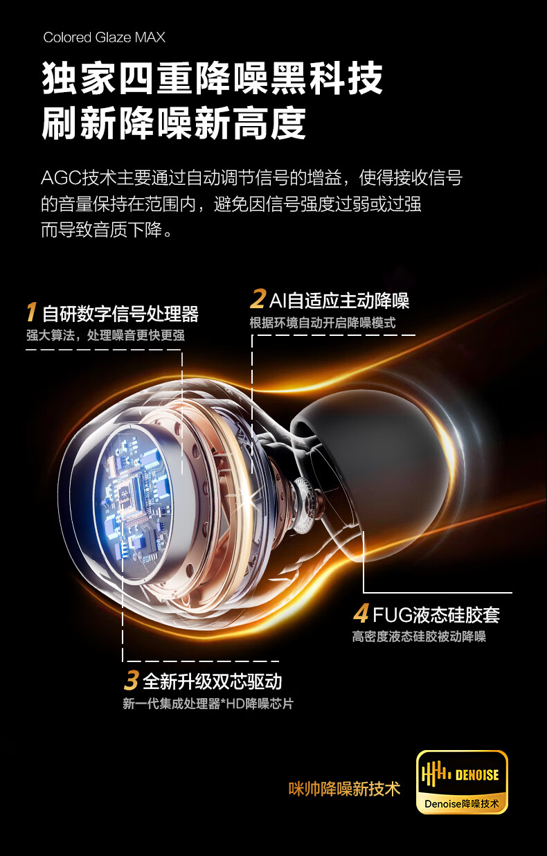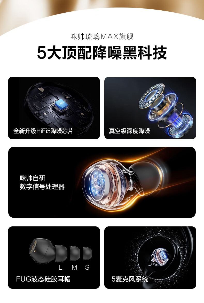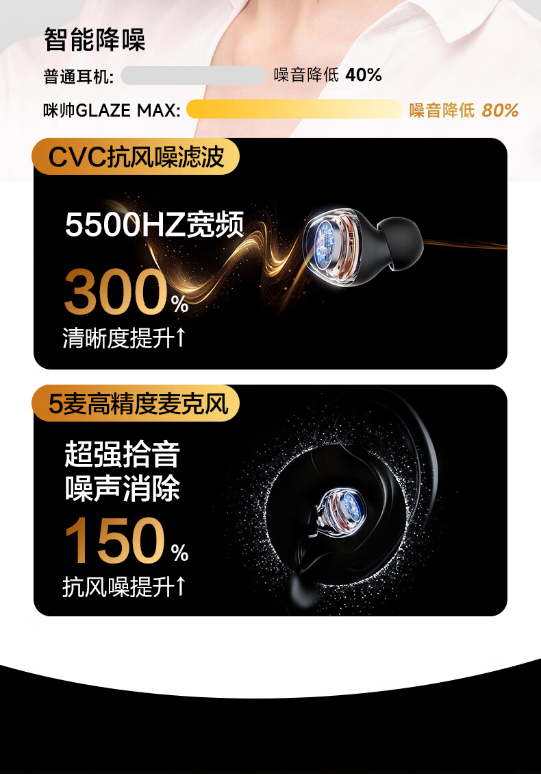 咪帅琉璃MAX无线蓝牙耳机2025新款高颜值降噪音乐耳机男女士运动入耳式高音质 【钻石黑】-55dB深海级降噪+AI通话降噪+HIFI级音质 标配版