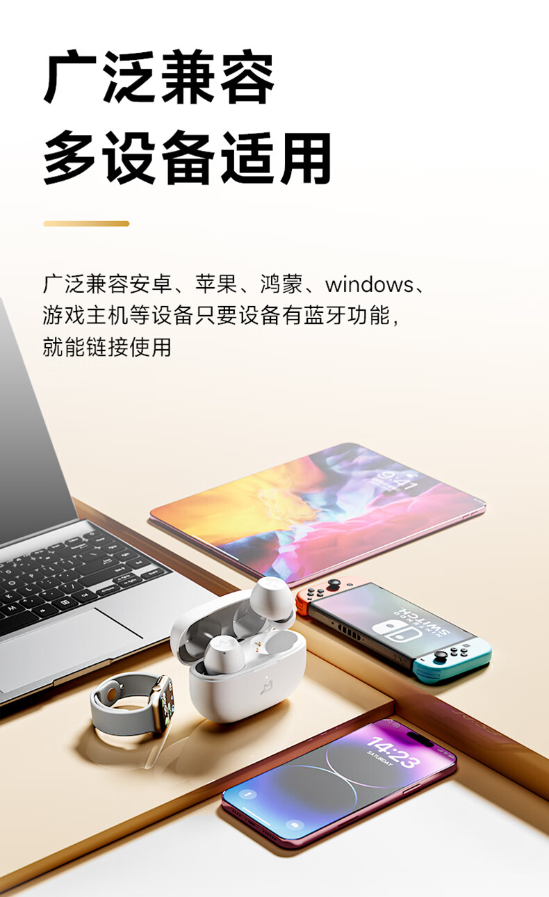 聆创者甜甜圈无线蓝牙耳机半入耳式久戴不痛运动自动降噪耳机学生情侣生日礼物超长续航适用小米苹果华为 白色【蓝牙5.4芯片】待机360H