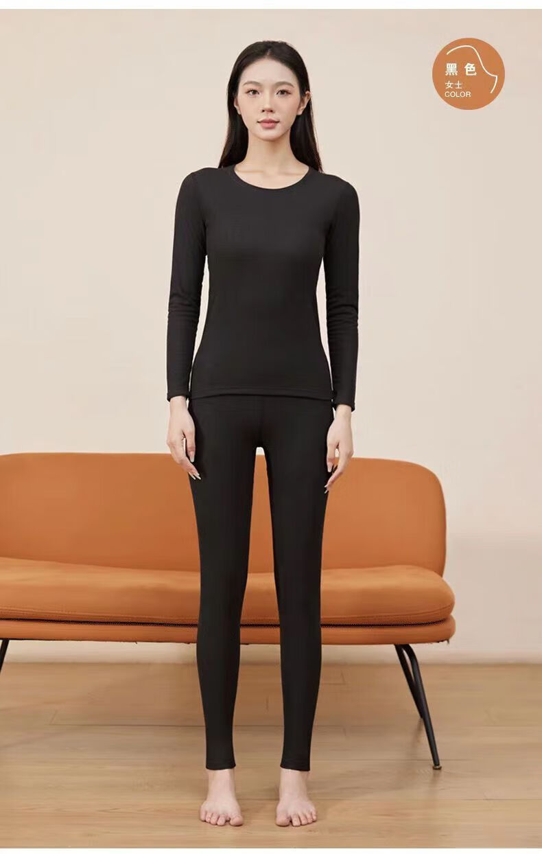 雅鹿保暖内衣女士秋冬季加绒加厚线衣线裤打底防寒秋衣秋裤套装 黑色【羊绒蚕丝-女款】 2XL
