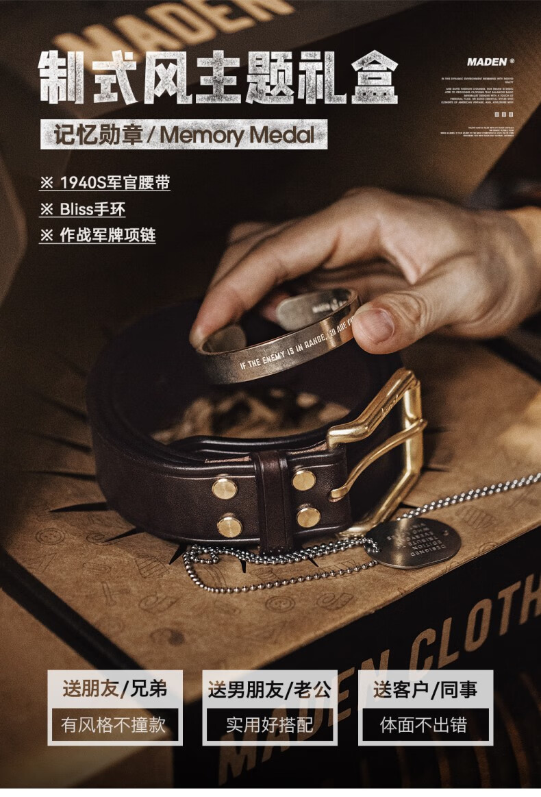 马登工装设计师制式主题礼盒男款高街潮牌送礼实用爸爸高级感套装 制式风礼盒 【腰带+项链+手环】 均码