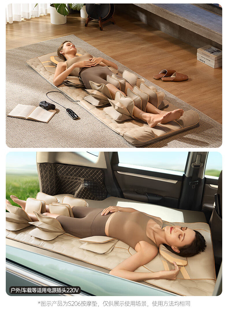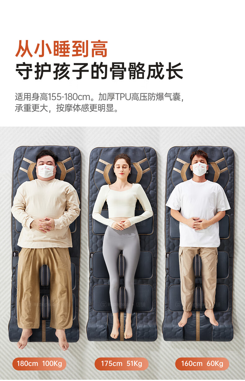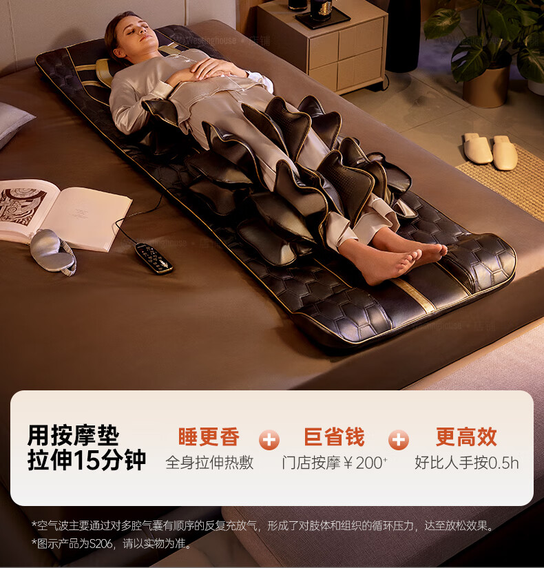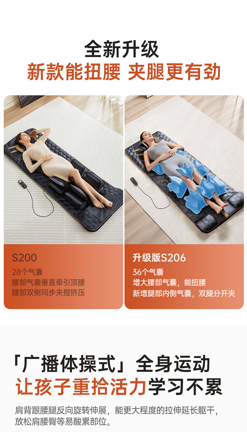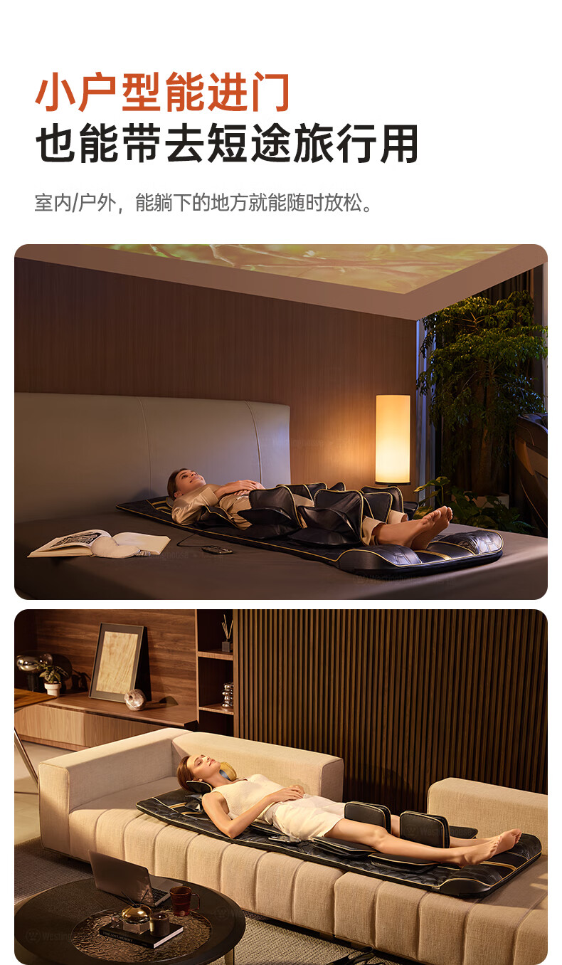 西屋(Westinghouse)S200/S206/S206Pro按摩垫全身拉伸垫躺垫床上折叠按摩椅家用迷你腰部背部按摩床垫爸妈送礼礼物 S206Pro诺曼底灰【腿足360度包裹按摩】 【放松好睡眠】