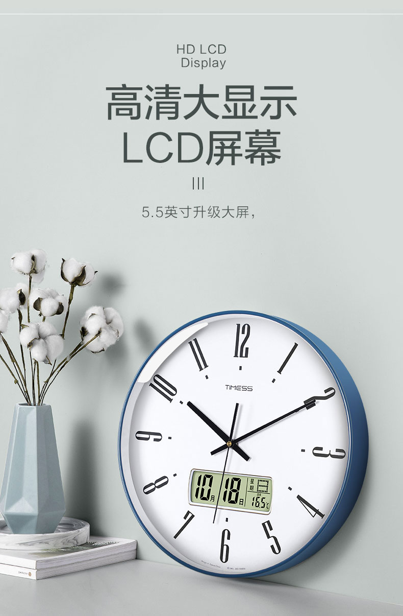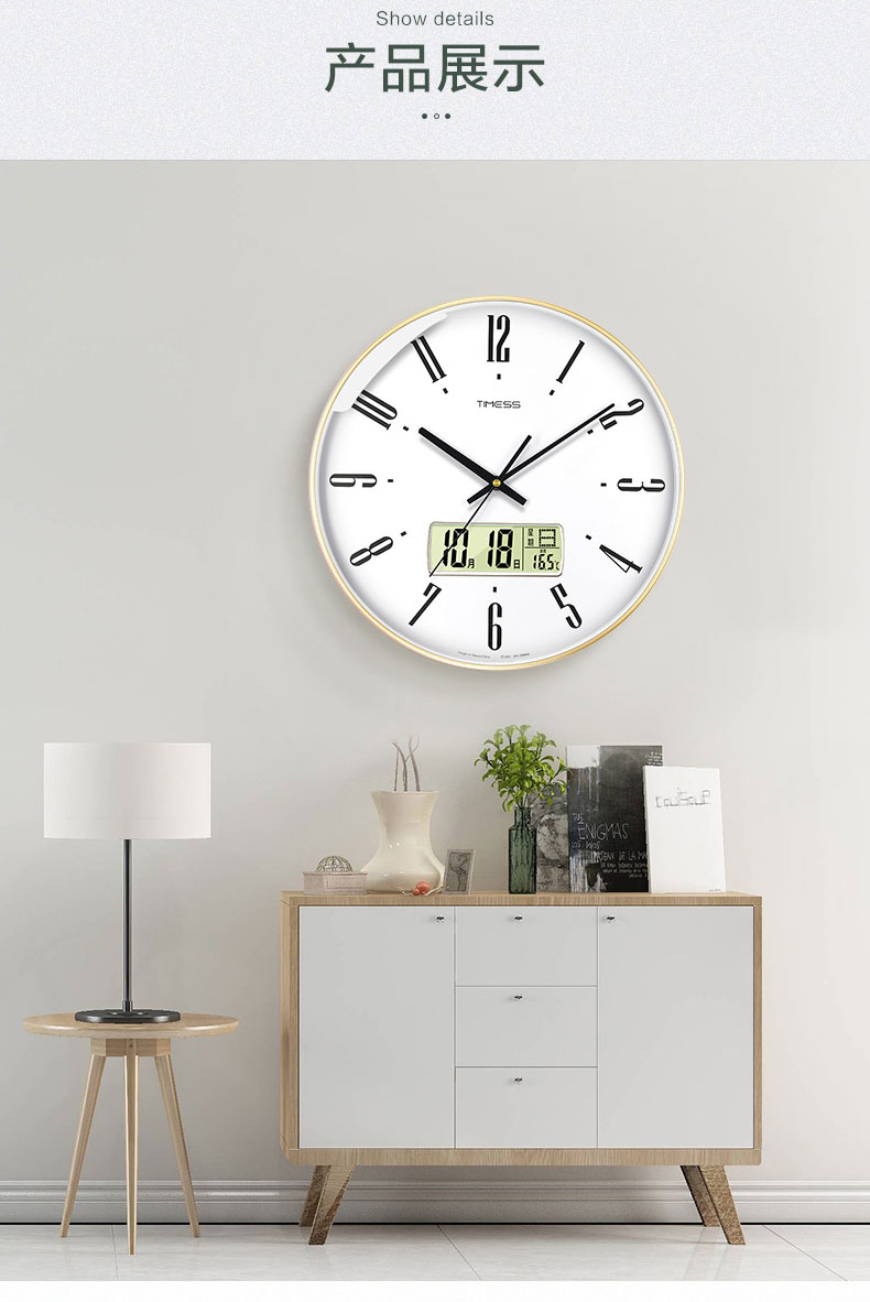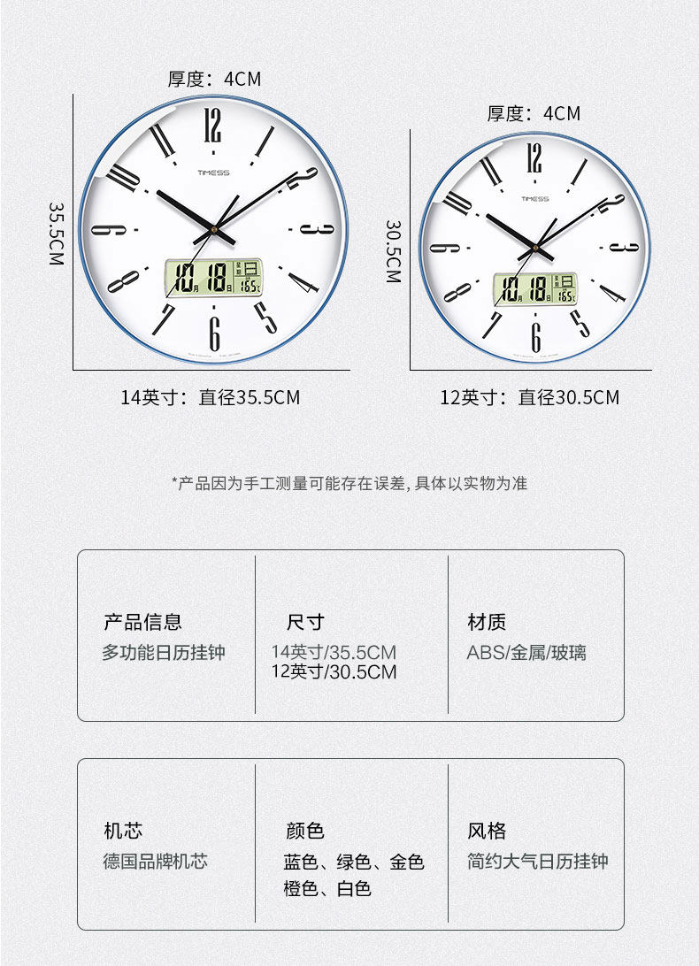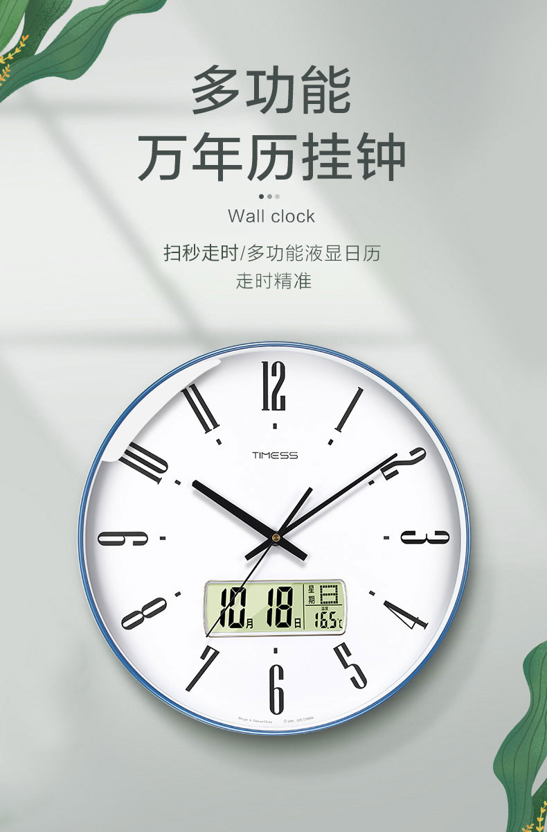 Timess挂钟 电波钟客厅钟表万年历时尚时钟表挂墙智能自动对时36cm