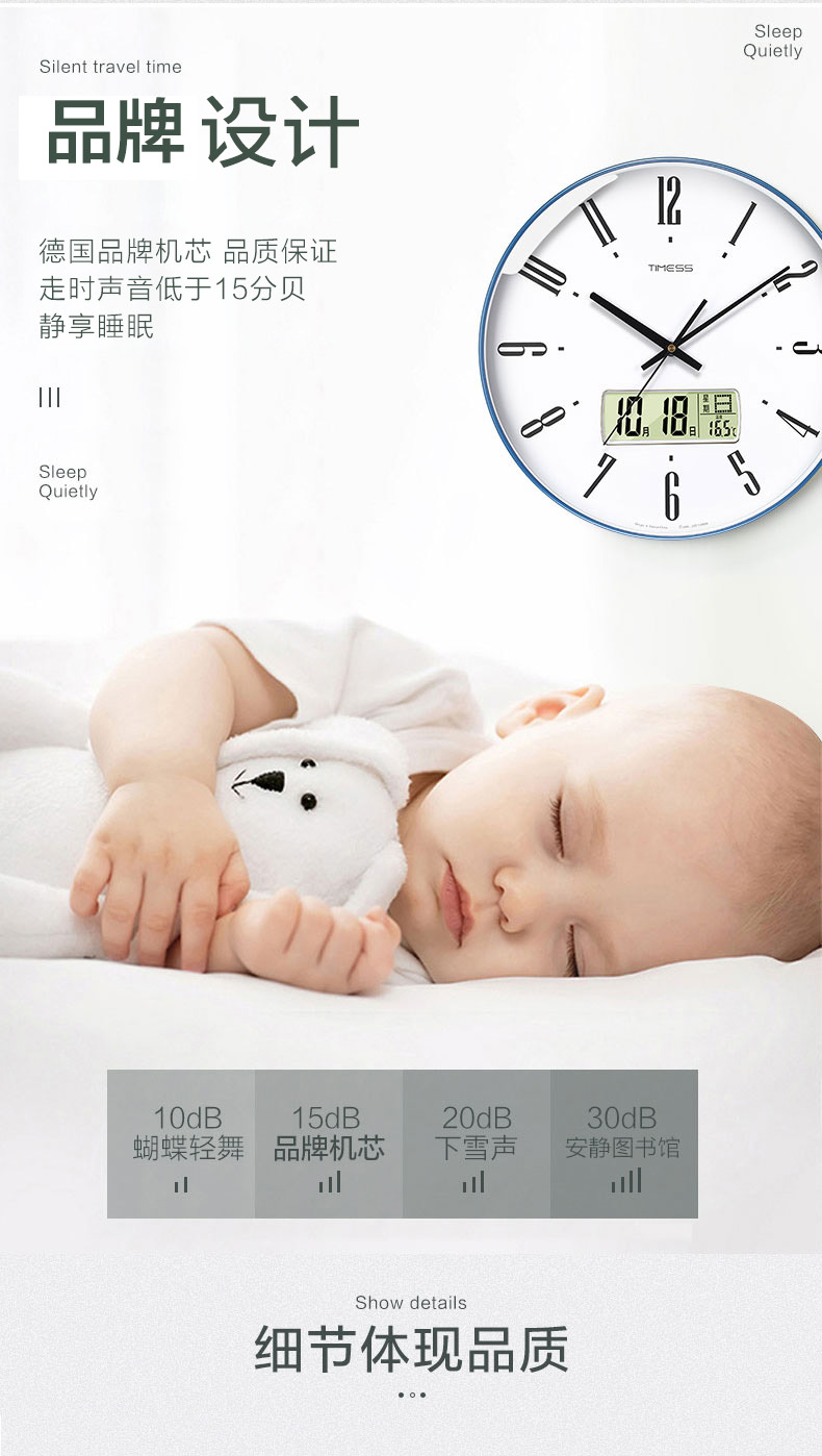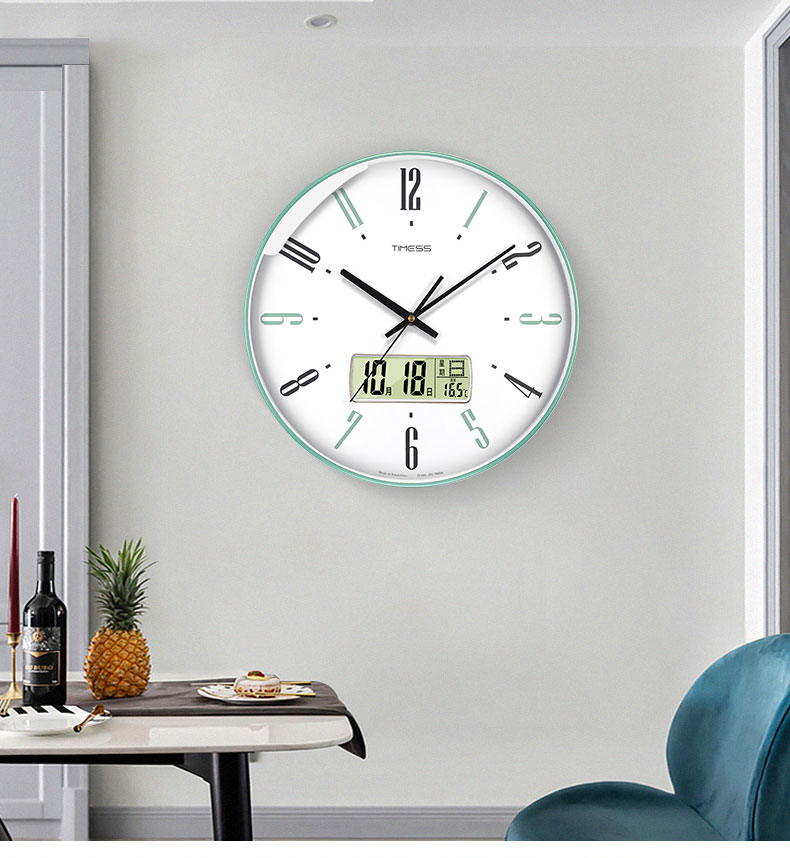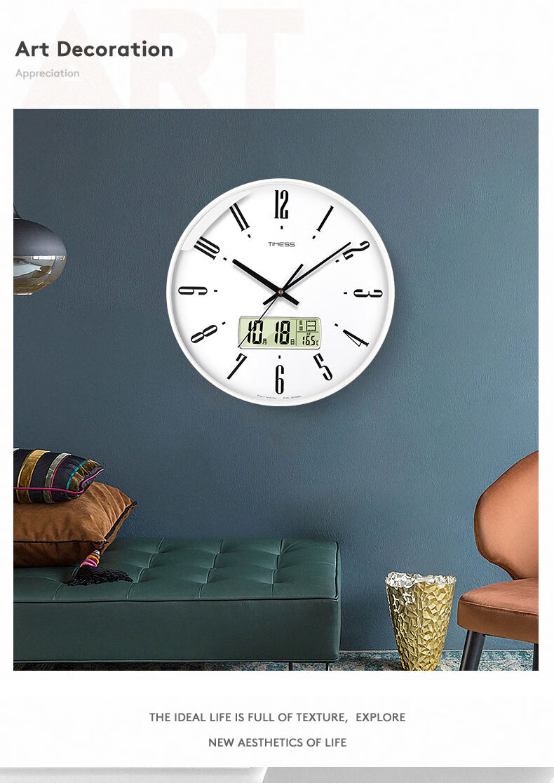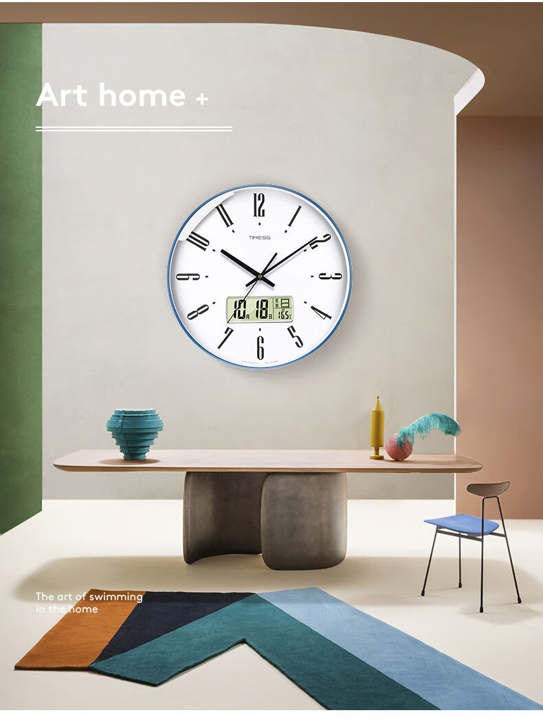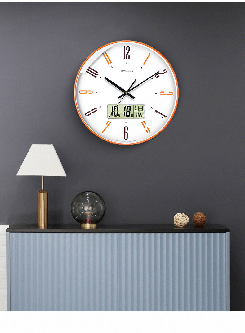 Timess挂钟 电波钟客厅钟表万年历时尚时钟表挂墙智能自动对时36cm