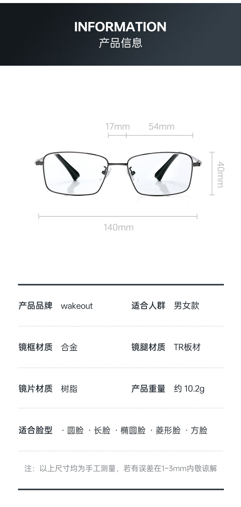 wakeout老花镜男女款时尚显年轻防蓝光高清超轻老光镜 50度七夕