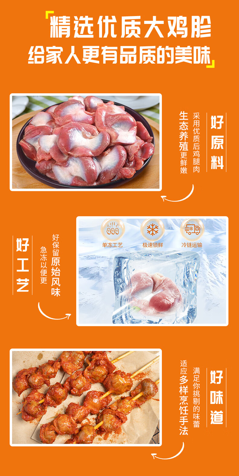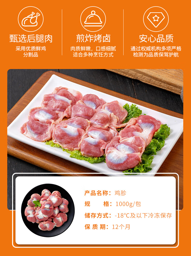 荤八厨 鸡胗2斤净重 鸡肉生鲜冷冻鸡肫鸡胃鸡杂卤味烧烤肉食材空气炸锅