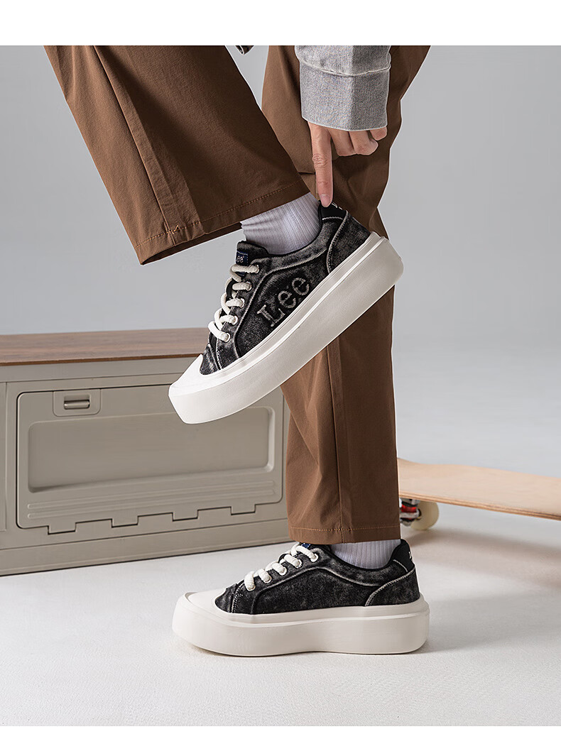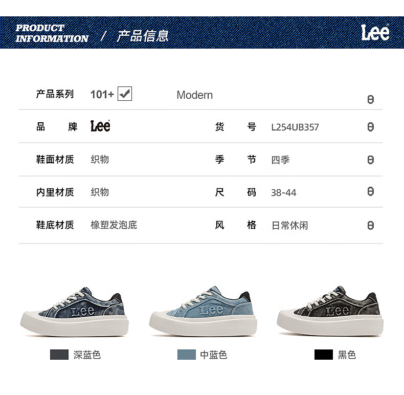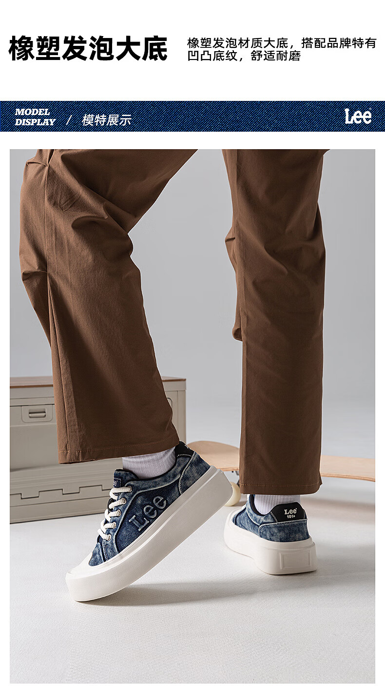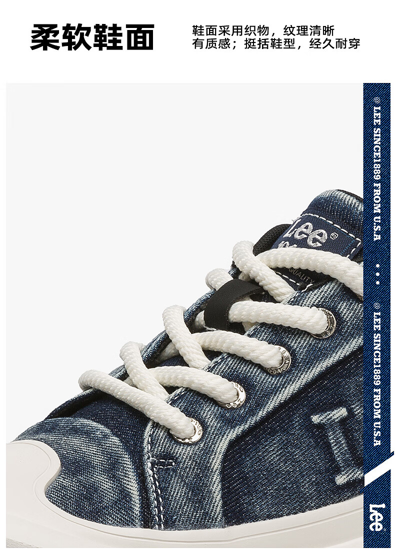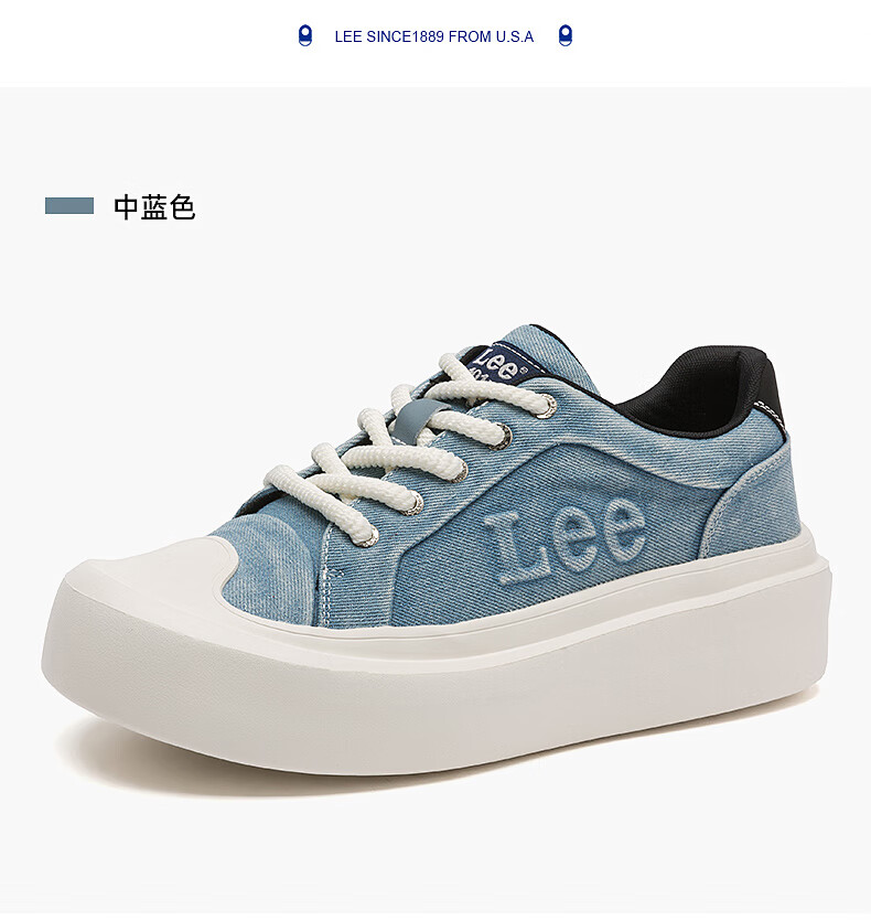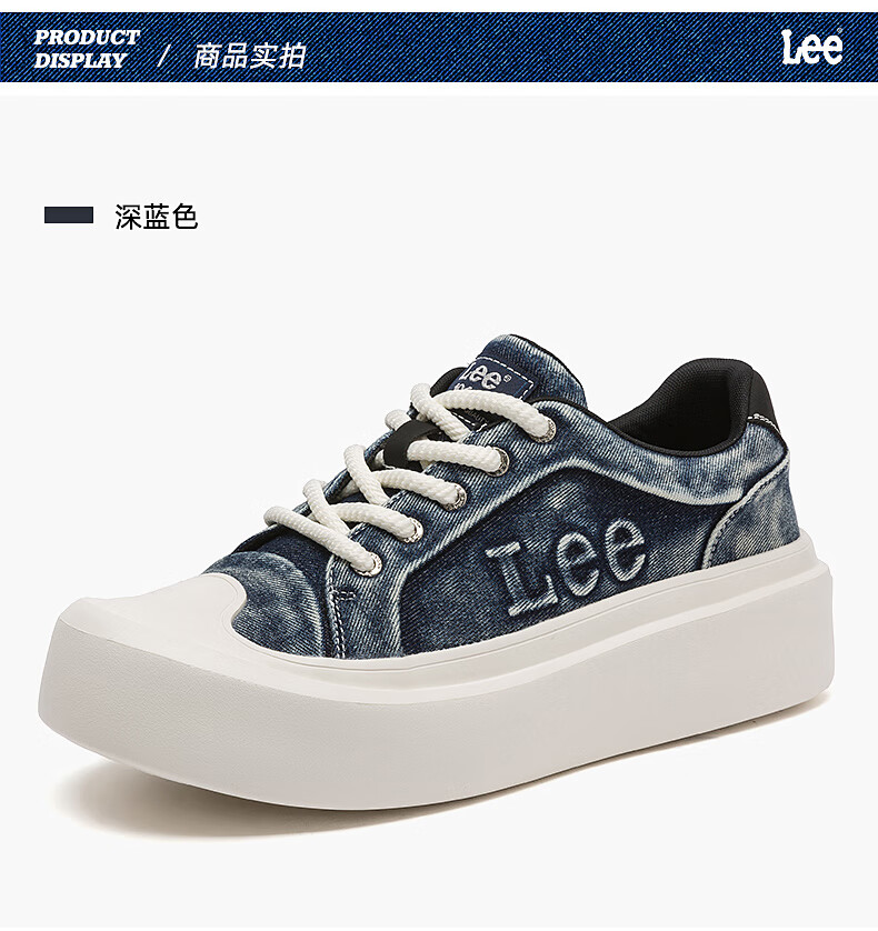 Lee男鞋复古帆布鞋增高低帮板鞋运动鞋百搭舒适休闲鞋潮流时尚鞋子男 深蓝 38 【偏大/请拍小一码】