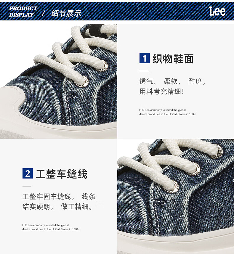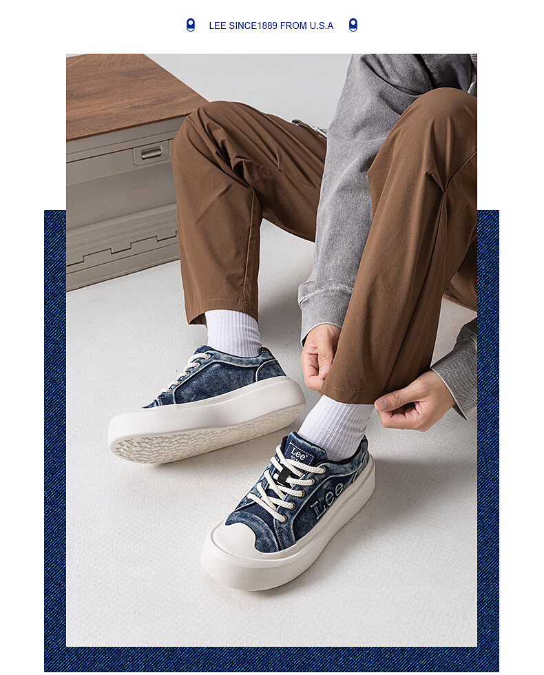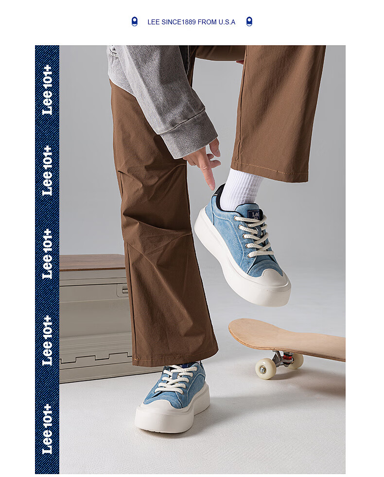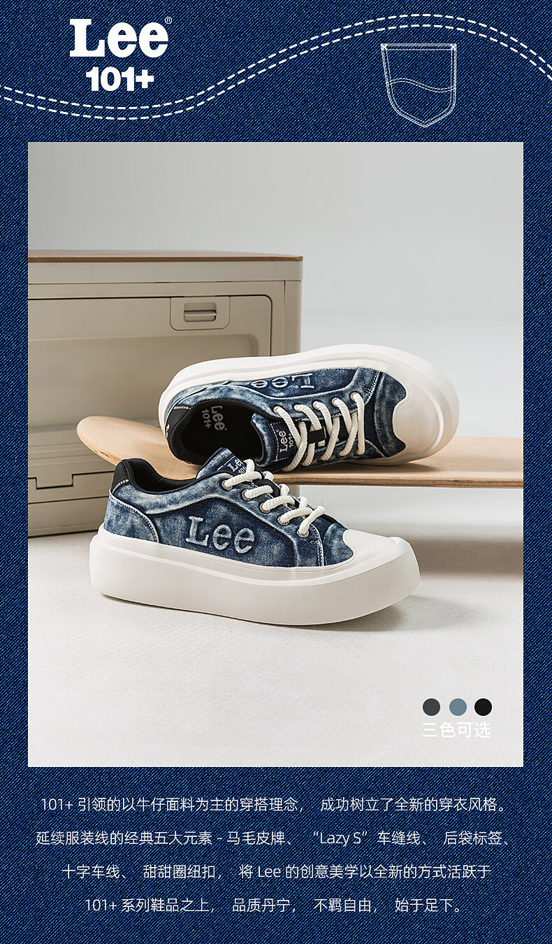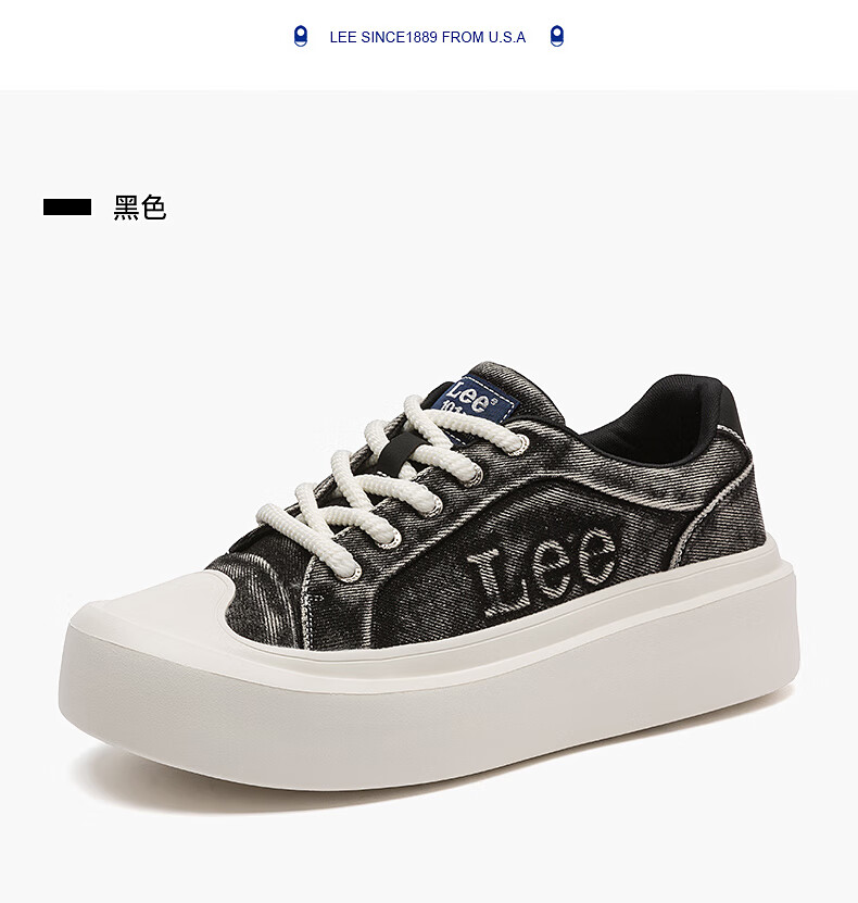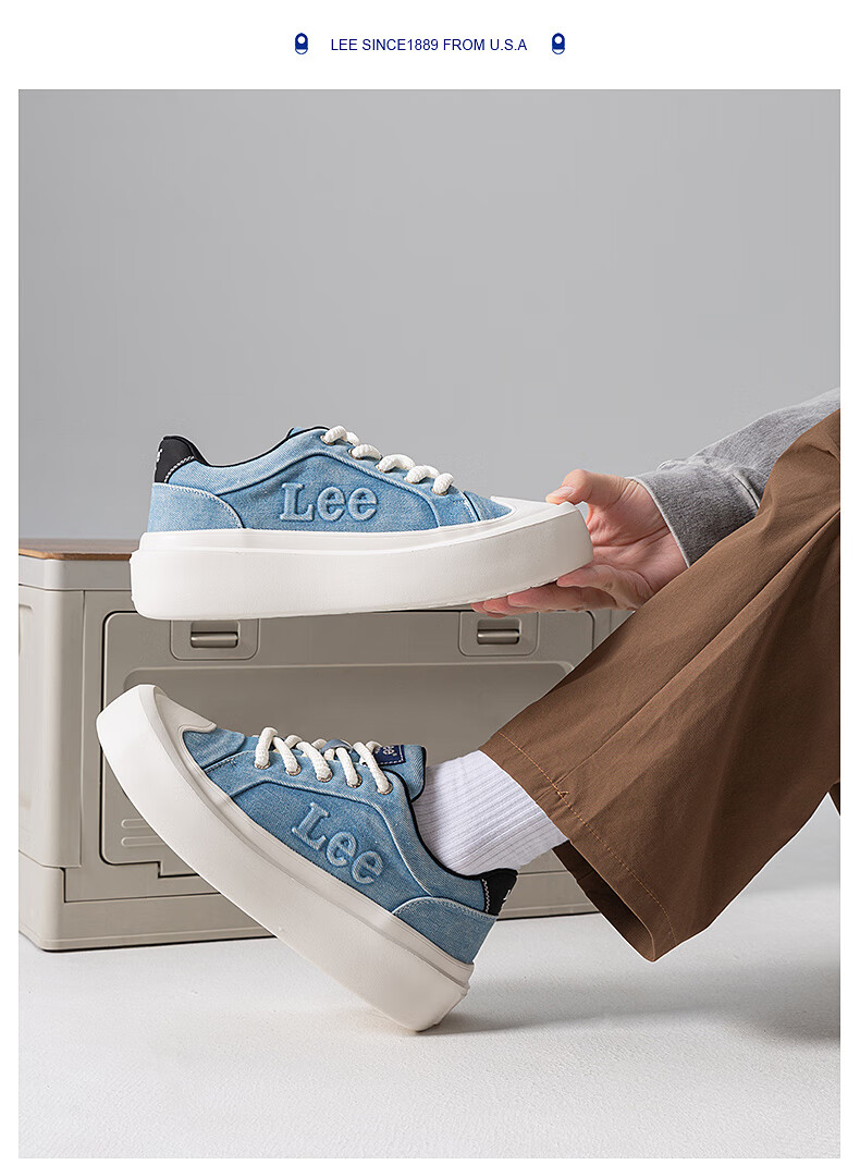 Lee男鞋复古帆布鞋增高低帮板鞋运动鞋百搭舒适休闲鞋潮流时尚鞋子男 深蓝 38 【偏大/请拍小一码】