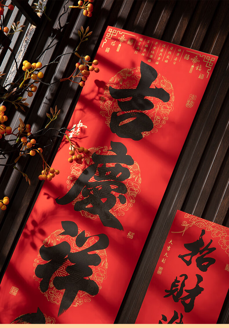 渡鹊桥春联马年2026年新款高档黑字不褪色防水过年背胶家用大门对联装饰 小平蝶 5303-百福系列