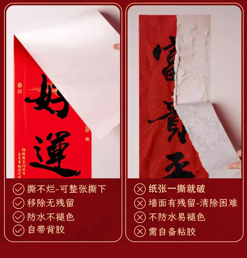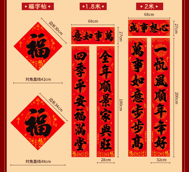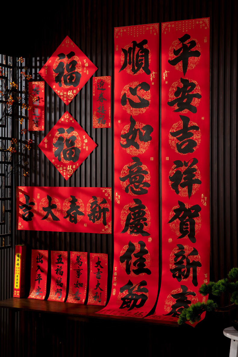 渡鹊桥2026新年对联过年大门口新款马年福字贴春联自带背胶春节门贴装饰 1.5米-心想事成-一帆+万事 5303-百福系列