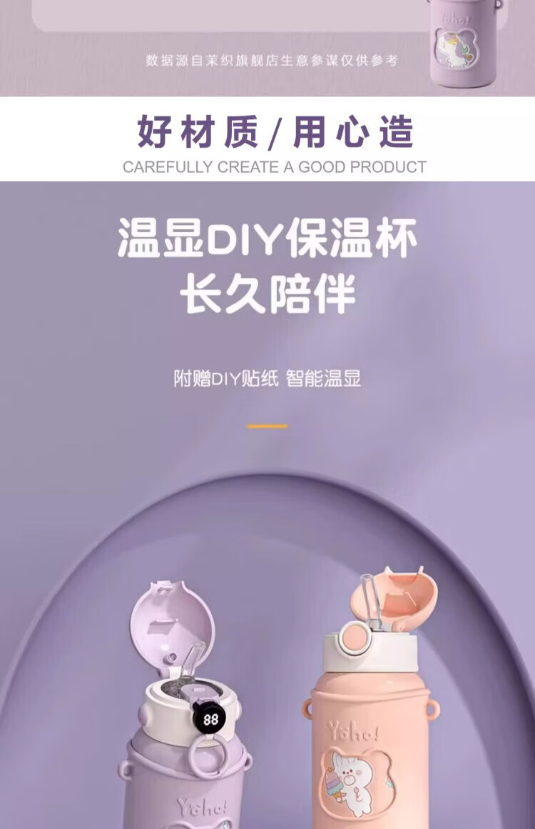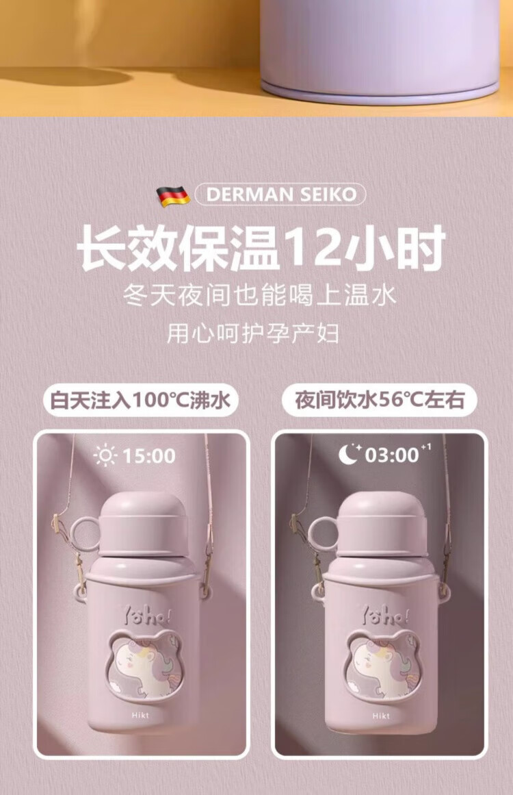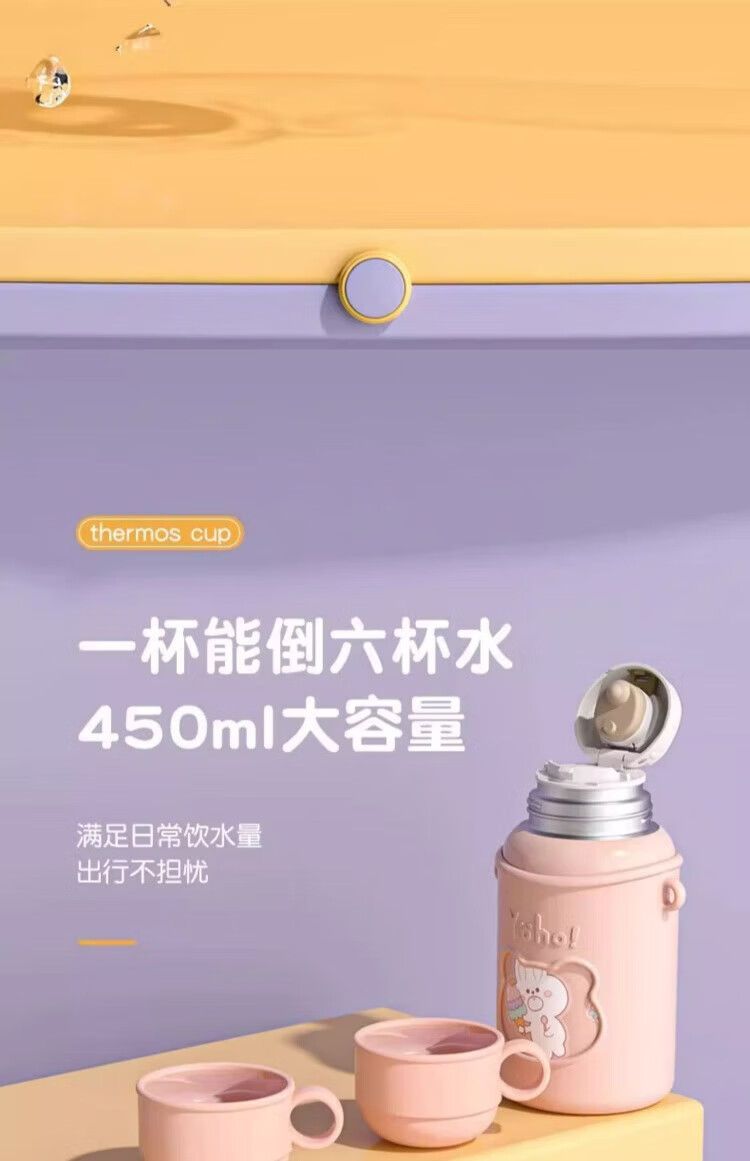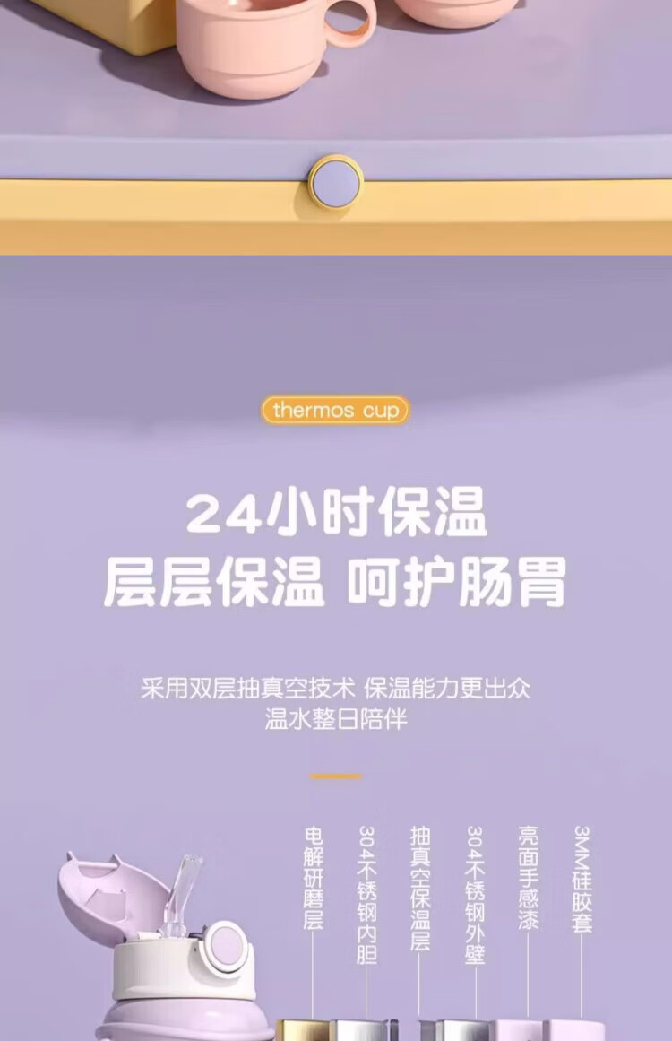 DEATKN德国儿童保温杯幼儿园女孩上学专用316不锈钢小学生可放书包侧兜 花雾粉【单吸管盖】长效锁温不漏水 450ml