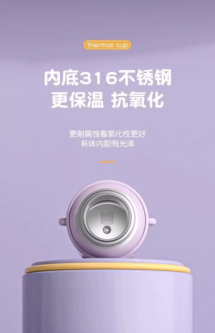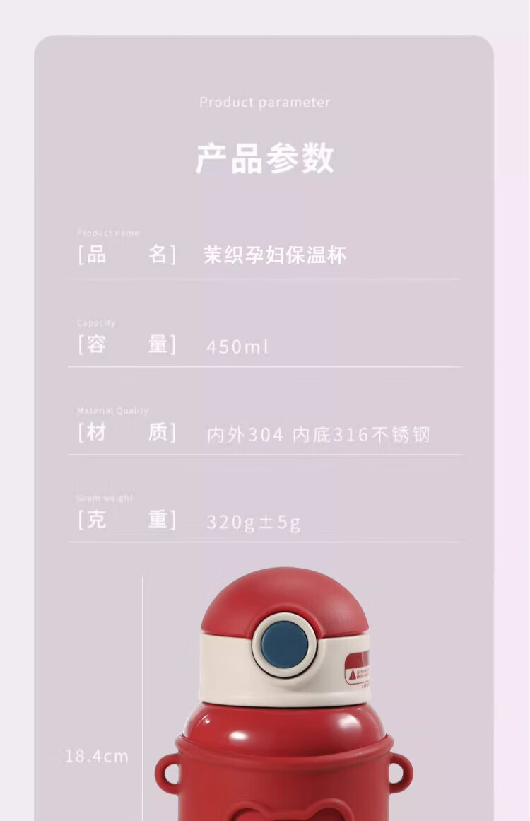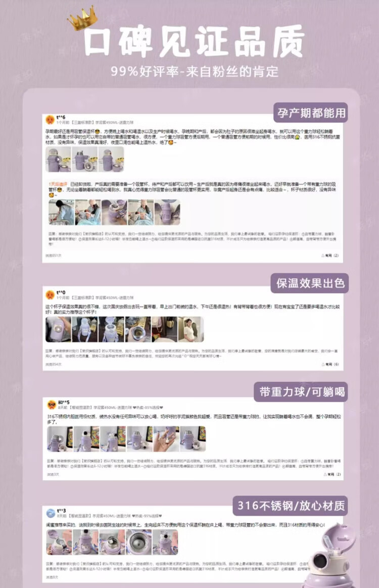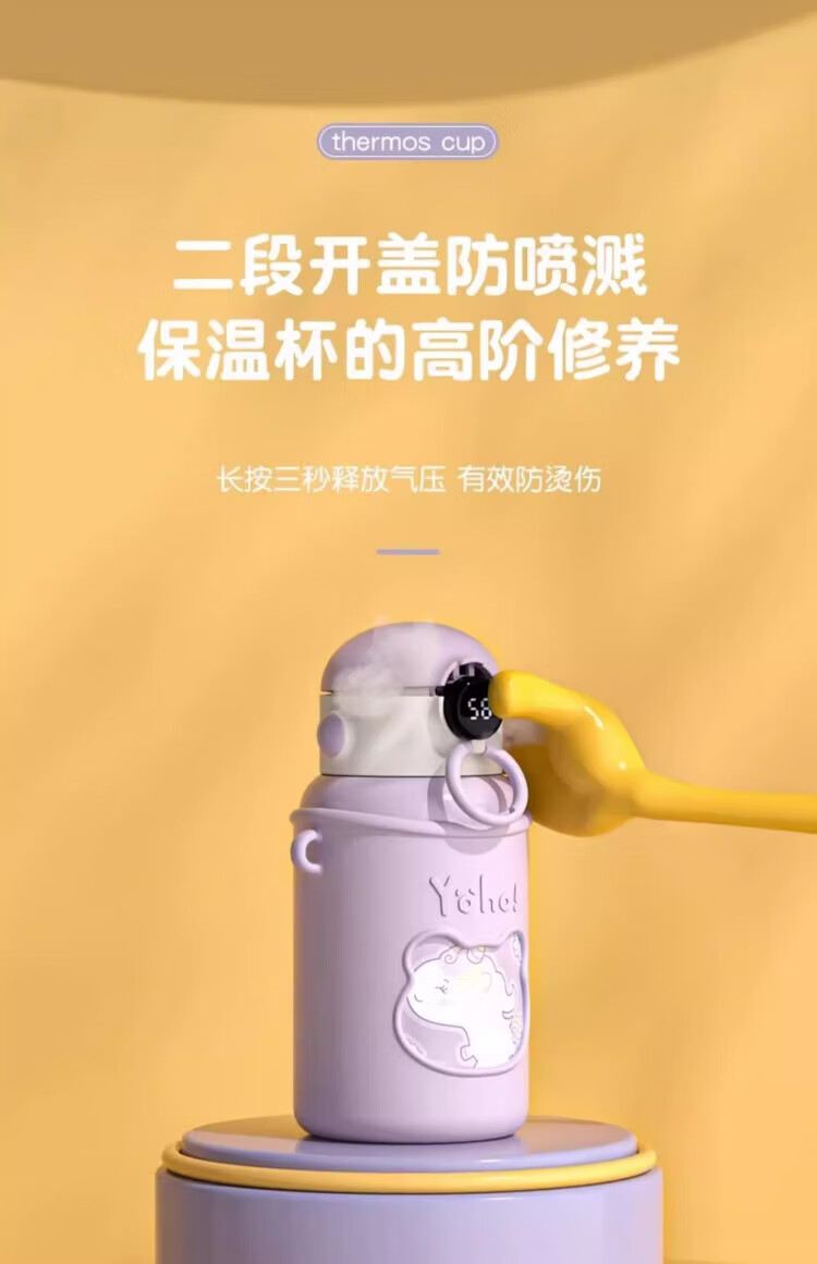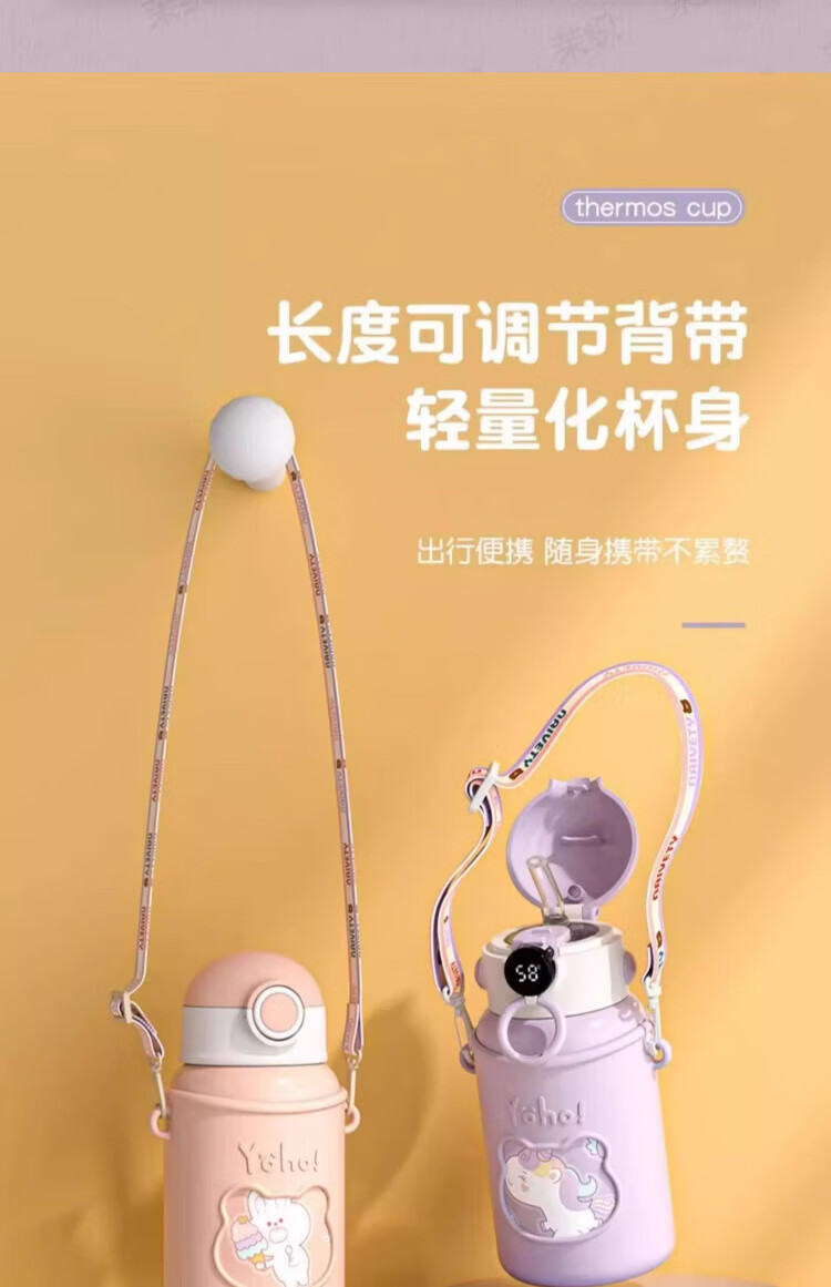 DEATKN德国儿童保温杯幼儿园女孩上学专用316不锈钢小学生可放书包侧兜 花雾粉【单吸管盖】长效锁温不漏水 450ml