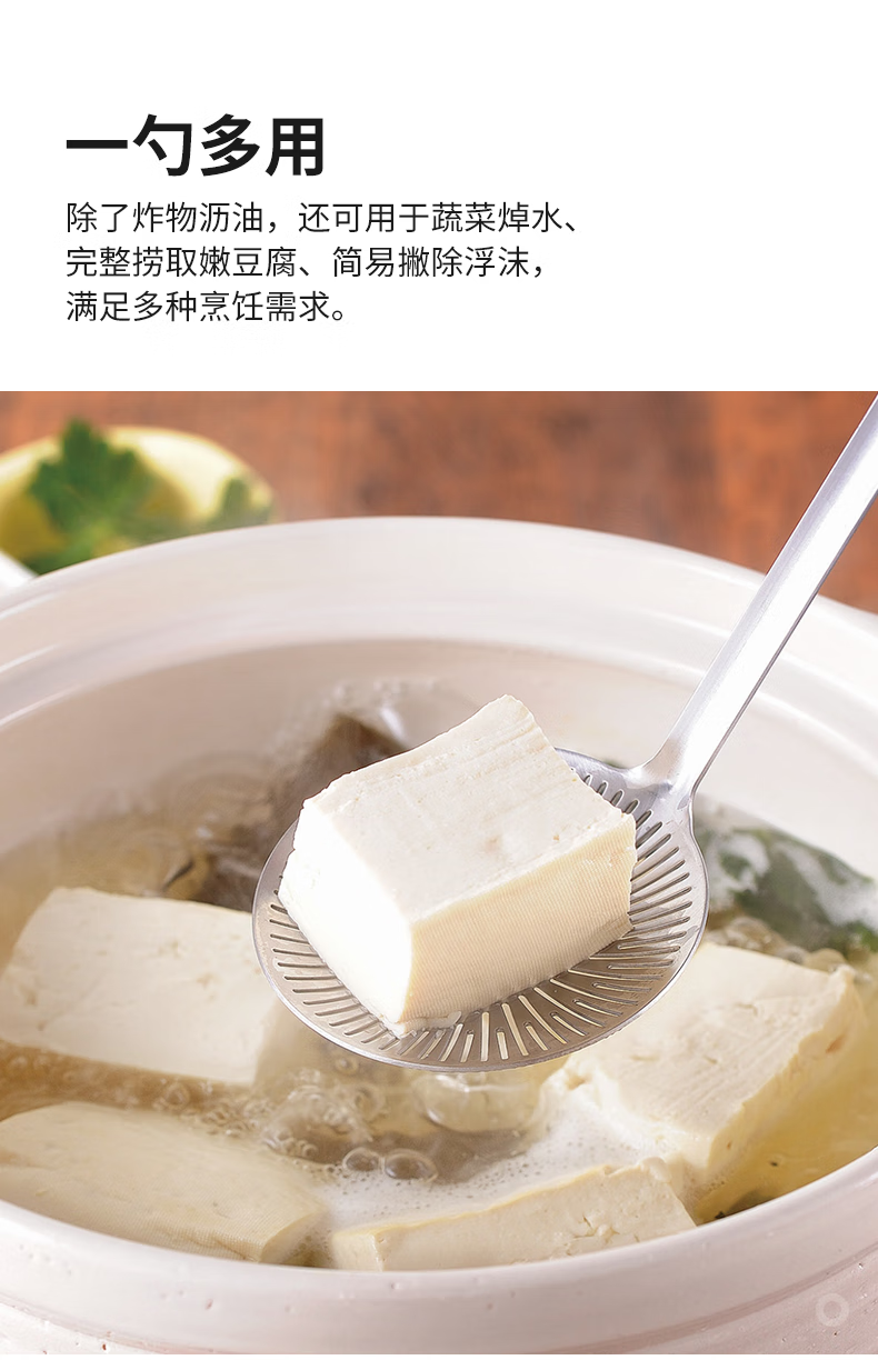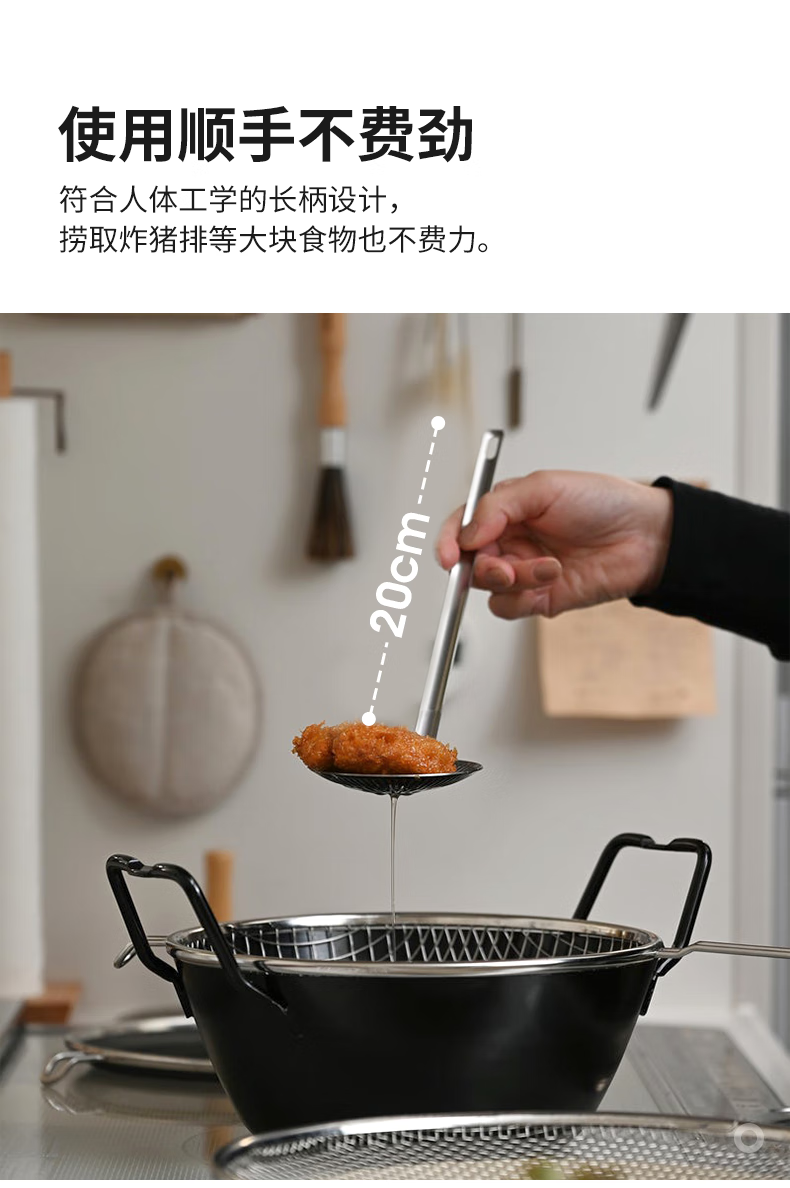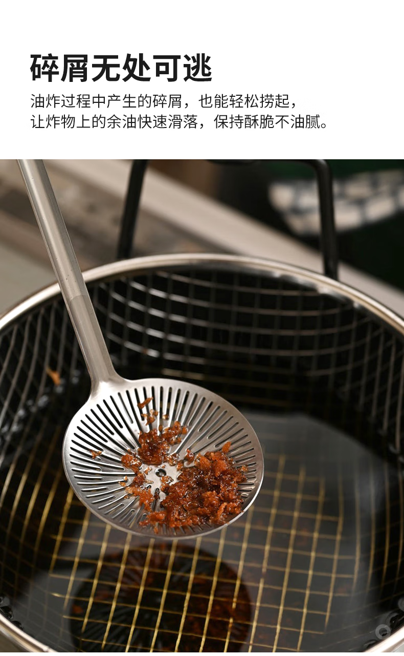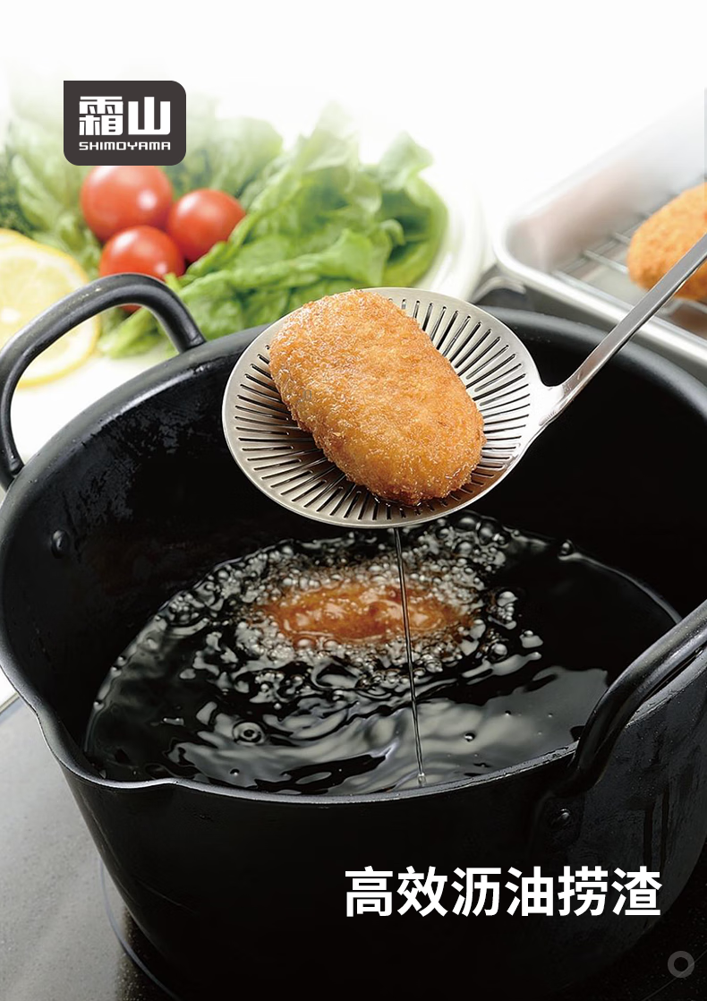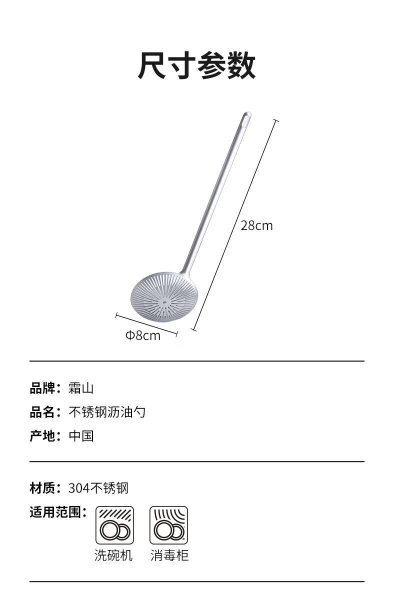 霜山304不锈钢沥油勺家用焯水笊篱过滤网厨房油炸滤油勺火锅捞勺 【洗碗机可用】长28cm