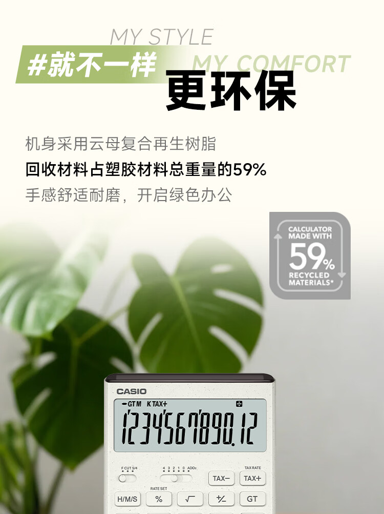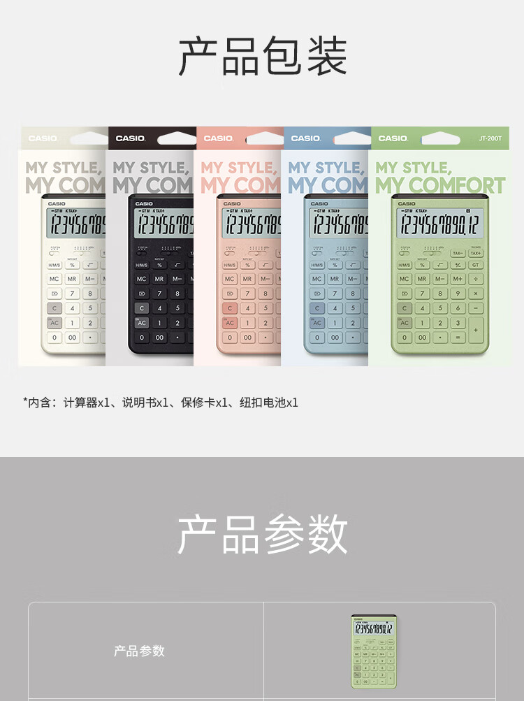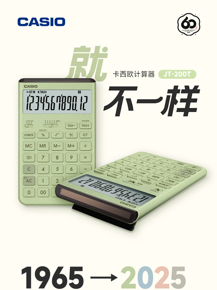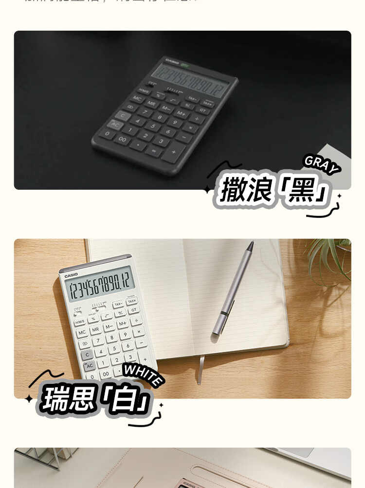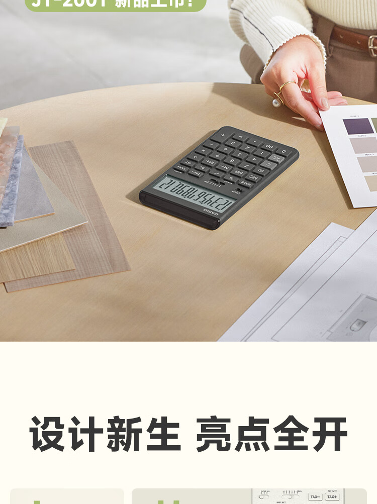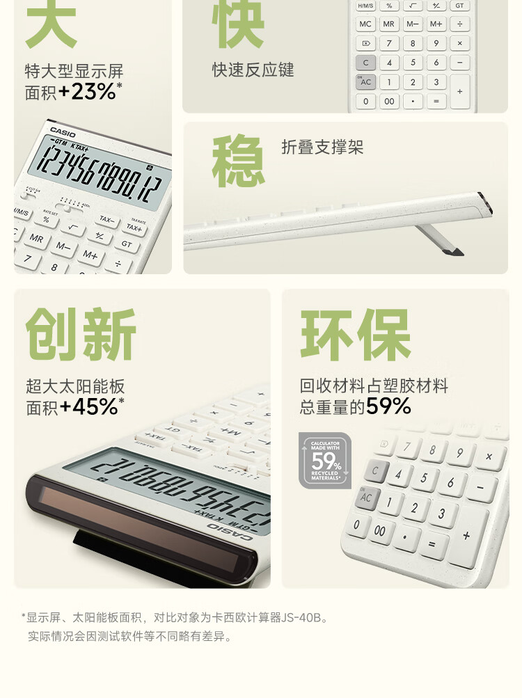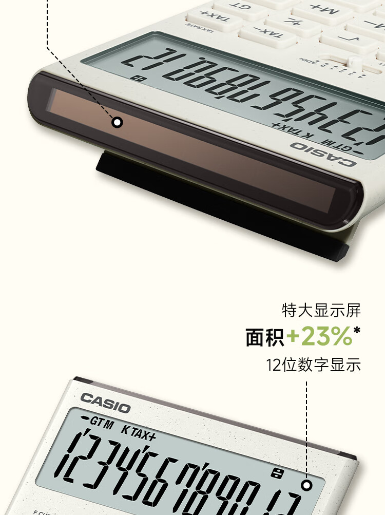 卡西欧(CASIO)就不一样计算器JT-200T创新超大显示屏太阳能面板环保材质桌面办公 瑞思白白色