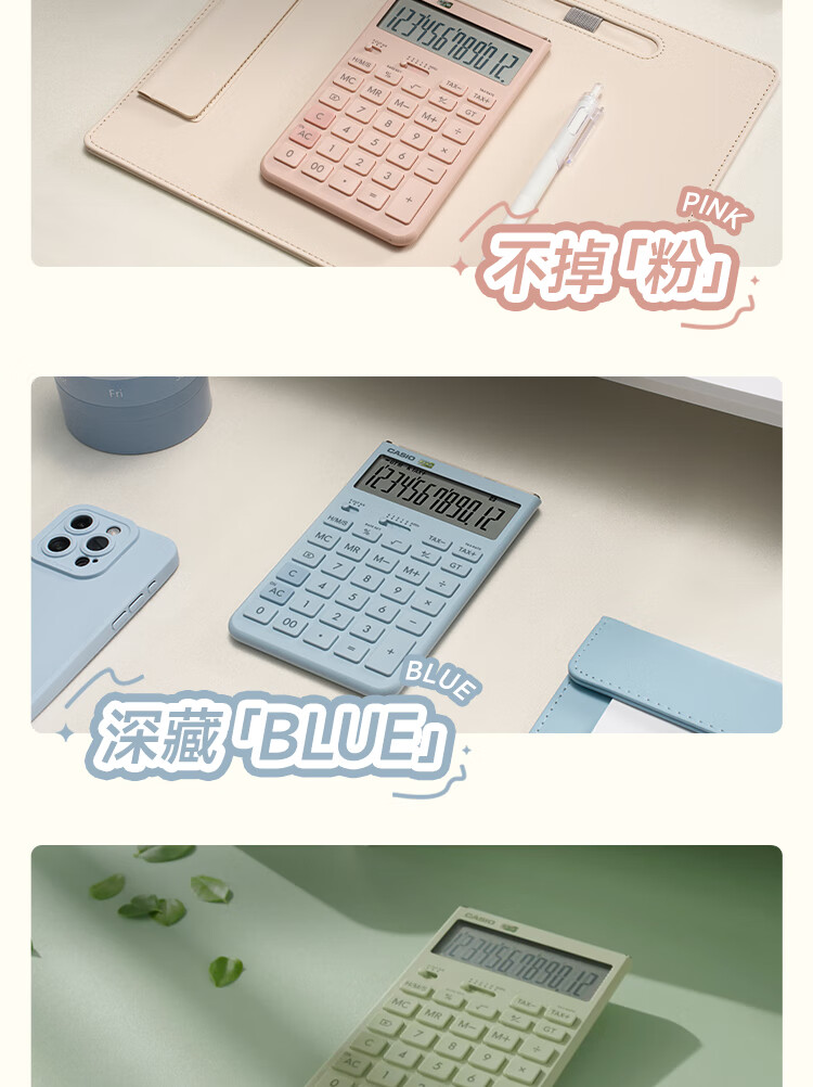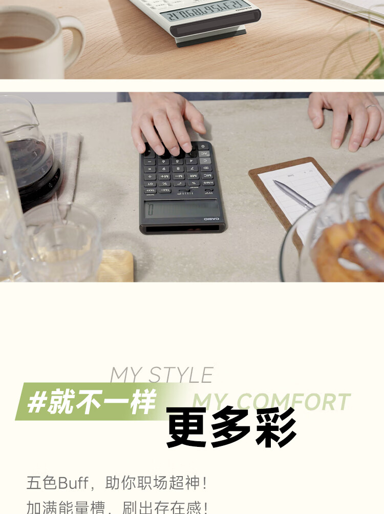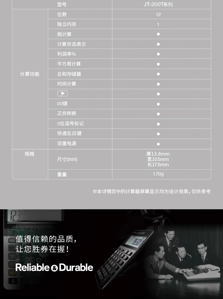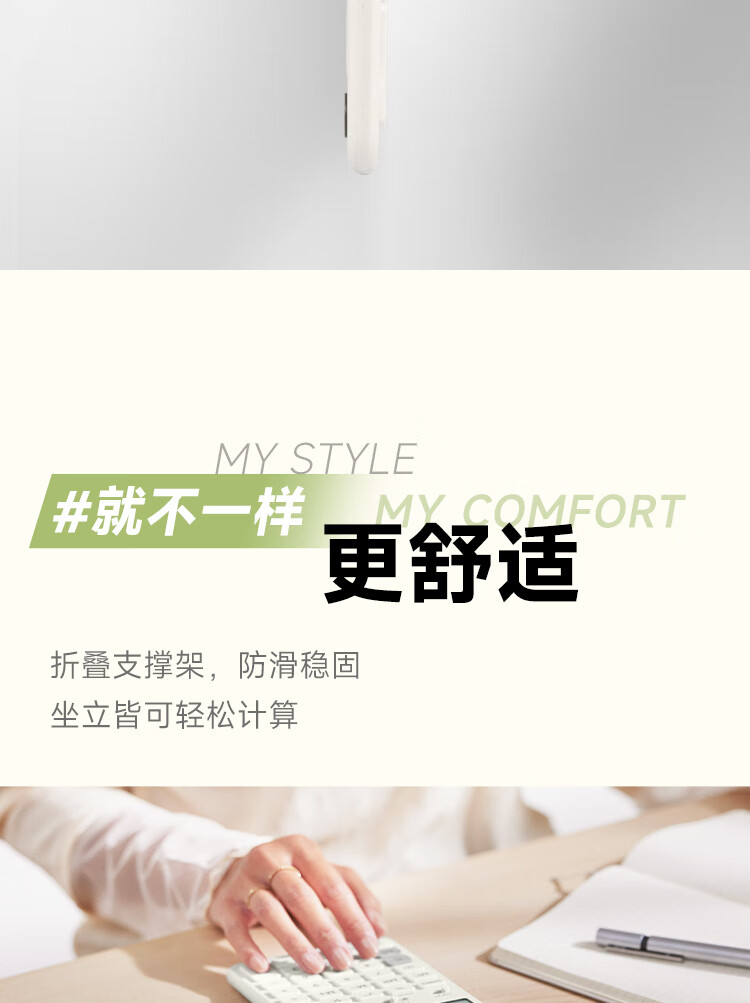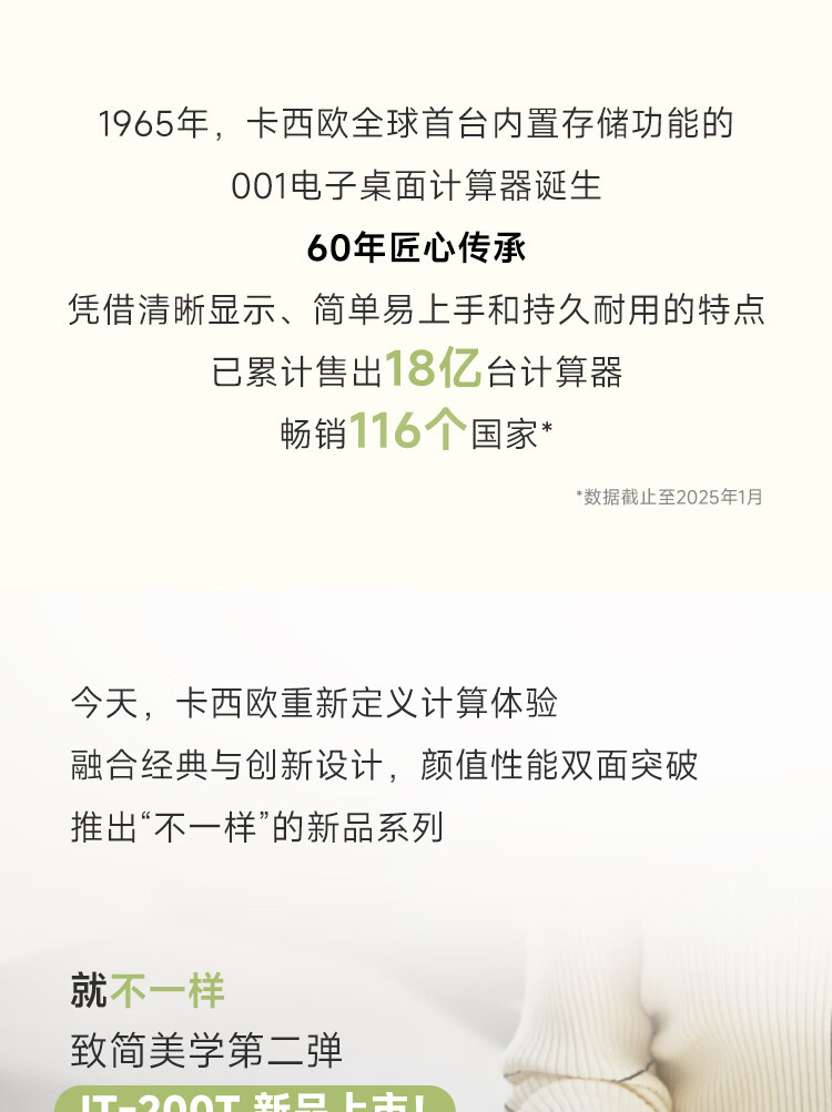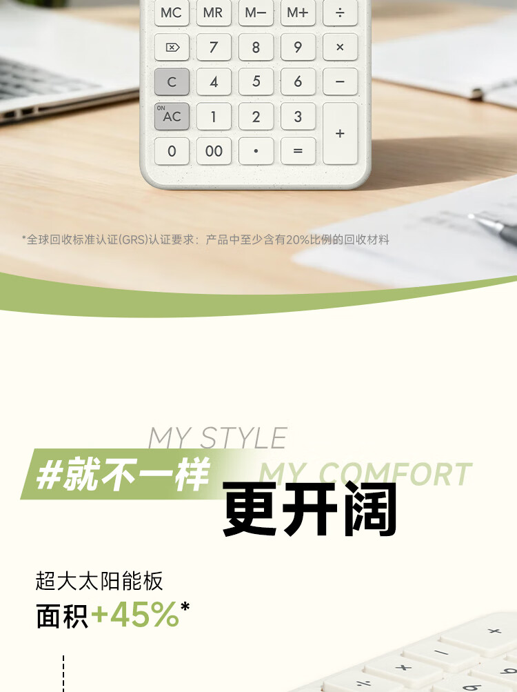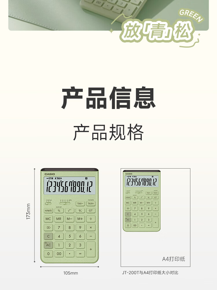 卡西欧(CASIO)就不一样计算器JT-200T创新超大显示屏太阳能面板环保材质桌面办公 瑞思白白色