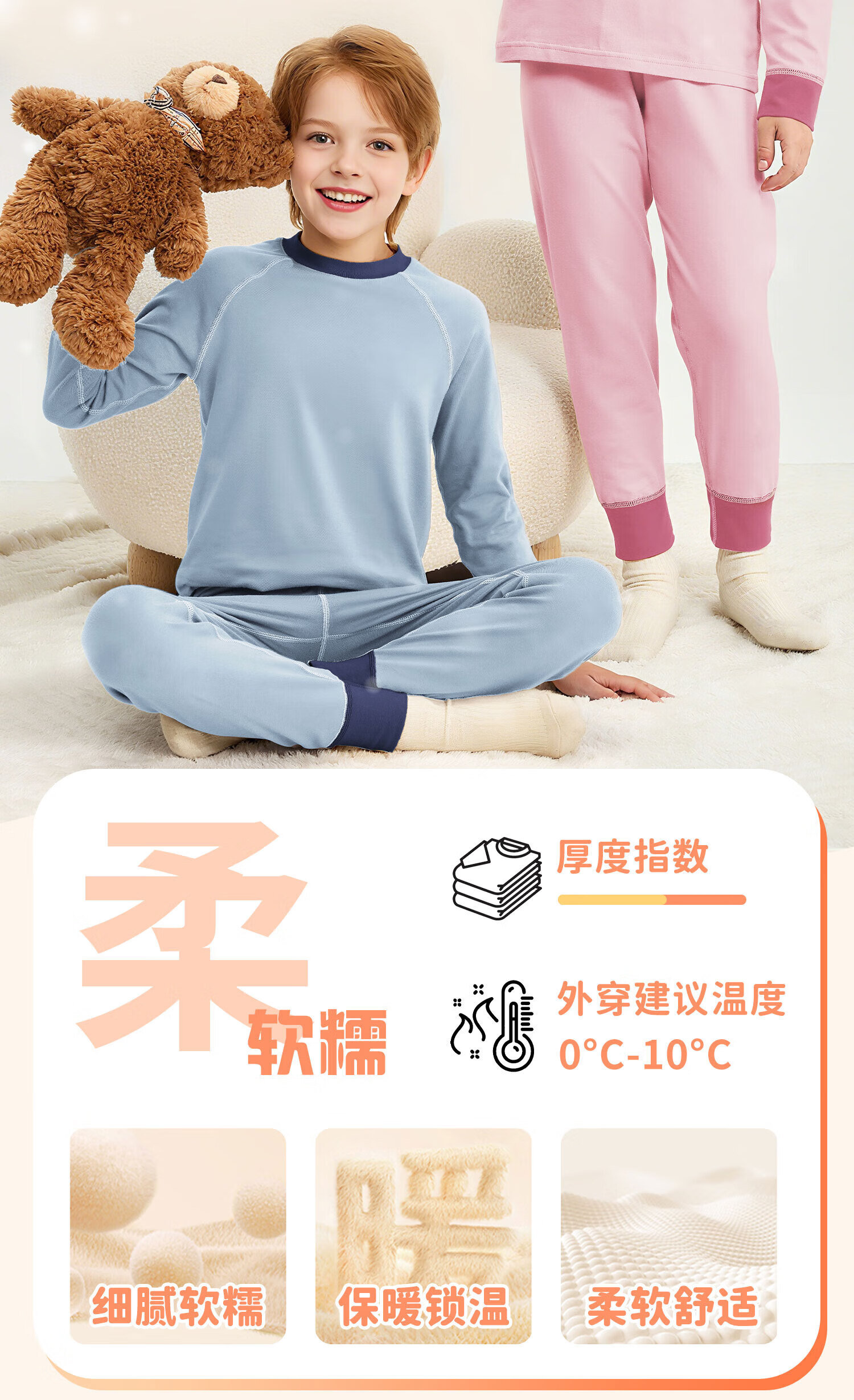 班纳班纳儿童德绒保暖睡衣2025新款男童秋衣秋裤套装冬季打底睡衣家居服 GT滑板中国K雾水蓝 160