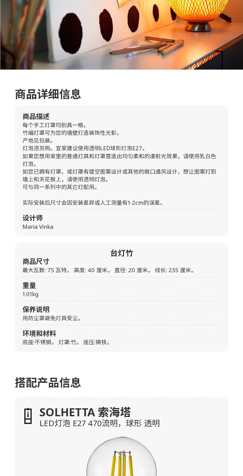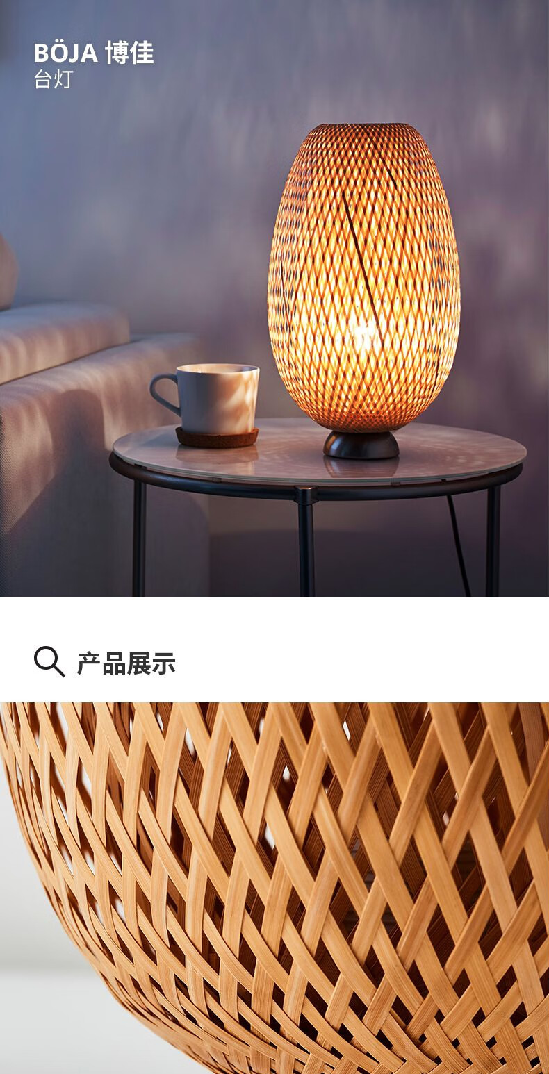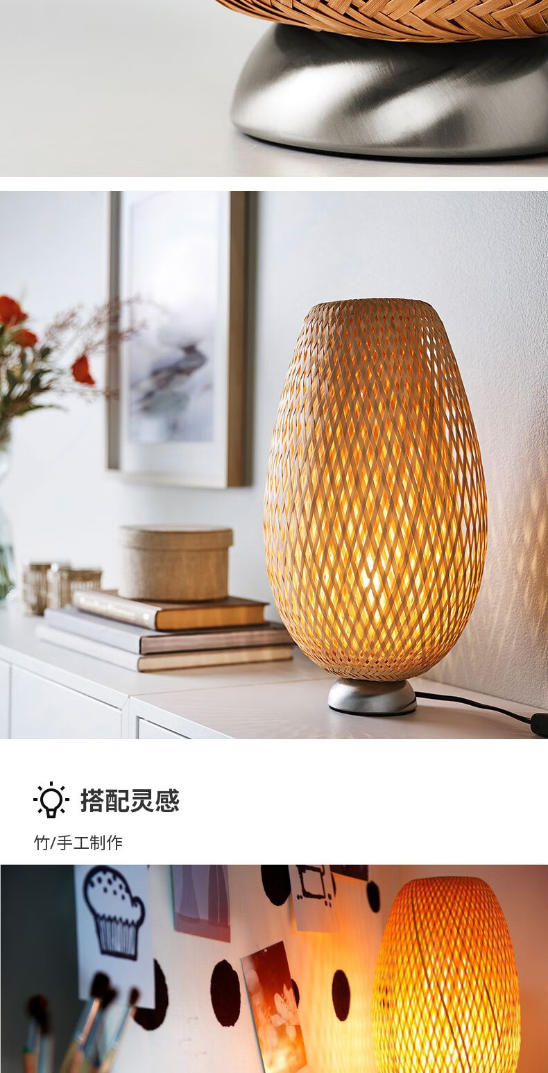 宜家(IKEA)BOJA博佳台灯镀镍藤条北欧风装饰光影手工制作现代简约 台灯竹+E27灯泡470流明