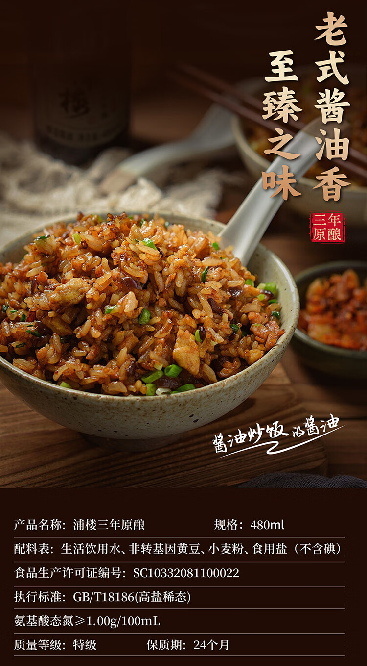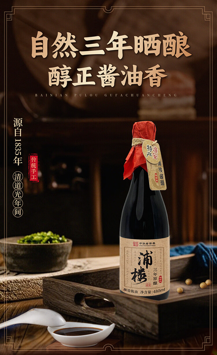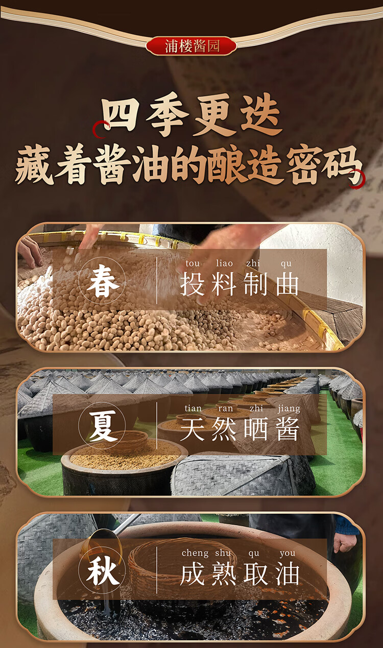 浦楼高端古法酱油冰油手工传统酿造0添加头道特级黄豆红烧母子式老抽