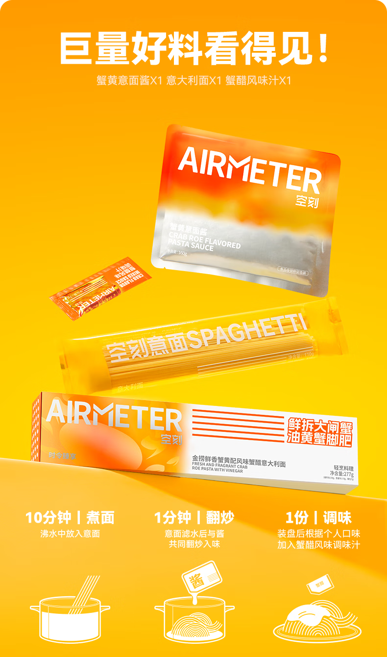 空刻意面金捞鲜香蟹黄意大利面277g*6盒装