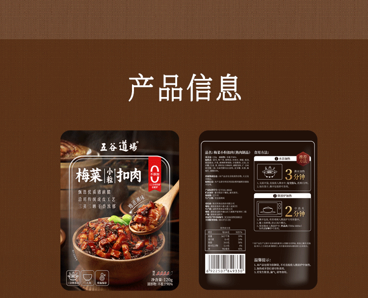 五谷道場梅菜小粒扣肉120g 下饭浇头即食 熟制拌饭浇头酱速食