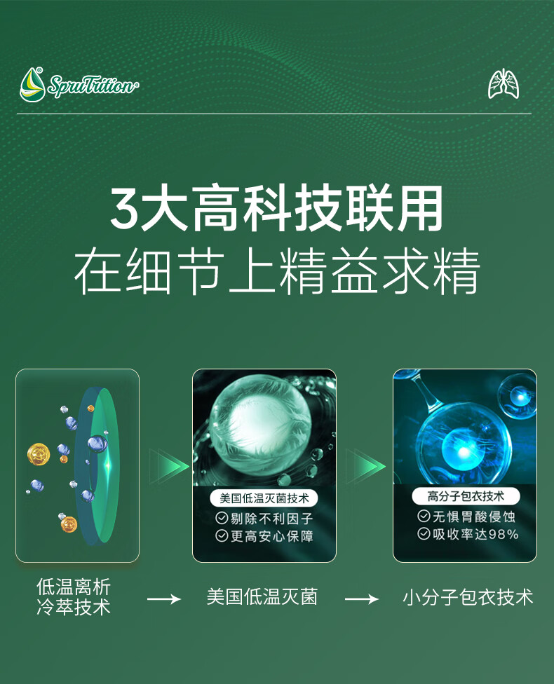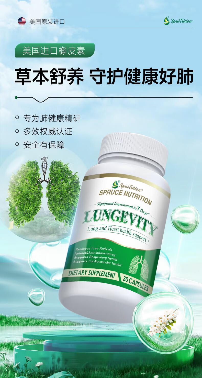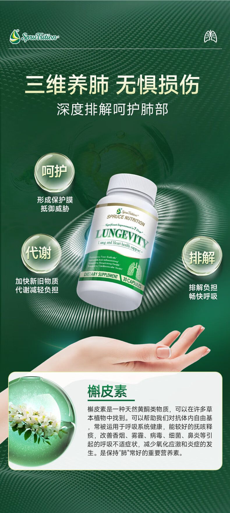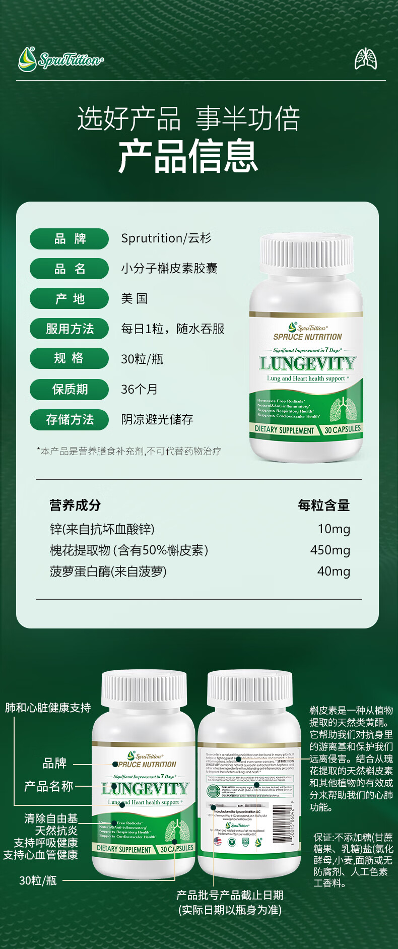 SPRUTRITION云杉天然槲皮素30粒小分子美国进口清肺润肺护肺养肺肺气虚肺不足