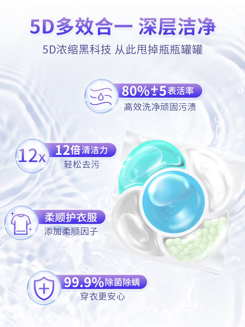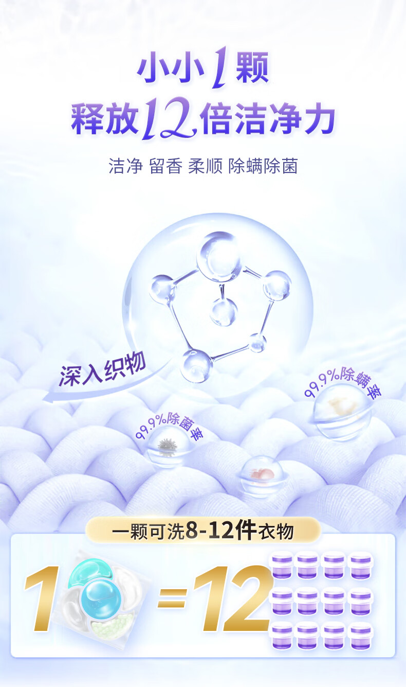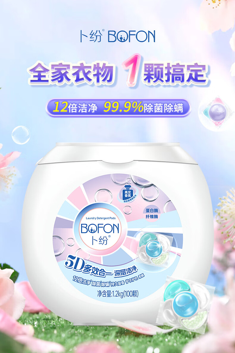 卜纷真五腔搞定香氛12倍洁净英国小苍兰12g单颗多件大件洗衣凝珠100颗
