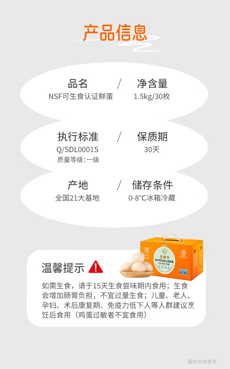 圣迪乐村 可生食鲜鸡蛋30枚L大蛋礼盒装 净重3.6斤 每日鲜蛋源头直发