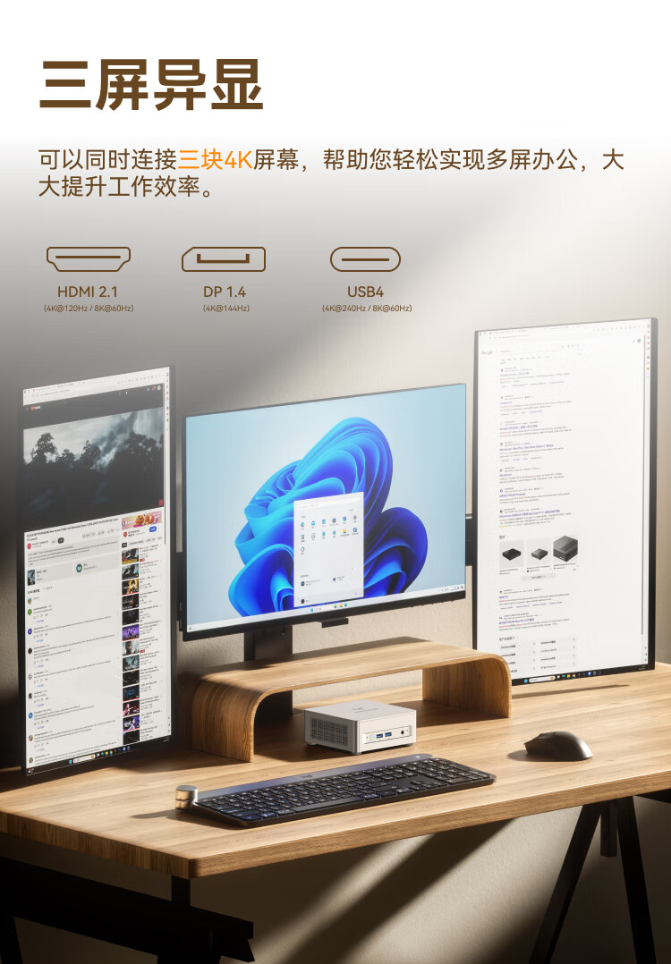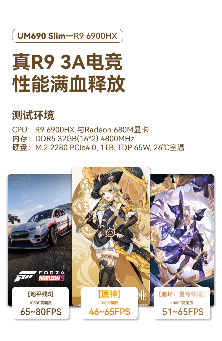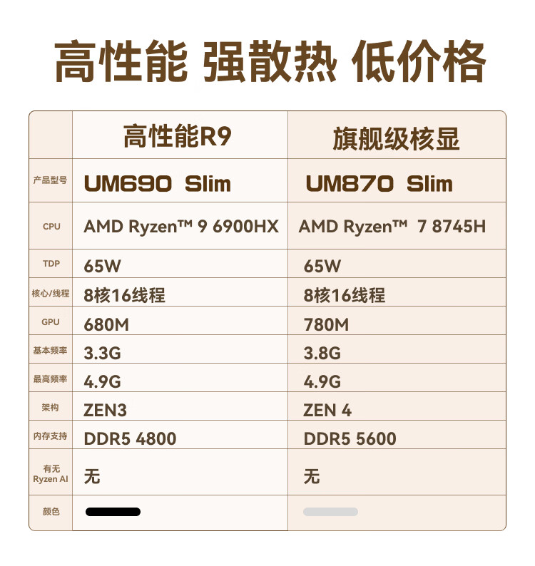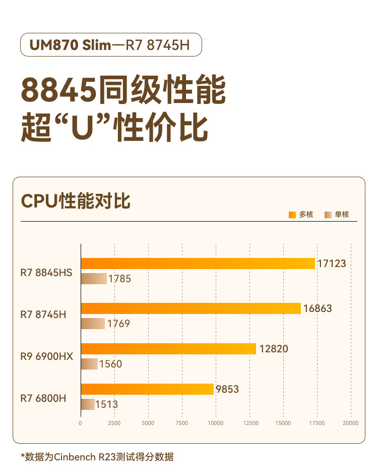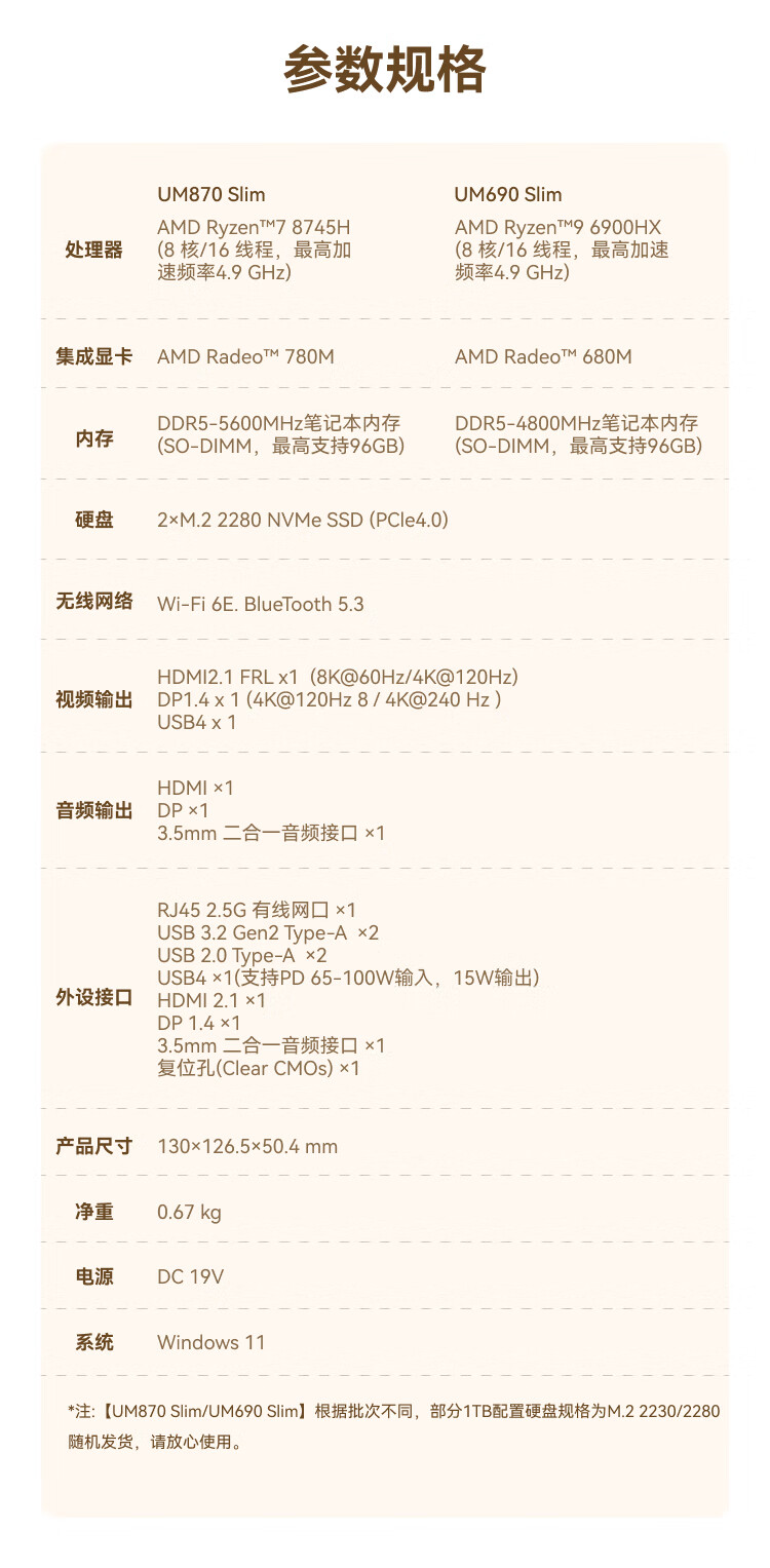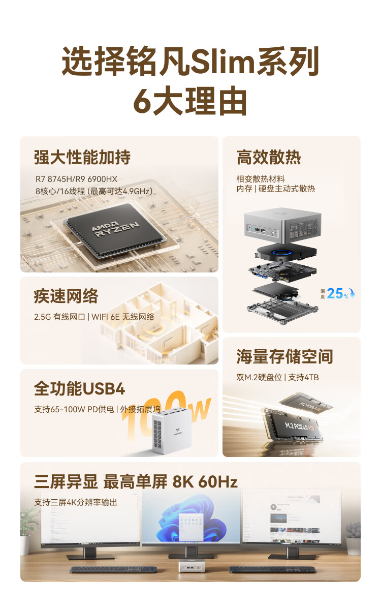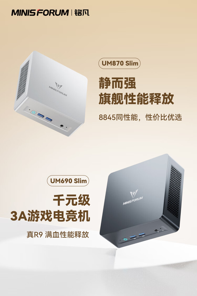 铭凡UM870Slim锐龙R7-8745H迷你主机电脑八核mini主机高性能游戏办公台式小主机 UM870Slim(R7-8745H) 准系统/无内存无硬盘(限时补贴)
