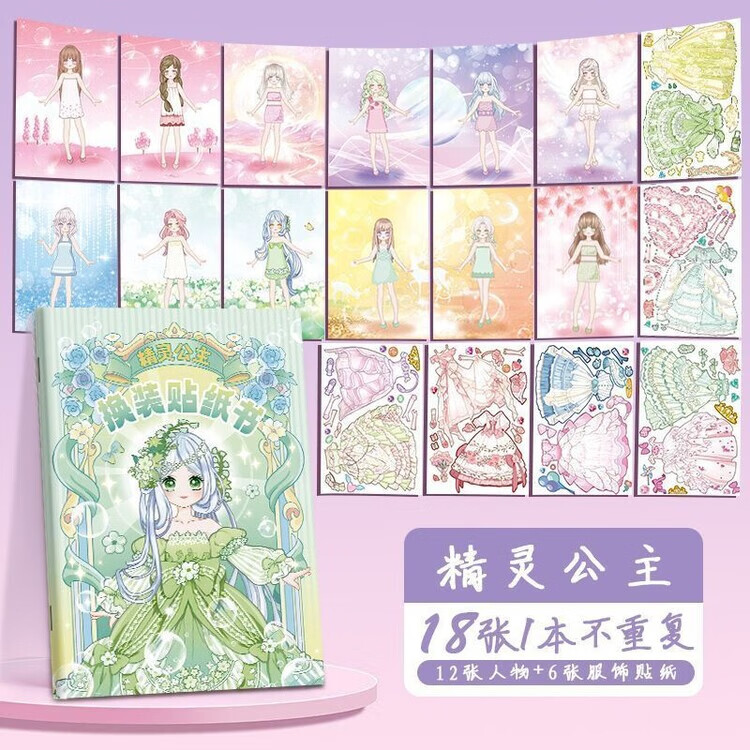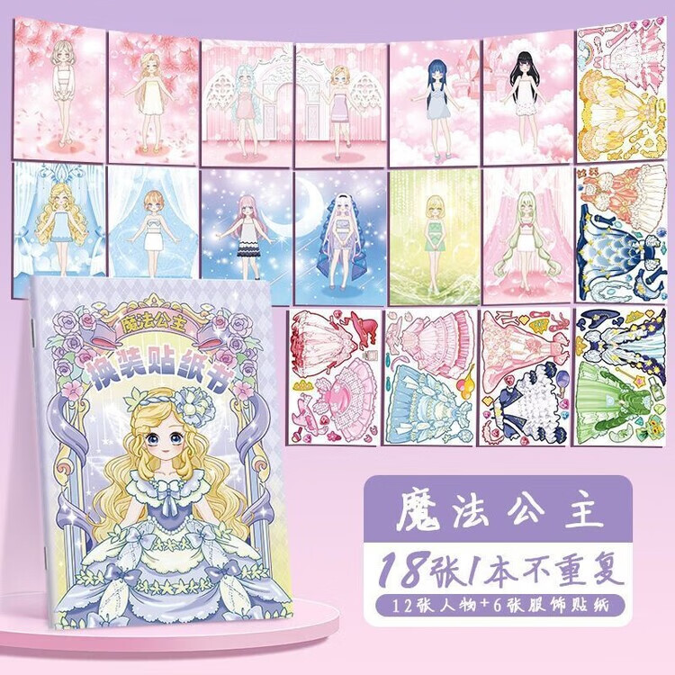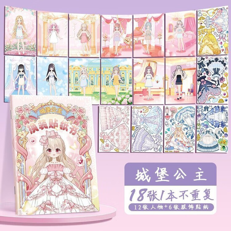 脘铼闪闪换装贴纸女孩手工儿童DIY益智玩具安静公主粘贴化妆贴画超厚 1本【城堡公主】12张人物+6张服饰配件